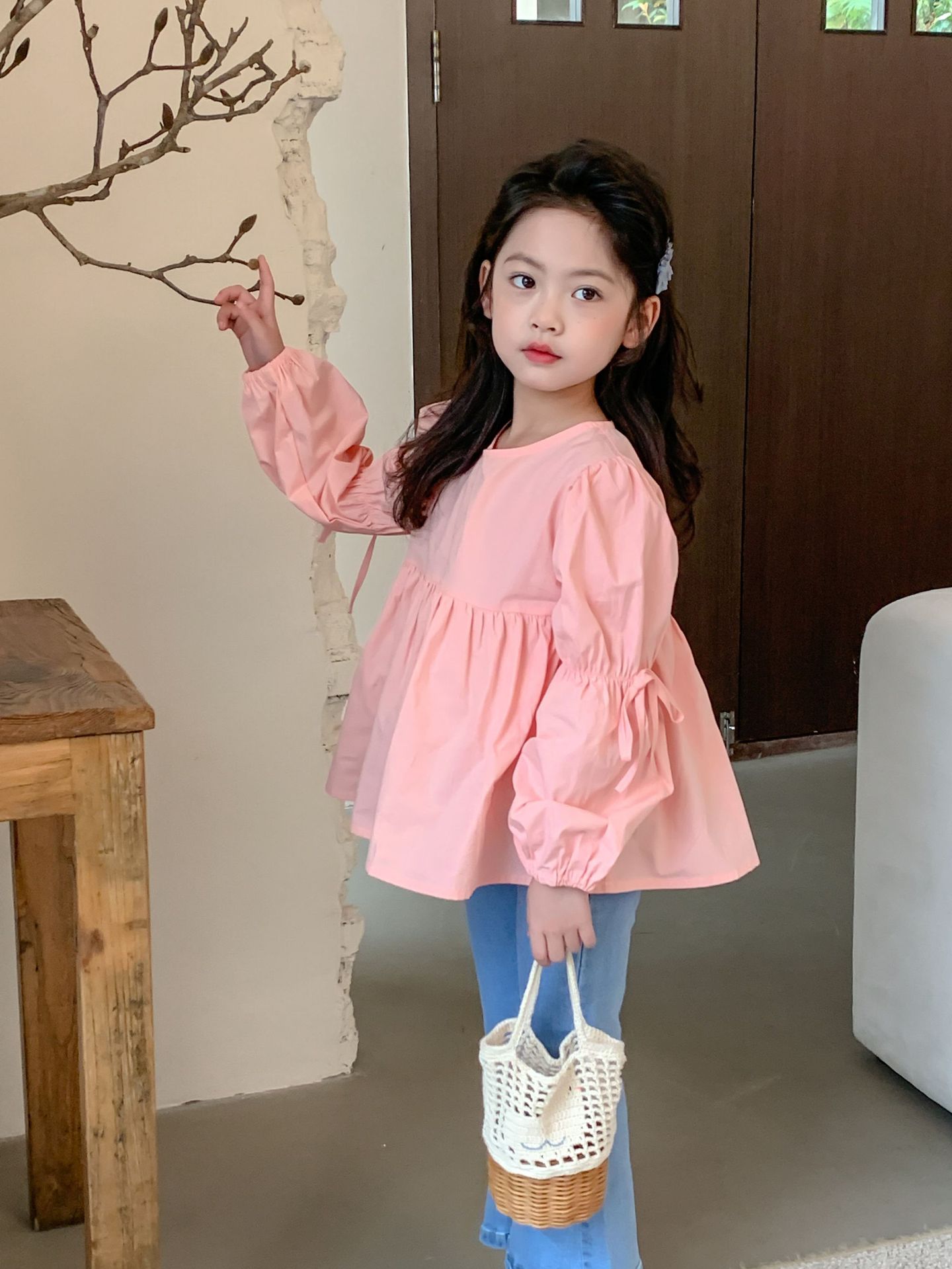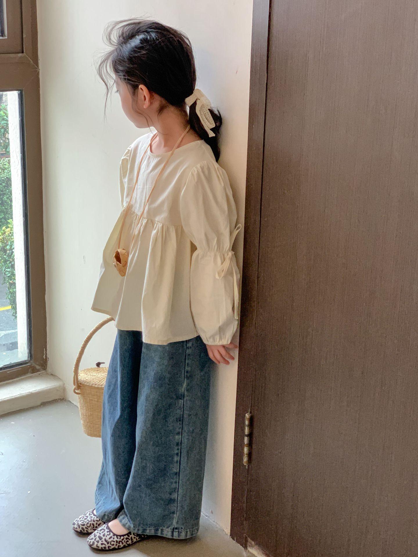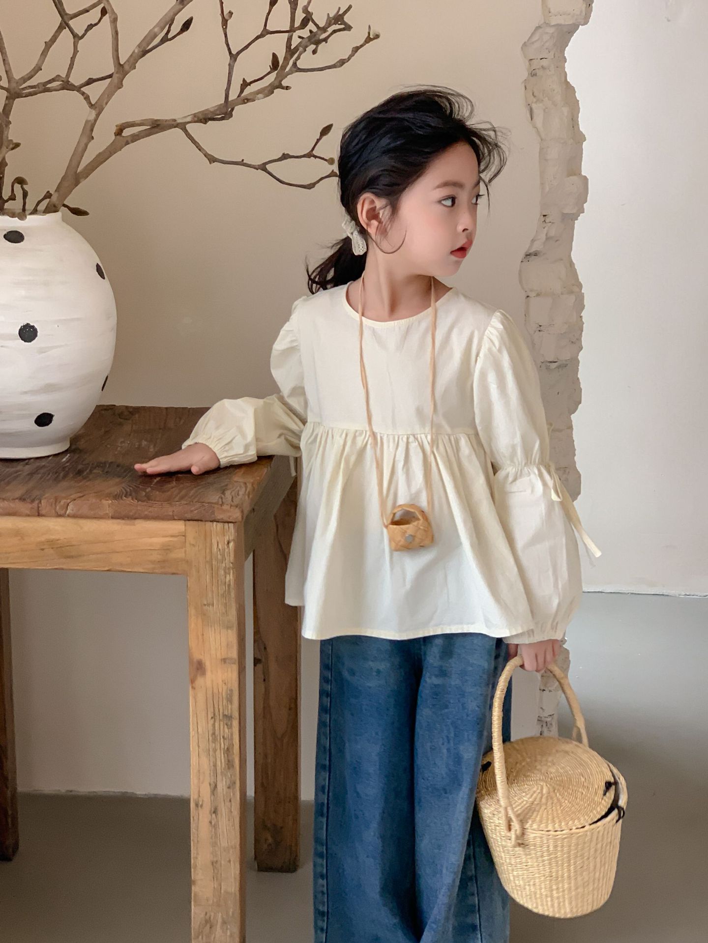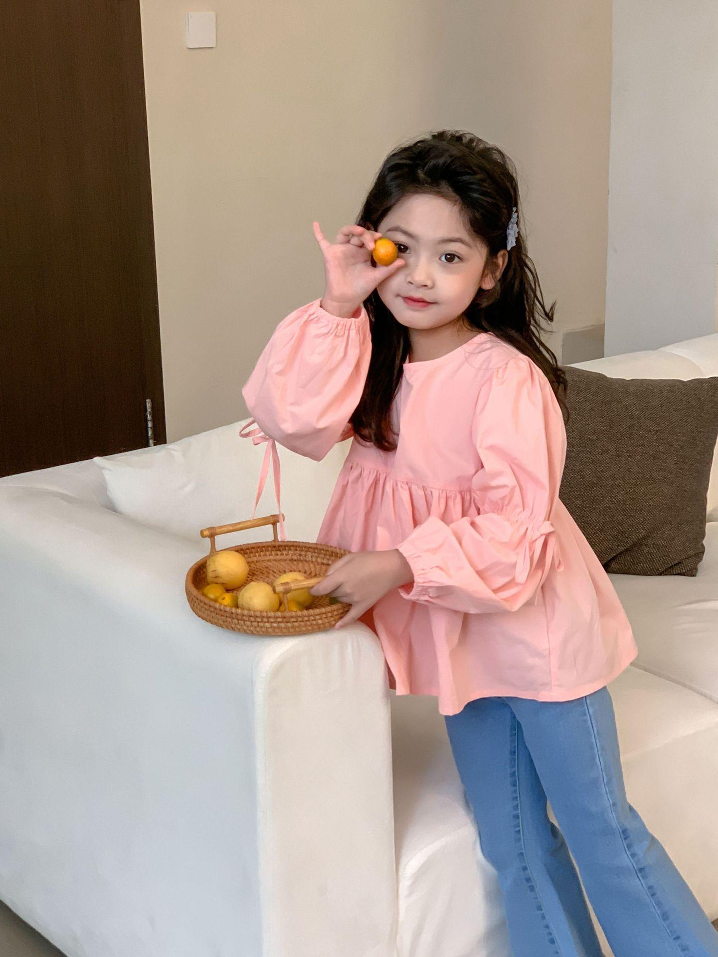Ropa Infantil INS Primavera 2024 Camisa de Muñeca de Manga Larga con Lazo para Niñas Camisa Estilo Coreano Top