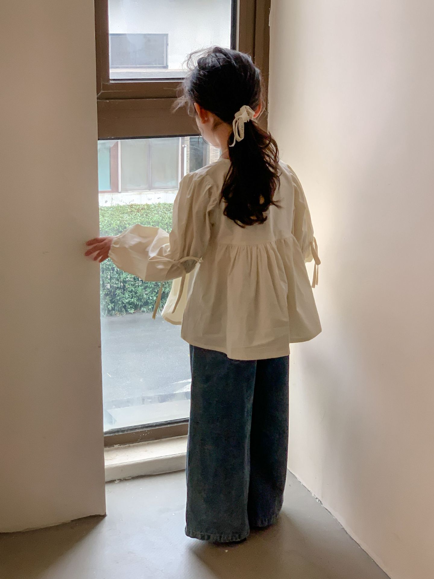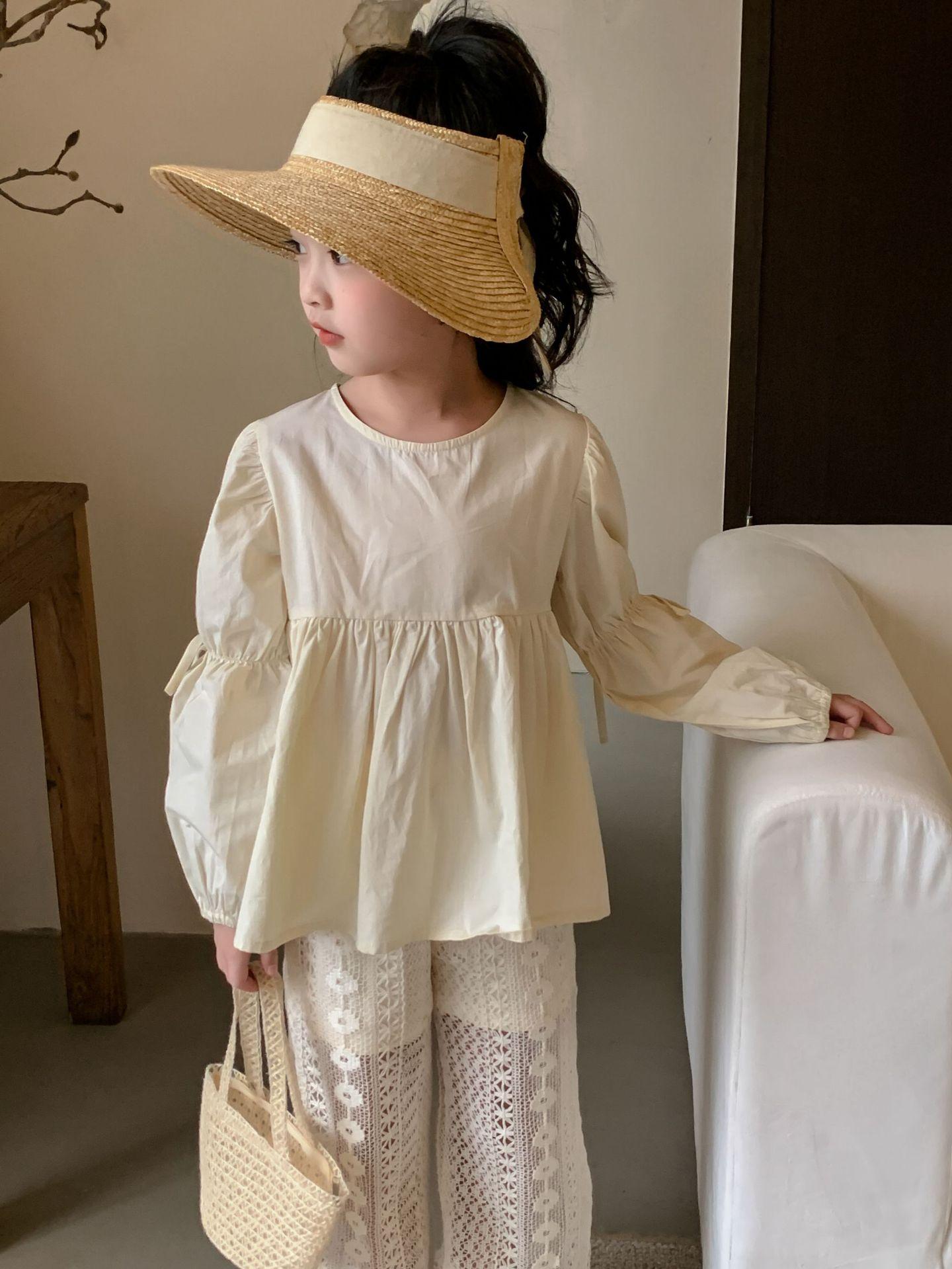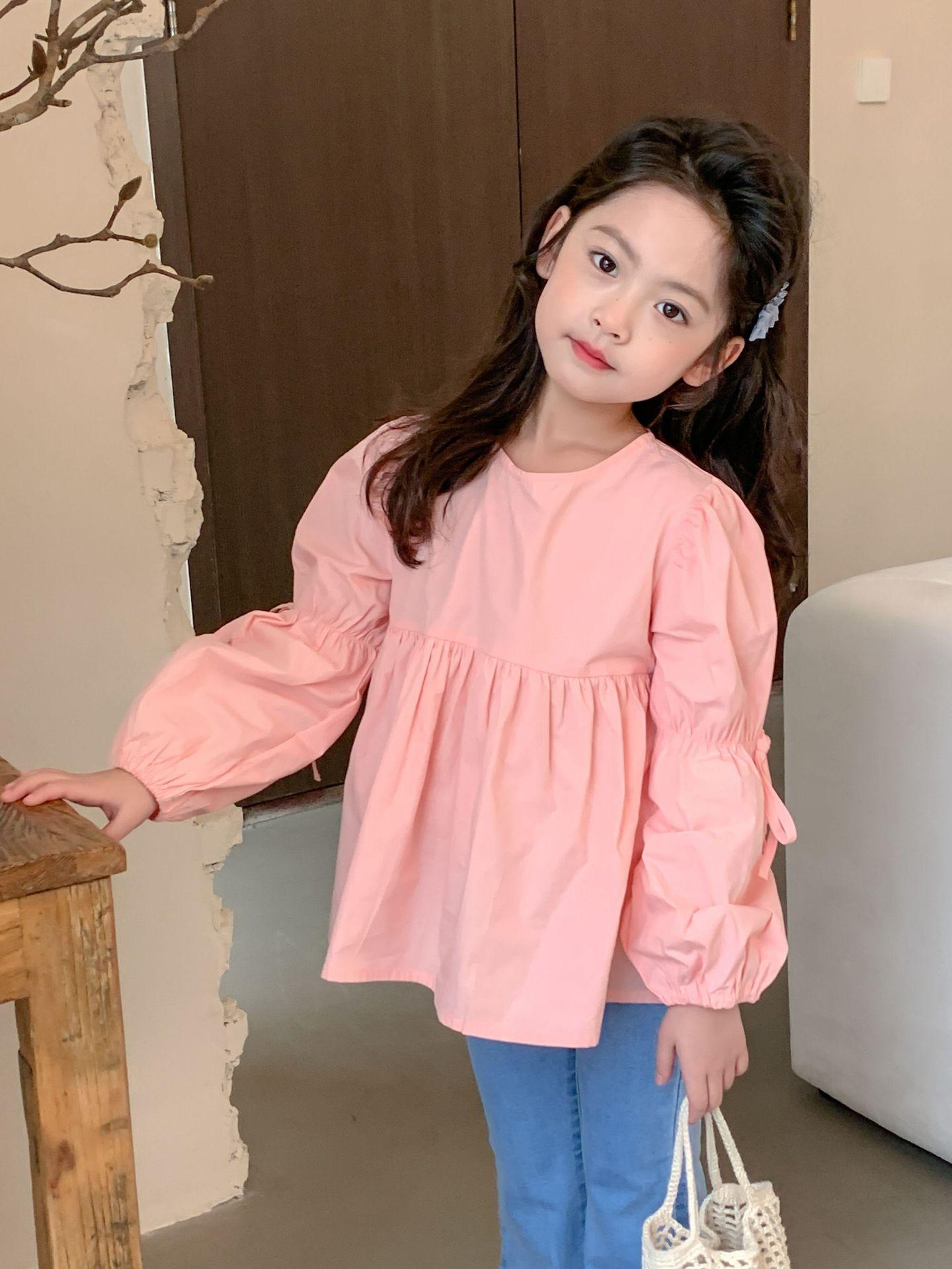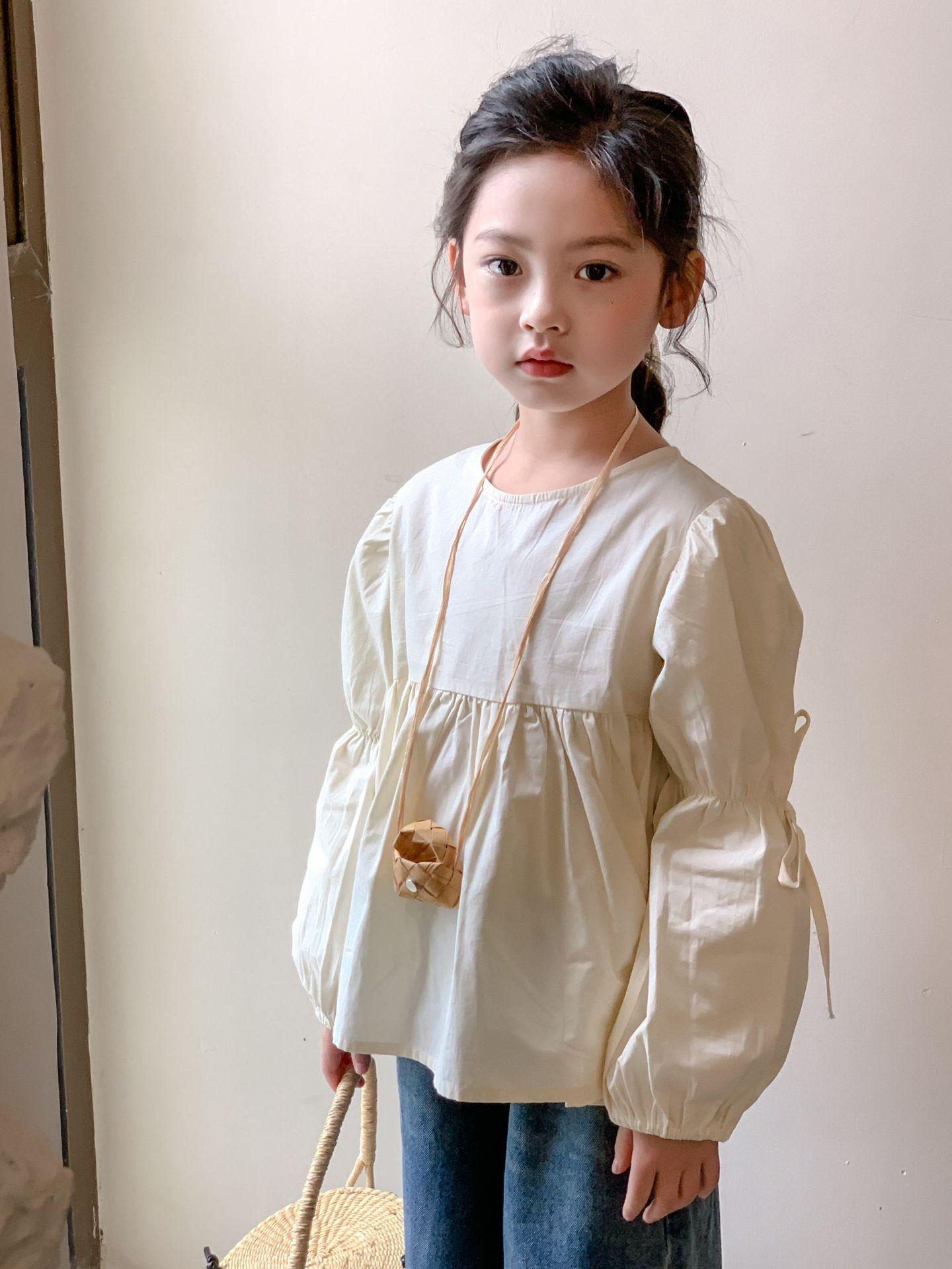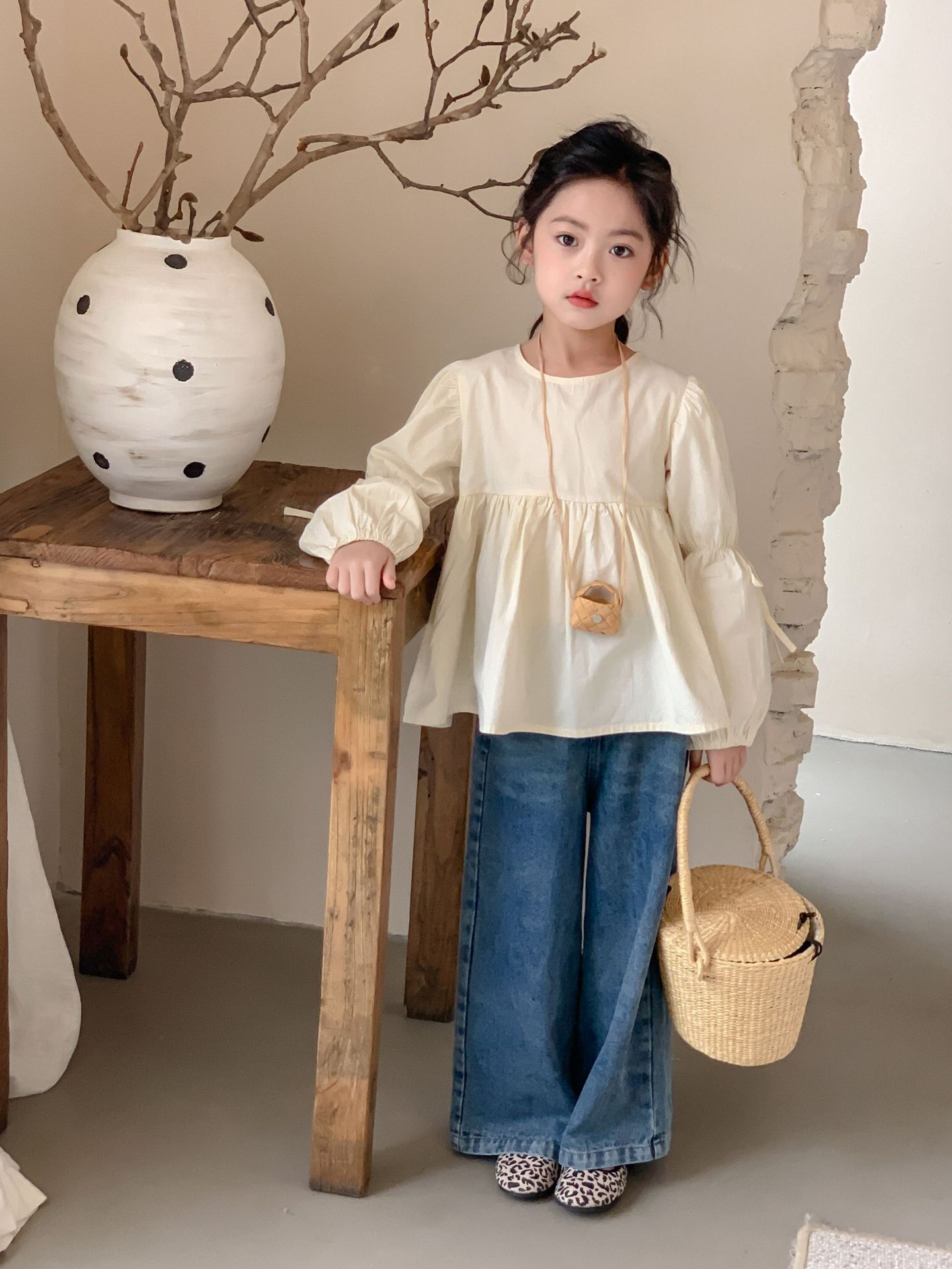 Ropa Infantil INS Primavera 2024 Camisa de Muñeca de Manga Larga con Lazo para Niñas Camisa Estilo Coreano Top