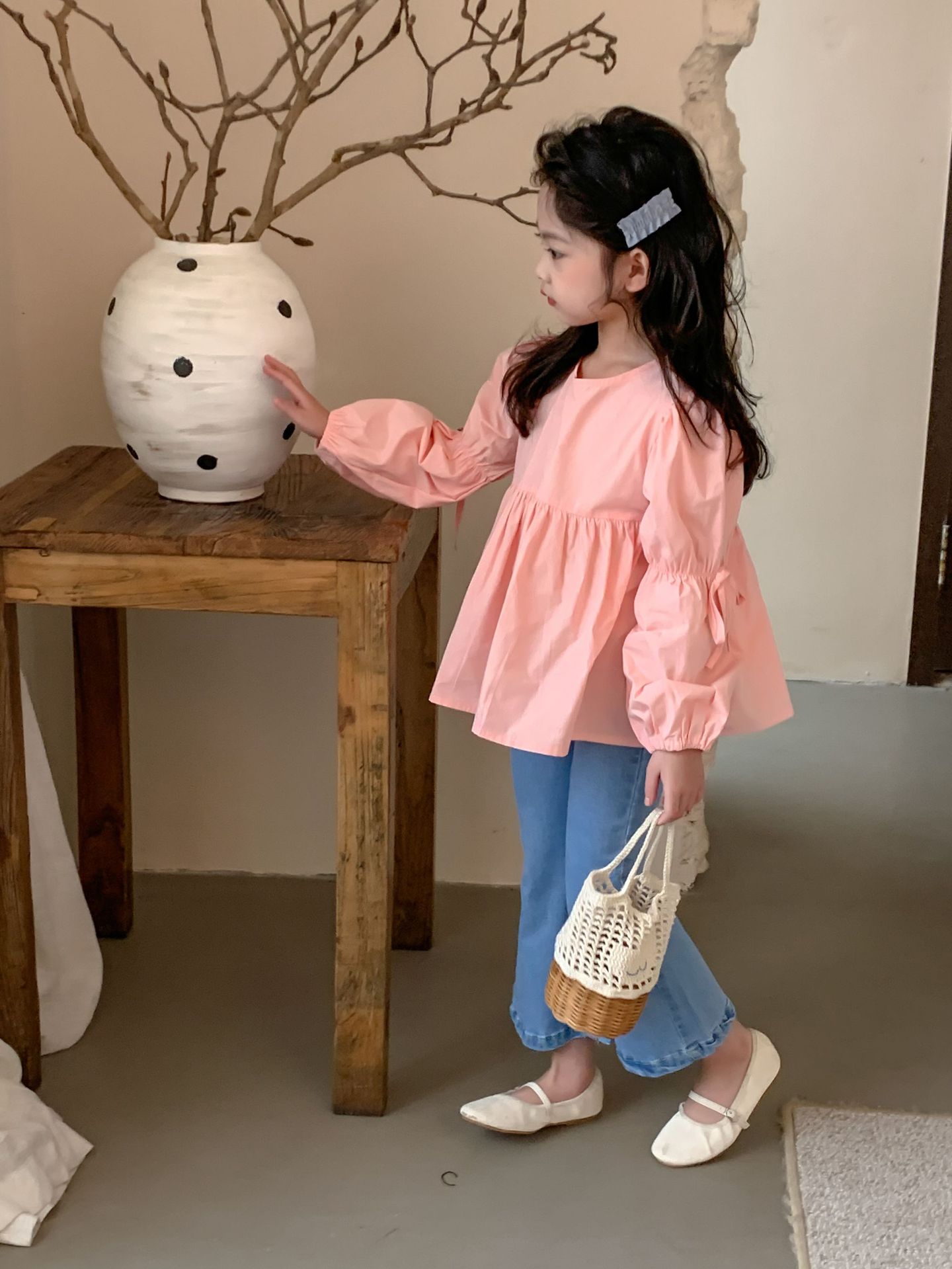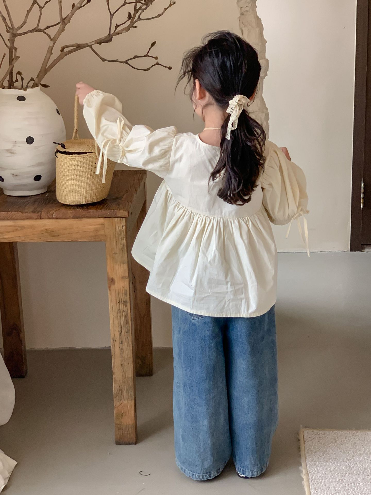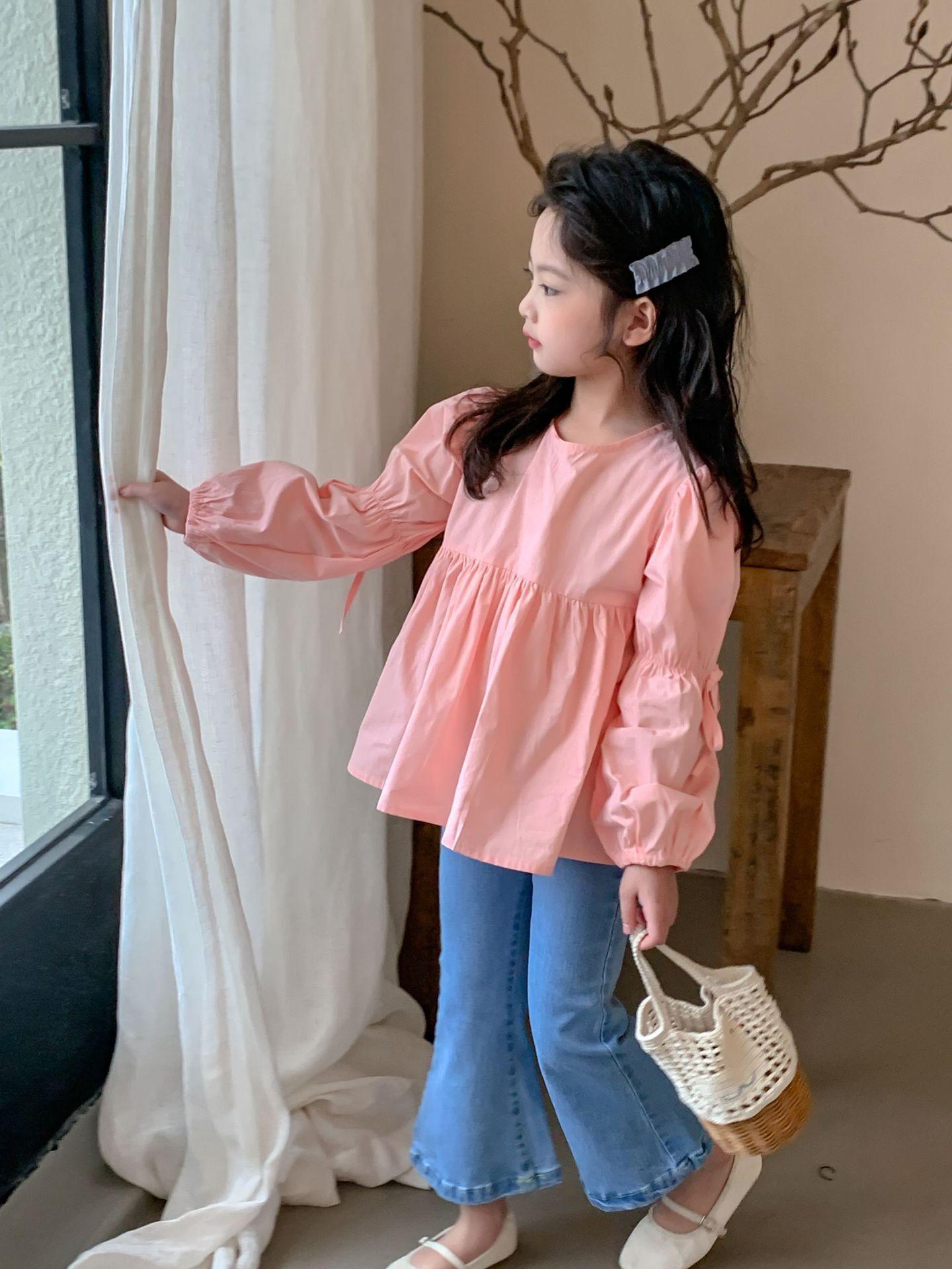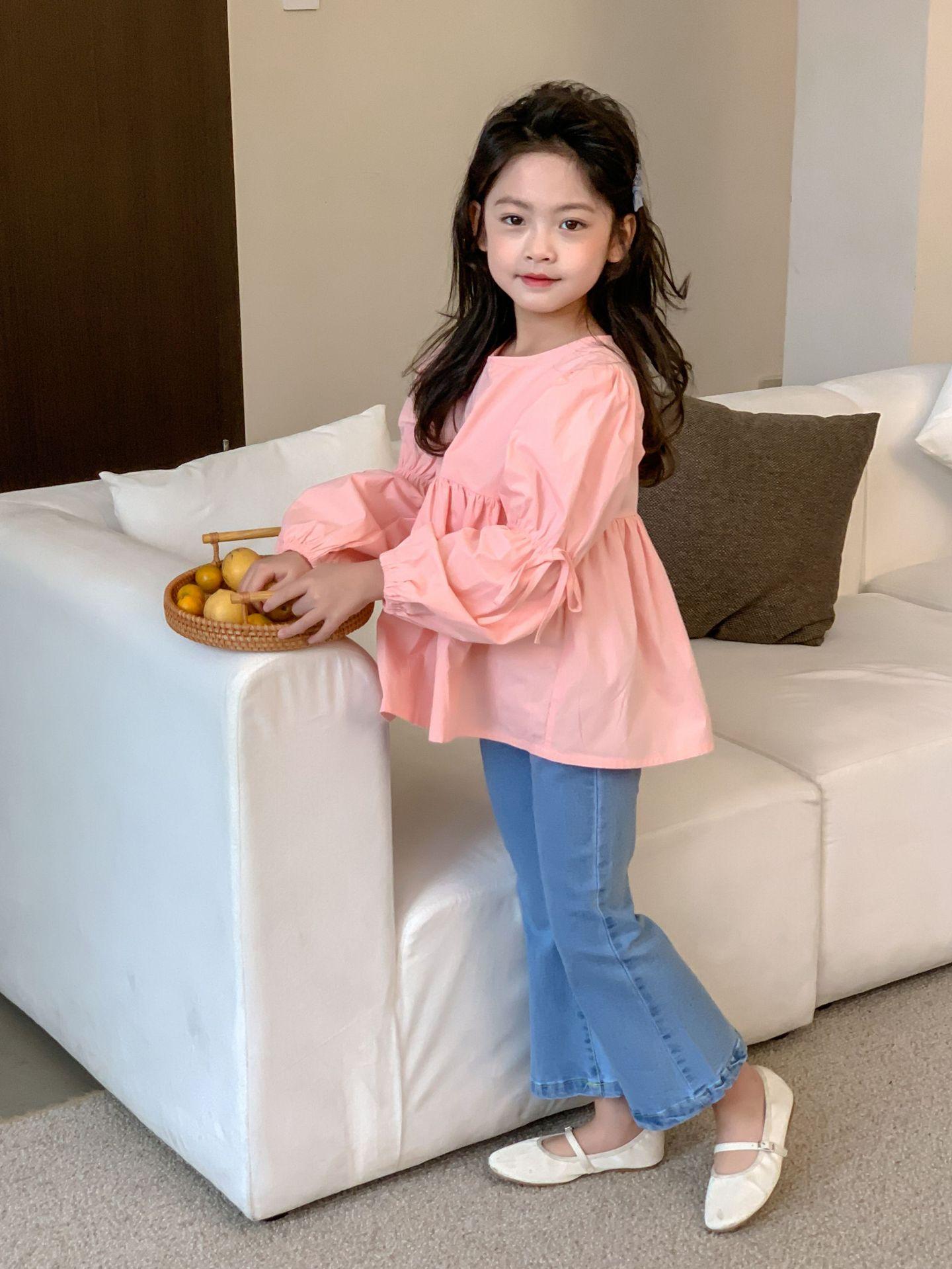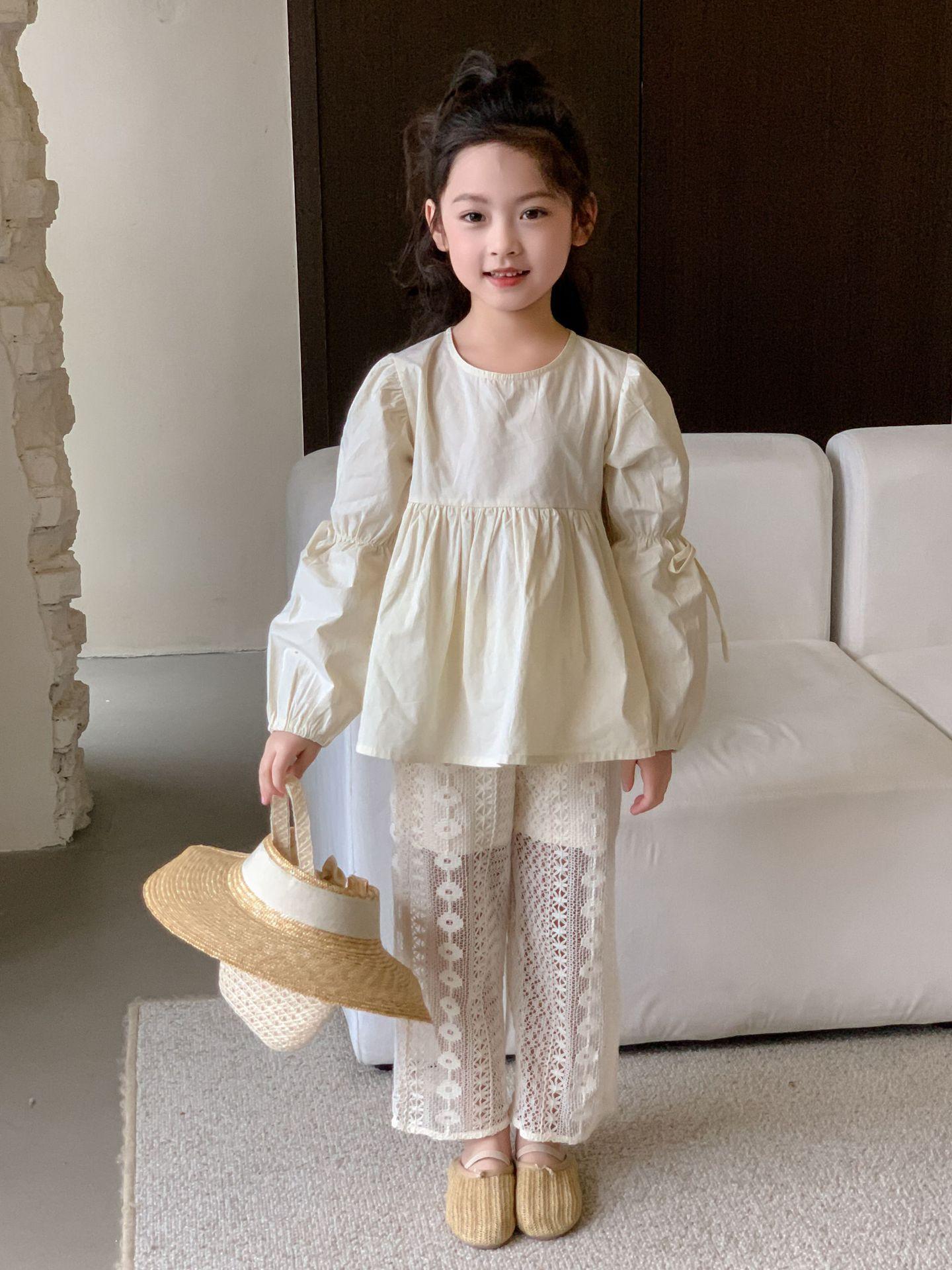 Ropa Infantil INS Primavera 2024 Camisa de Muñeca de Manga Larga con Lazo para Niñas Camisa Estilo Coreano Top