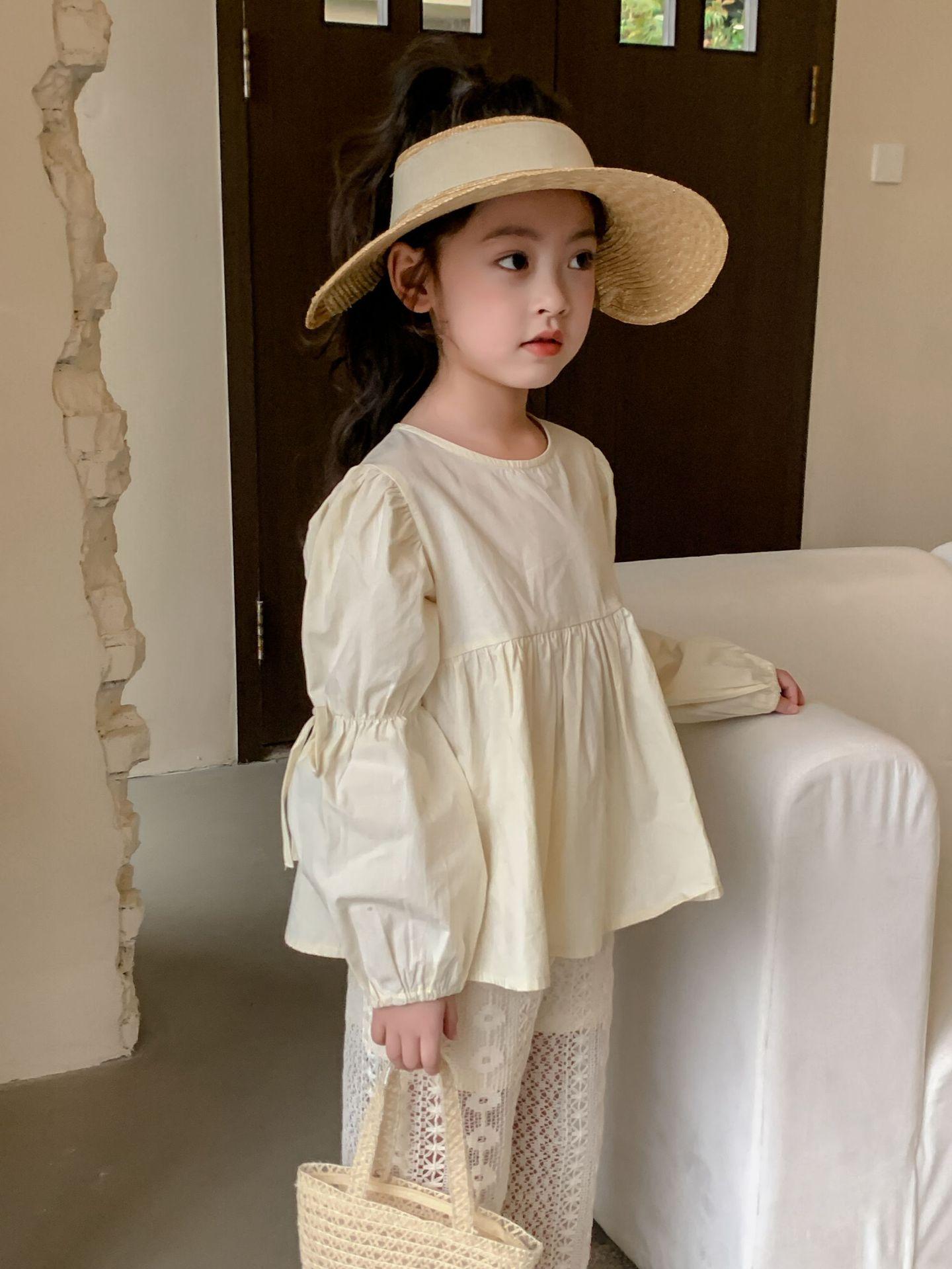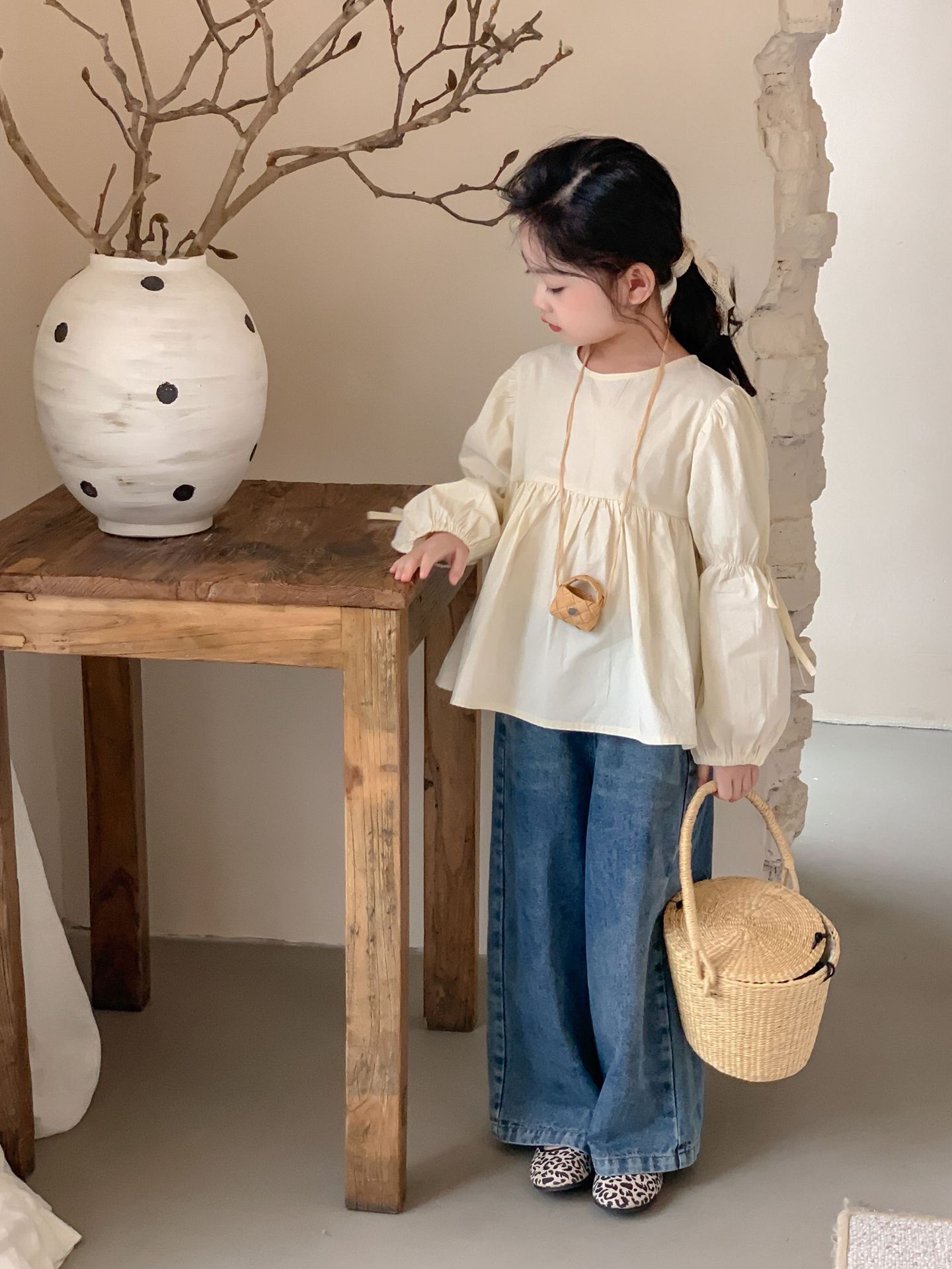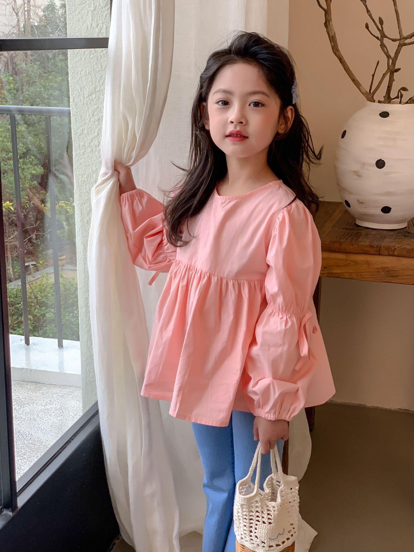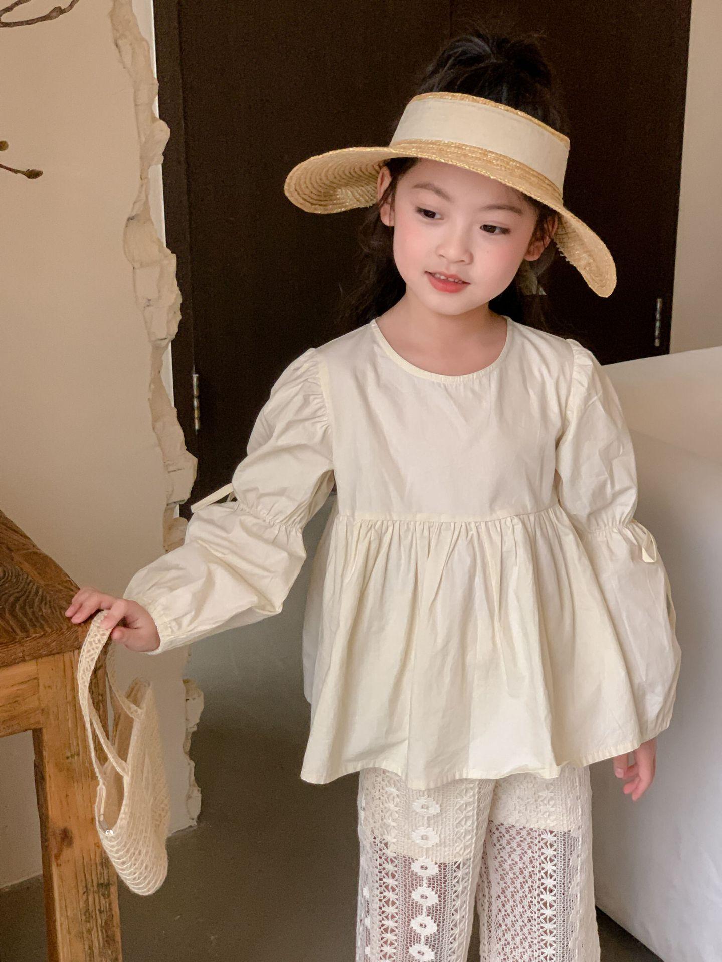Ropa Infantil INS Primavera 2024 Camisa de Muñeca de Manga Larga con Lazo para Niñas Camisa Estilo Coreano Top