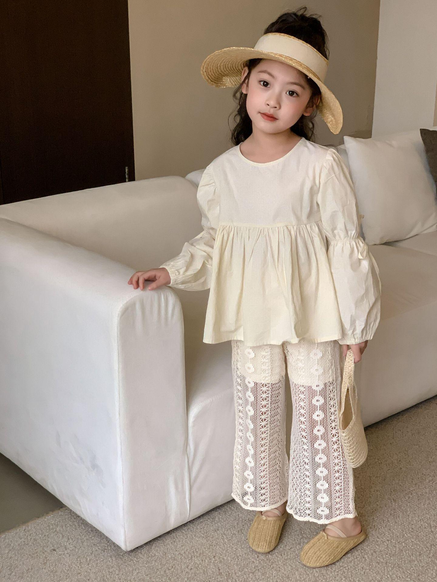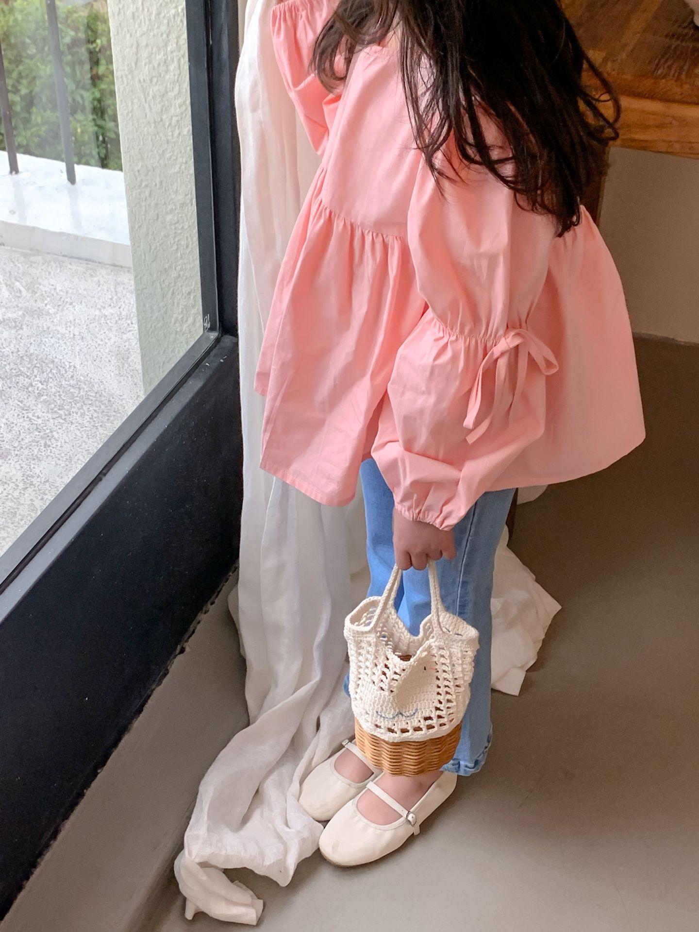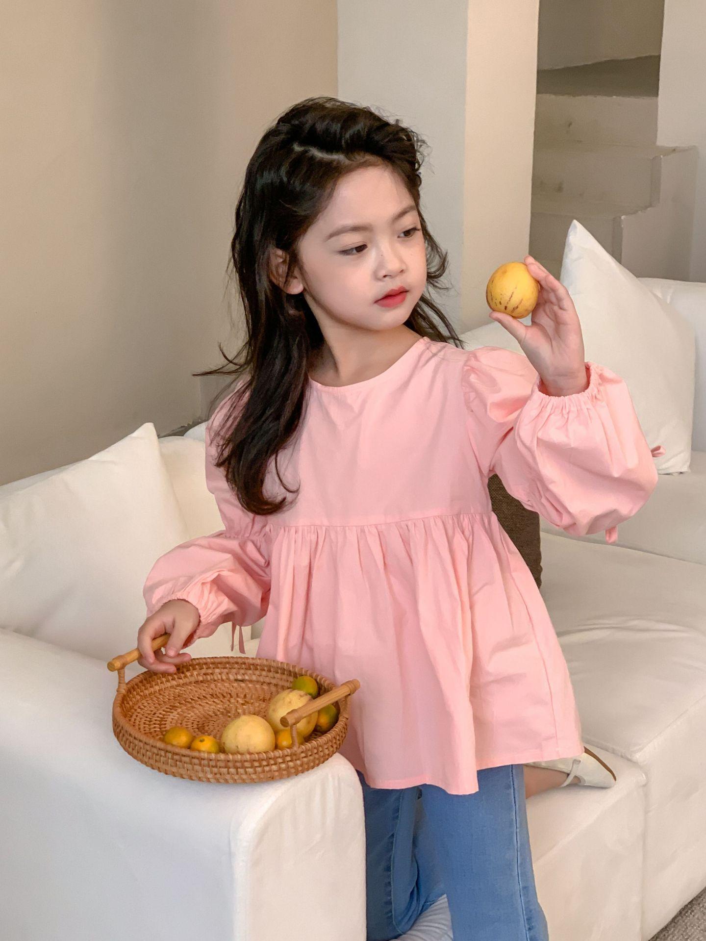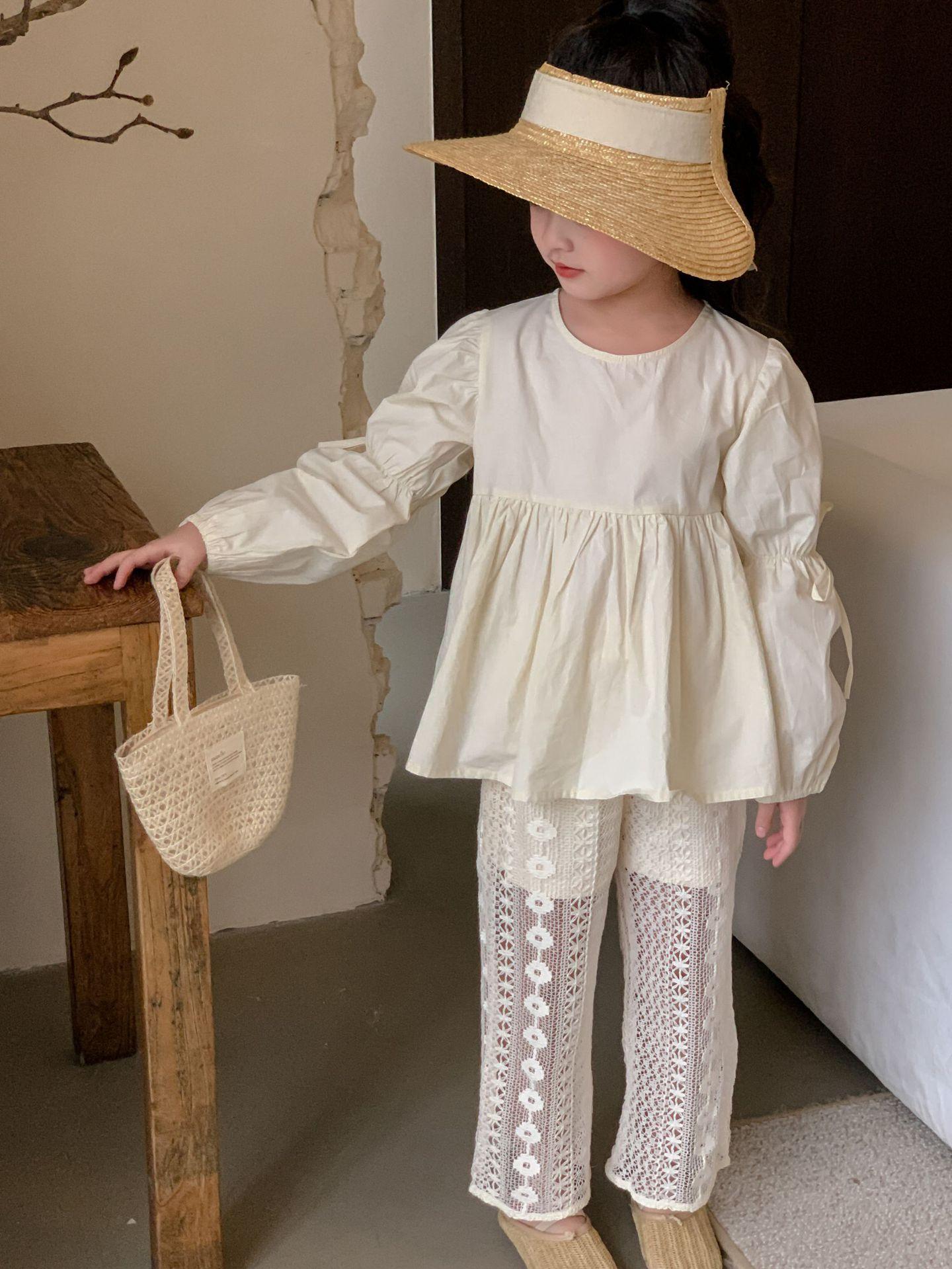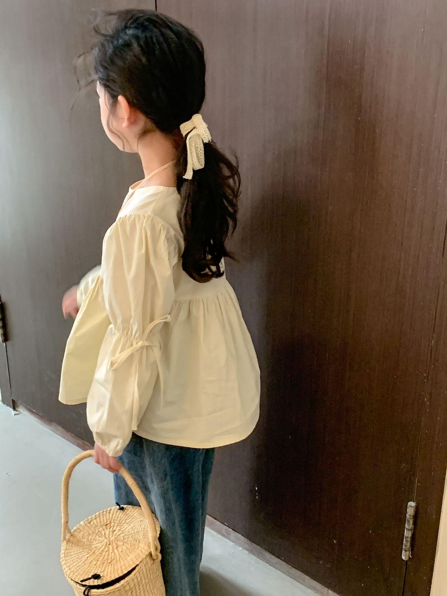 Ropa Infantil INS Primavera 2024 Camisa de Muñeca de Manga Larga con Lazo para Niñas Camisa Estilo Coreano Top