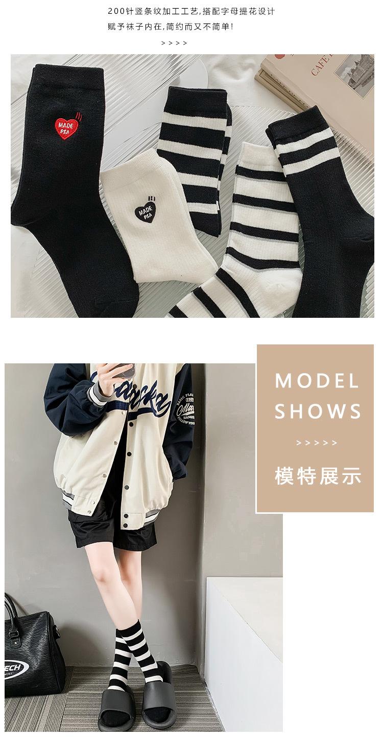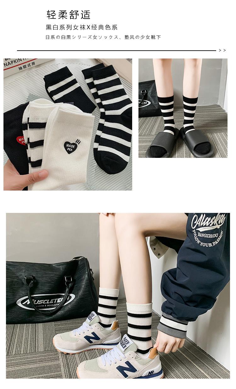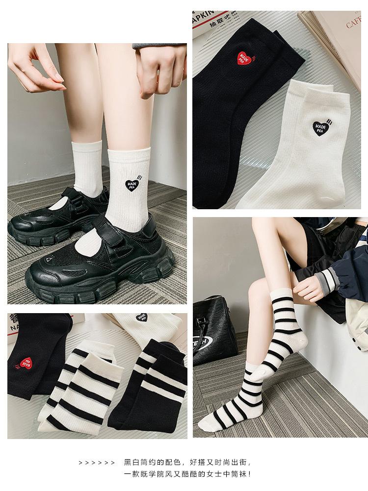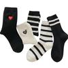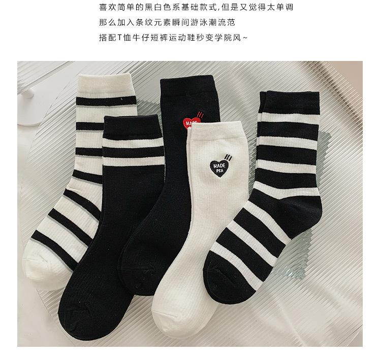 Calcetines nuevos de otoño e invierno para mujer, calcetines japoneses de 200 agujas con rayas blancas y negras para mujer, calcetines de tubo medianos de algodón bordados con amor, venta al por mayor