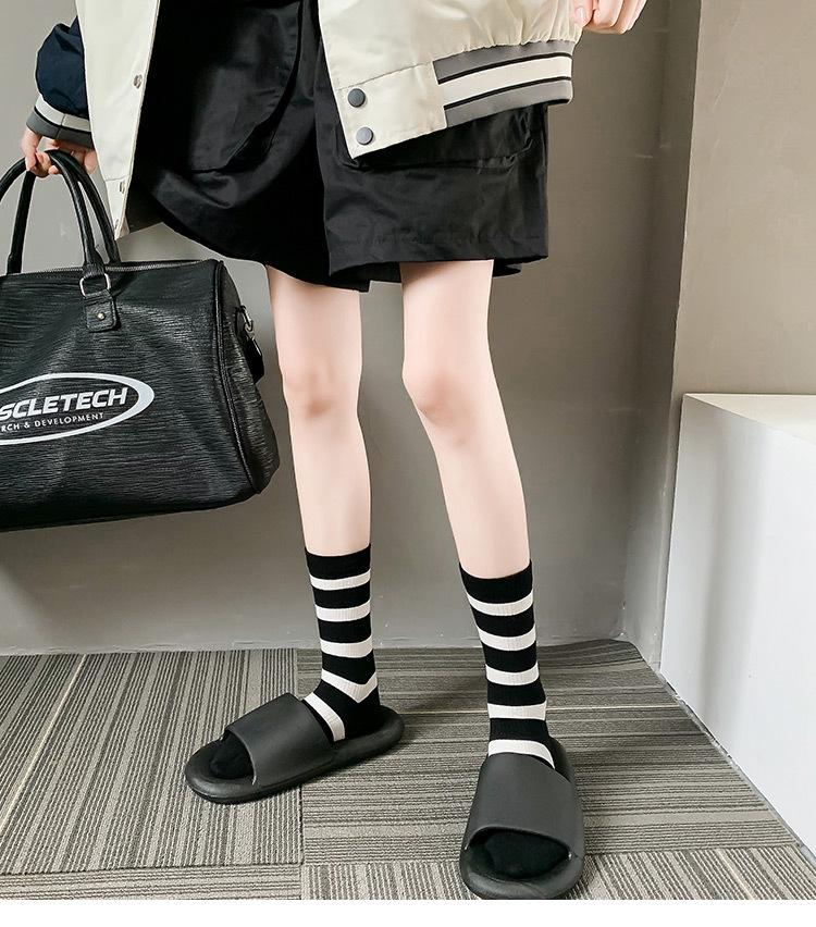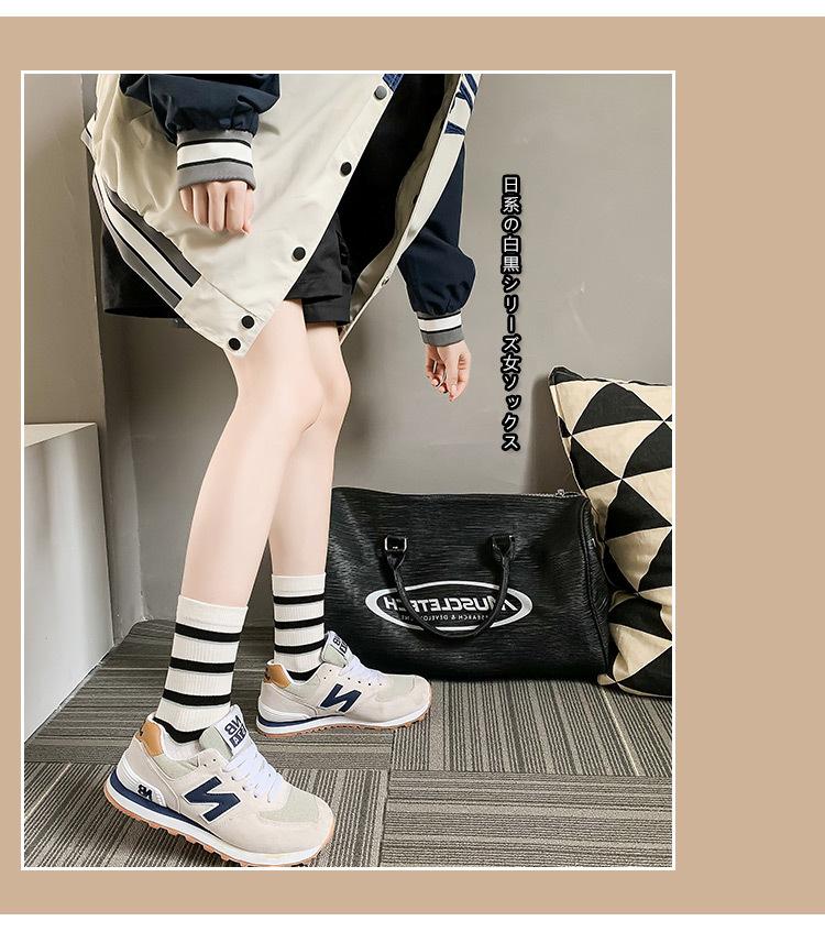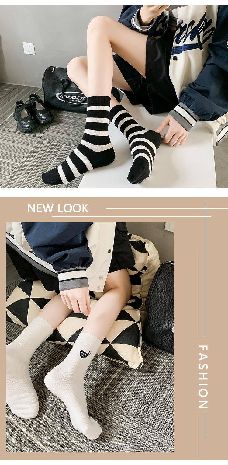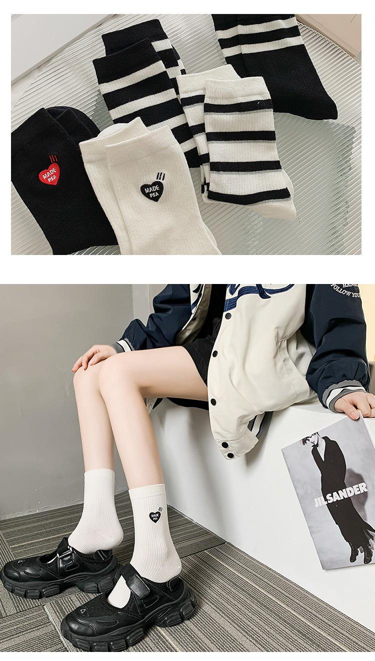 Calcetines nuevos de otoño e invierno para mujer, calcetines japoneses de 200 agujas con rayas blancas y negras para mujer, calcetines de tubo medianos de algodón bordados con amor, venta al por mayor