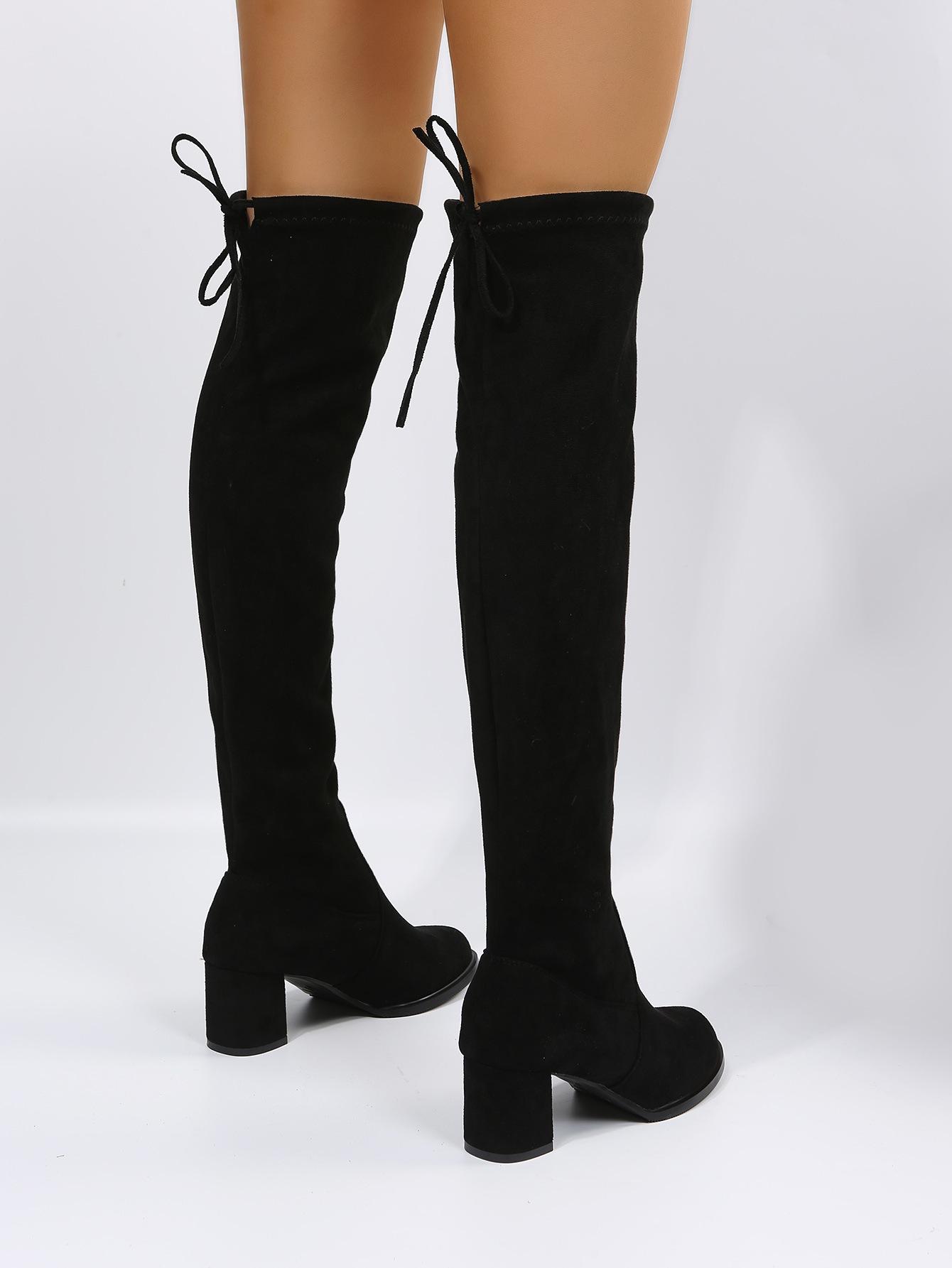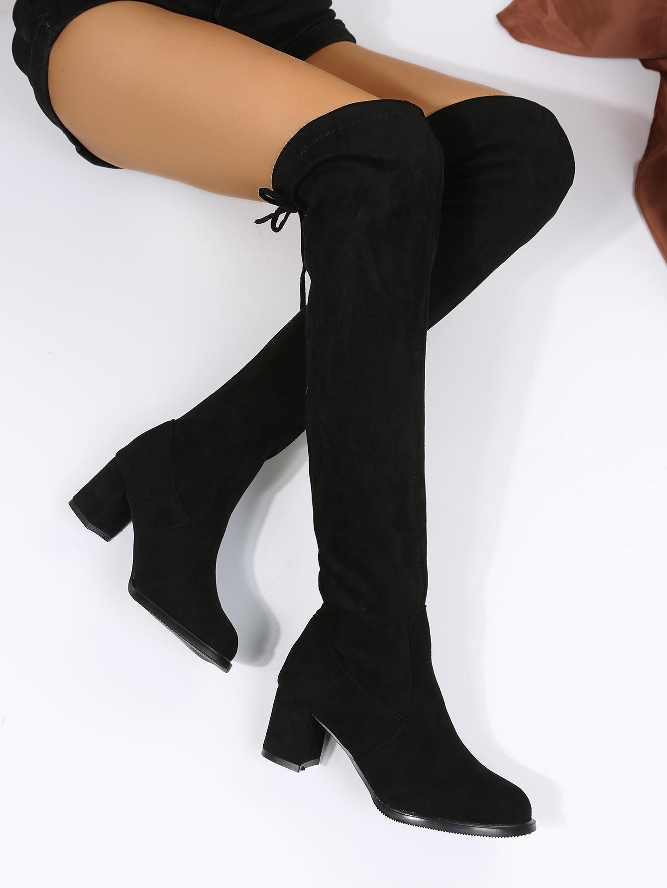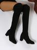 Comercio Exterior Transfronterizo Otoño e Invierno 2022 Botas Largas Elásticas por Encima de la Rodilla para Mujer Tacón Grueso Adelgazantes Botas Altas Tacón Medio Botas de Gamuza para Mujer
