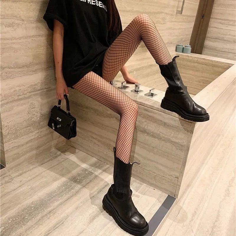Medias de red JK de seda negra para mujer, finas, con ancla, populares, sexys, negras, de malla pura.