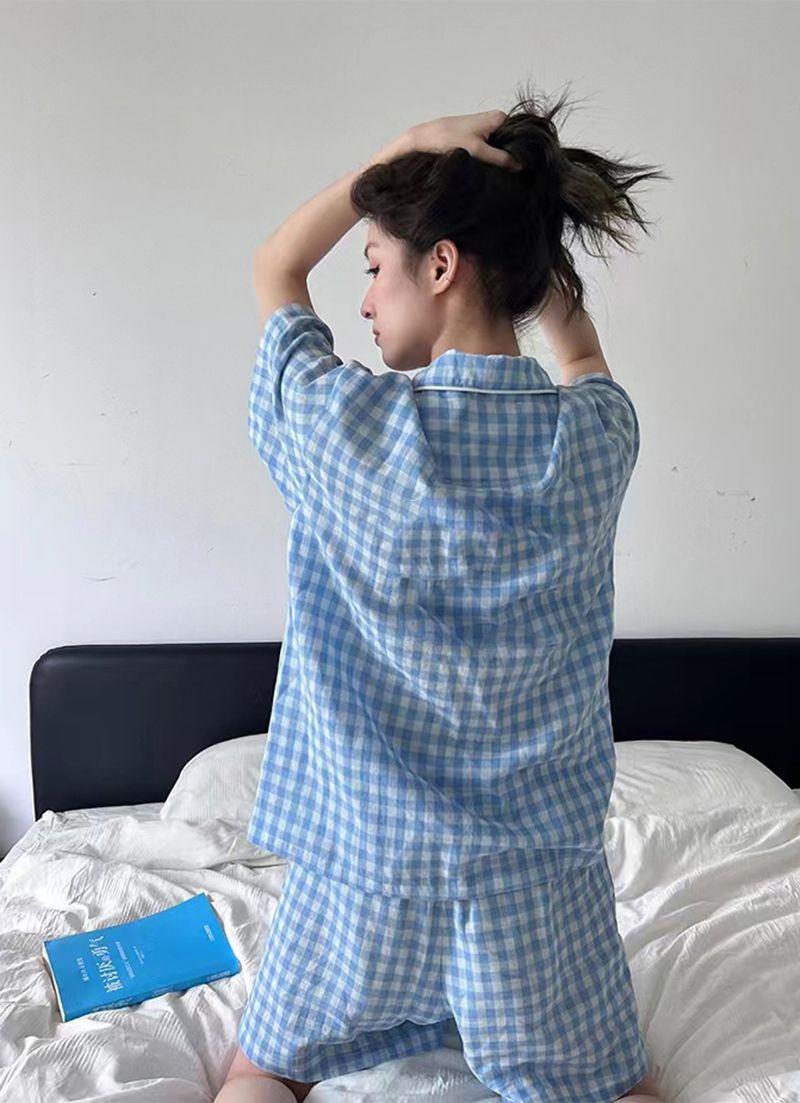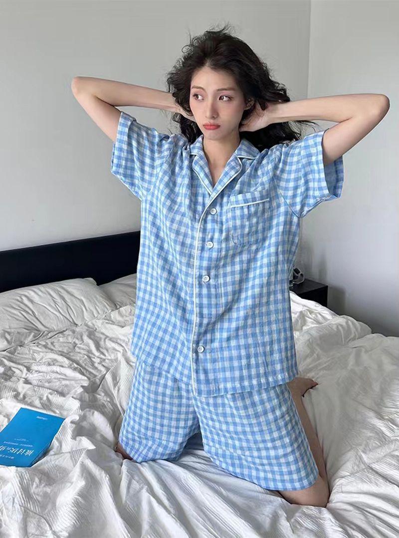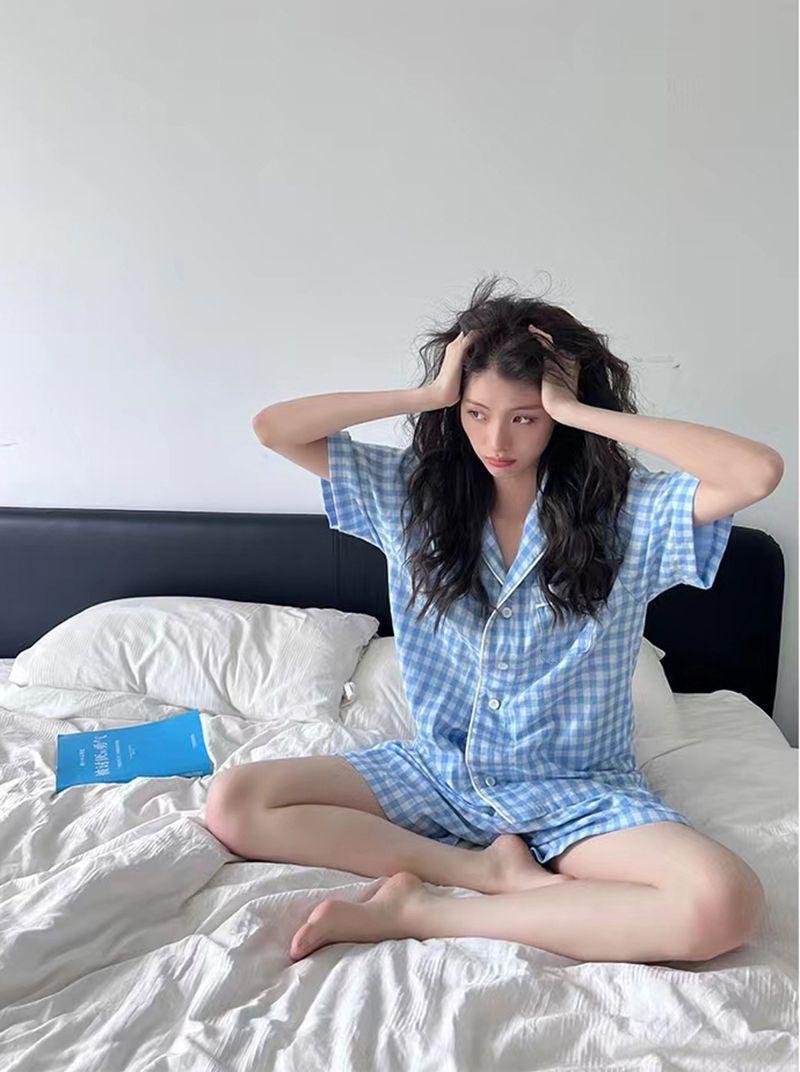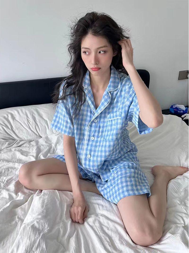 Pijama holgado de verano 2024 para hombrecito, ropa de casa de manga corta para mujer