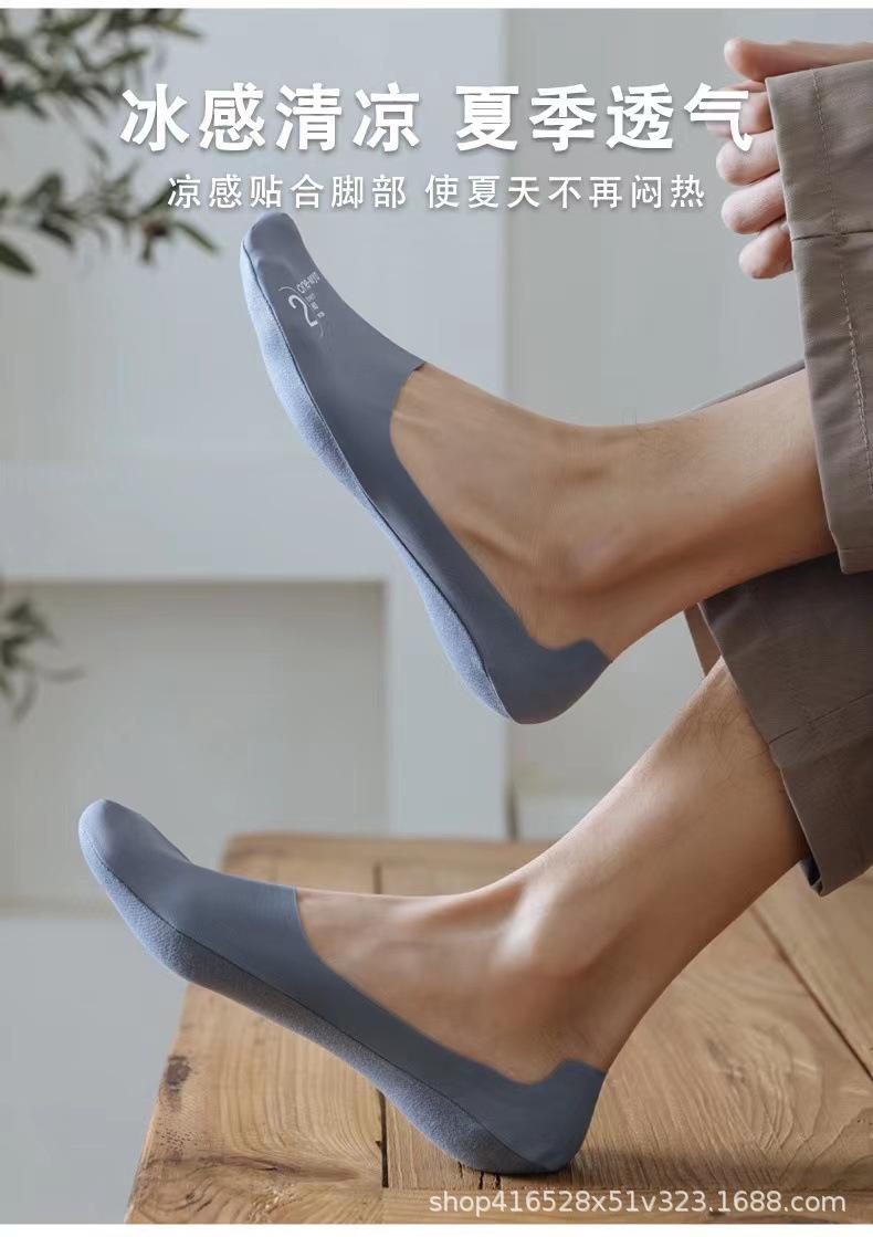Calcetines para Hombre de Verano Tipo Barco de Boca Baja Seda de Hielo Fondo de Algodón Puro Antideslizantes de Corte Bajo Transpirables Finos Invisibles
