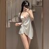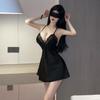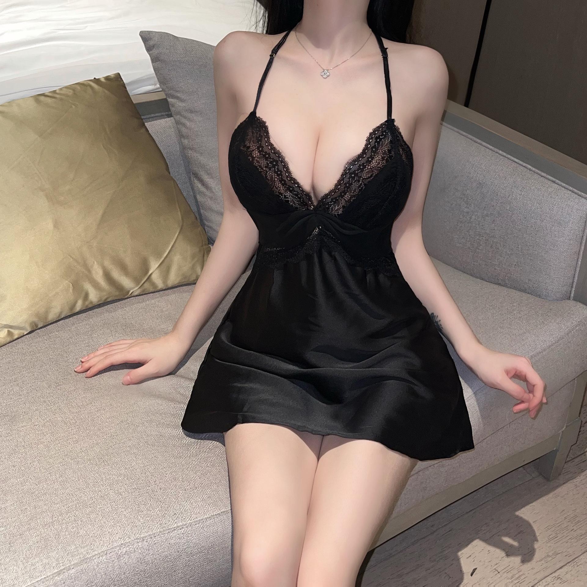 Lencería Sexy, Pijama Fino de Seda para Verano, Sexy Falda con Tirantes para Mujer Estilo Palacio Negro con Camisón, Tentador y Sexy