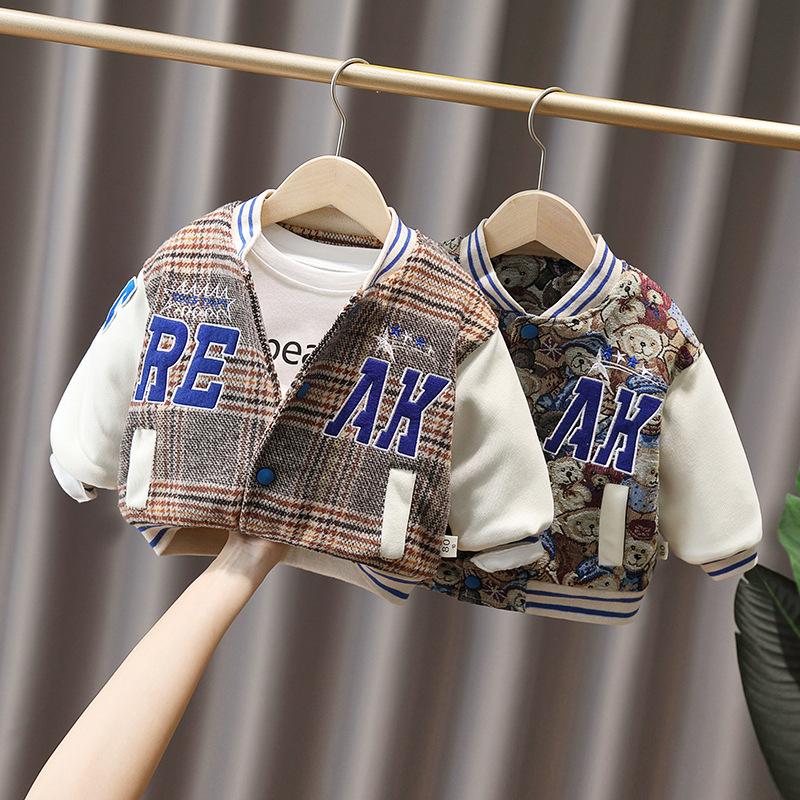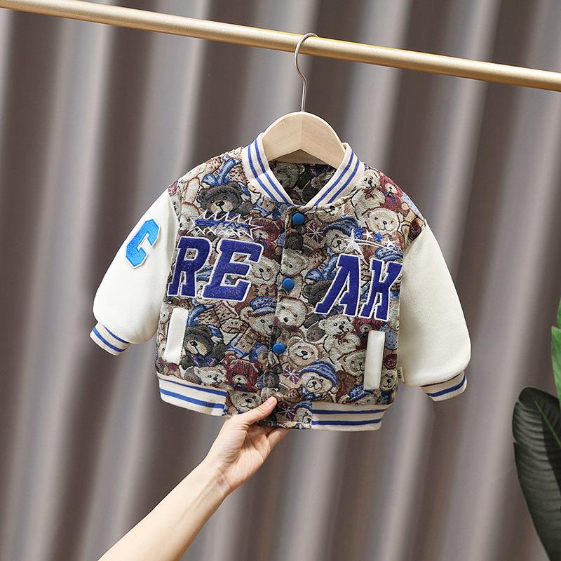 Abrigo de primavera y otoño para niños, chaqueta para bebés, ropa para niños al por mayor, ropa de béisbol acolchada de invierno, elegante, moderna, gruesa y cálida.