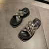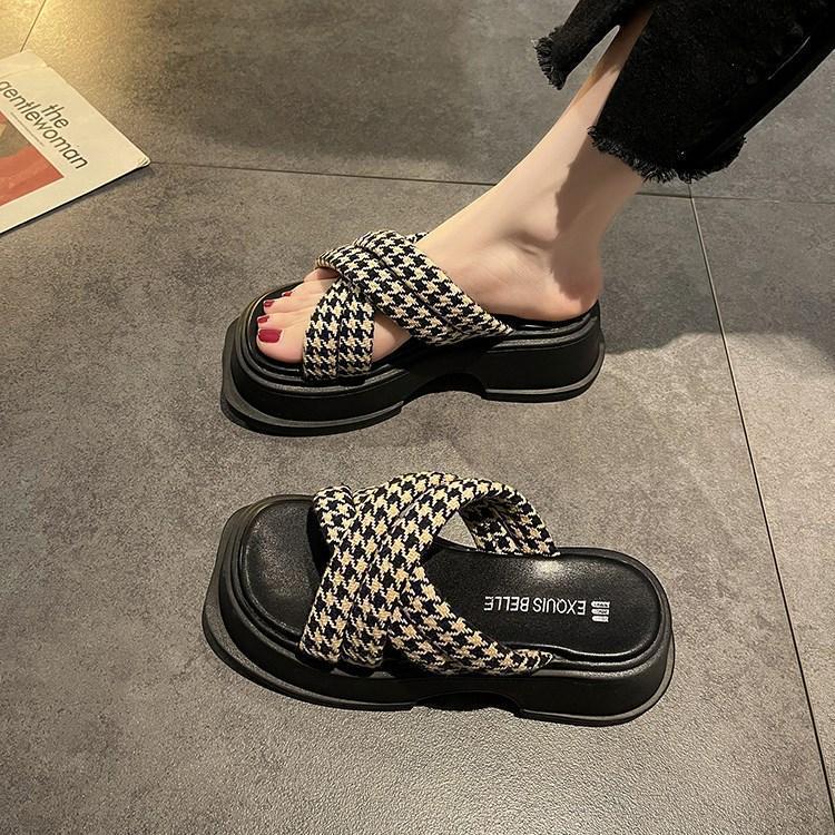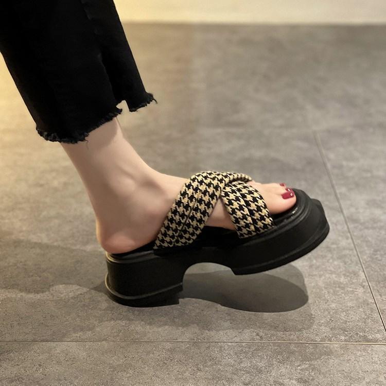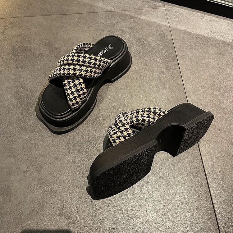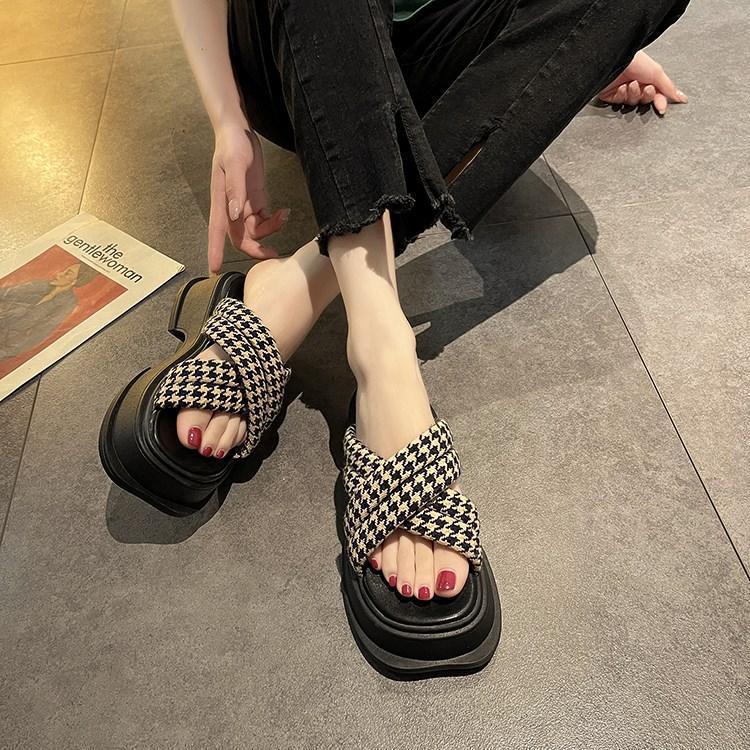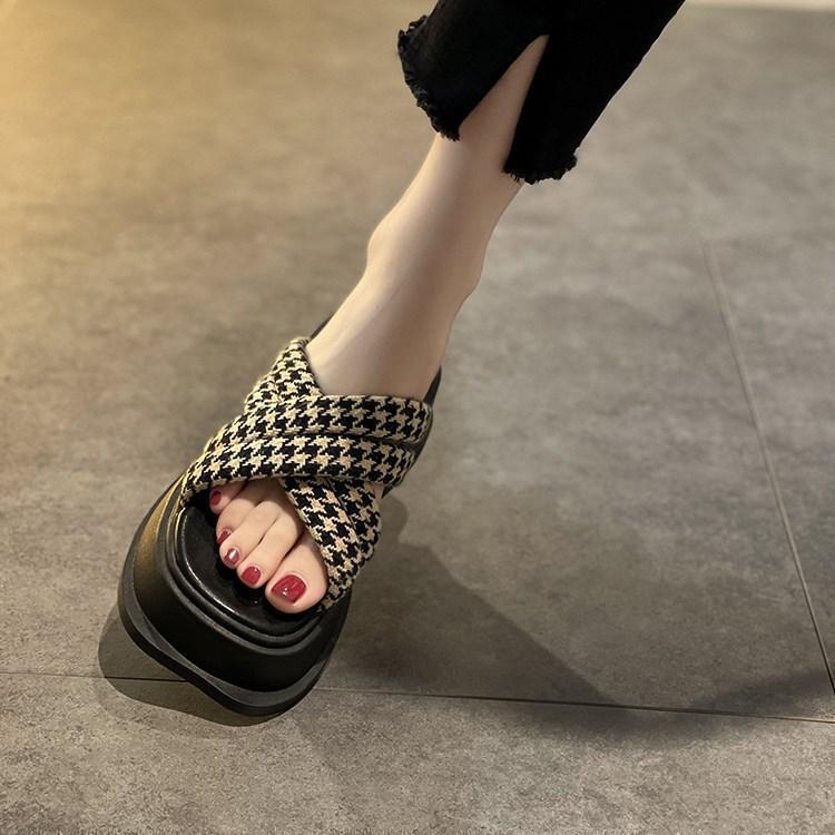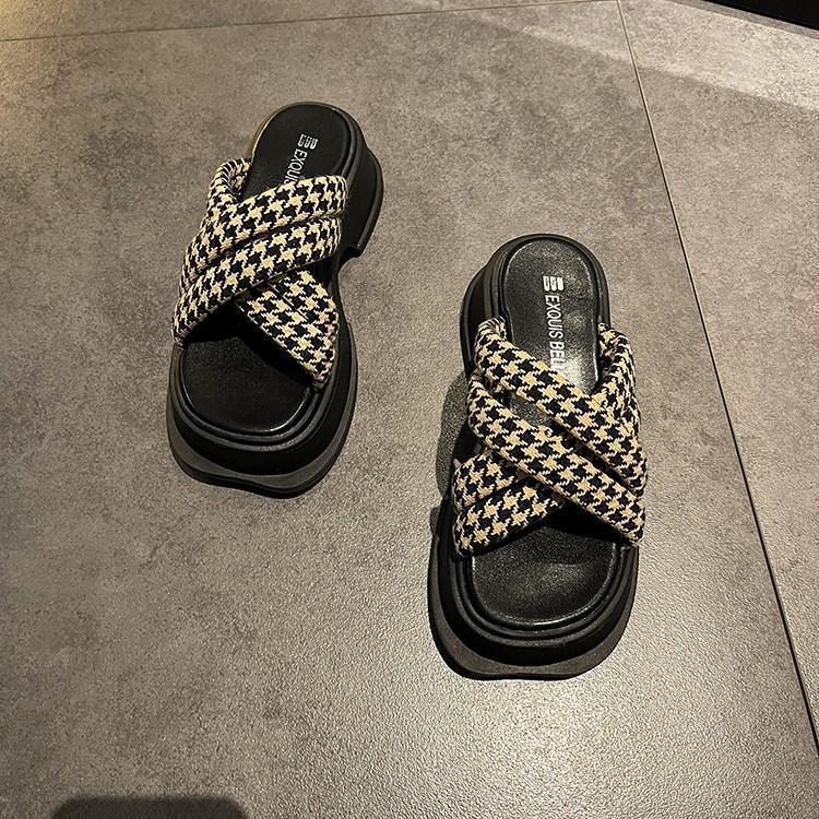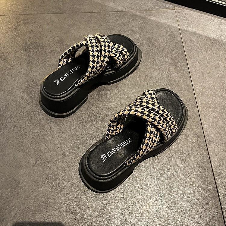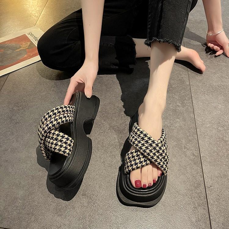 Pantuflas de Suela Gruesa para Mujer Verano 2025 Nueva Moda Retro Sandalias Cruzadas Populares Medias Pantuflas