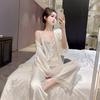Pijamas de pareja nuevos de verano 2022 para mujer, estilo fino, de red, de celebridad, de color sólido, para el hogar, se pueden usar al aire libre, cárdigan de manga larga, ropa para el hogar¥55.0066 libras