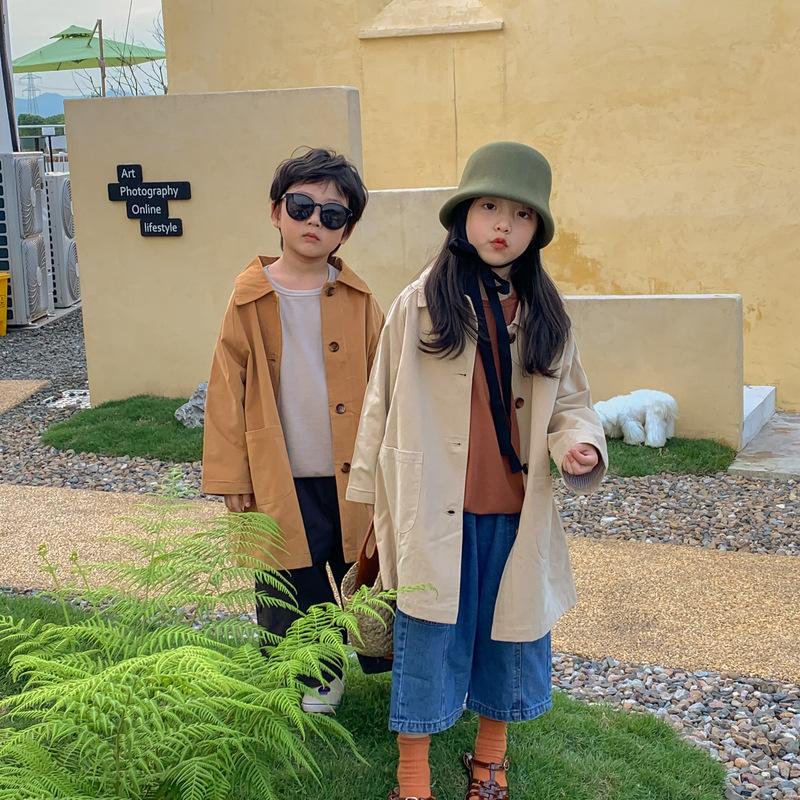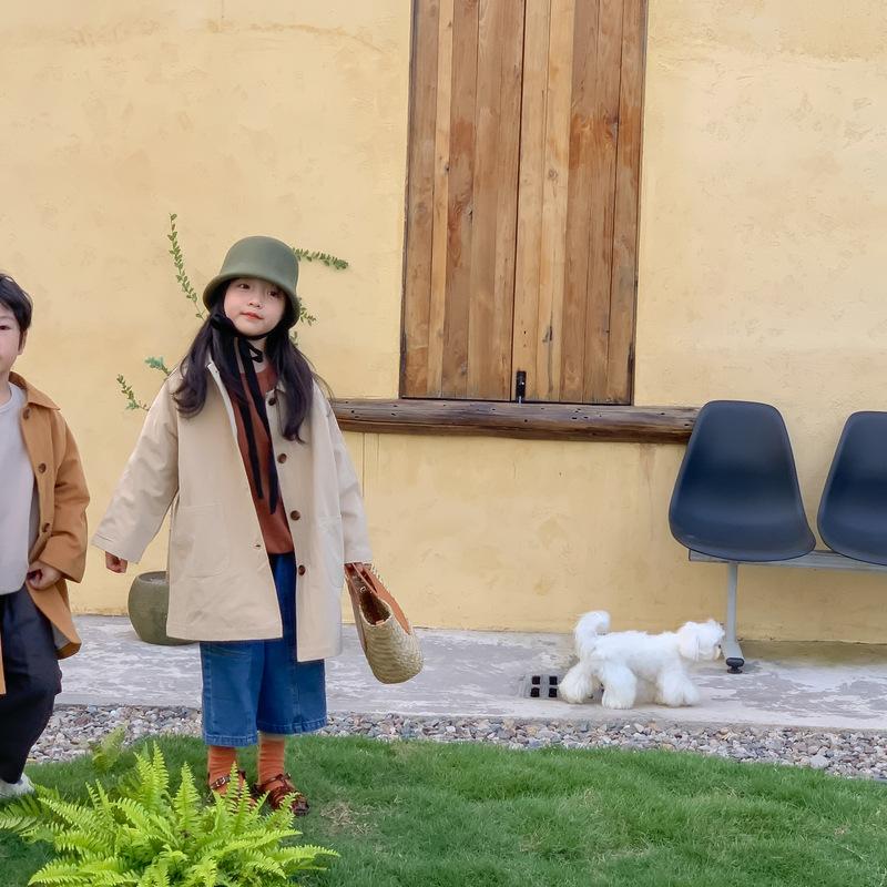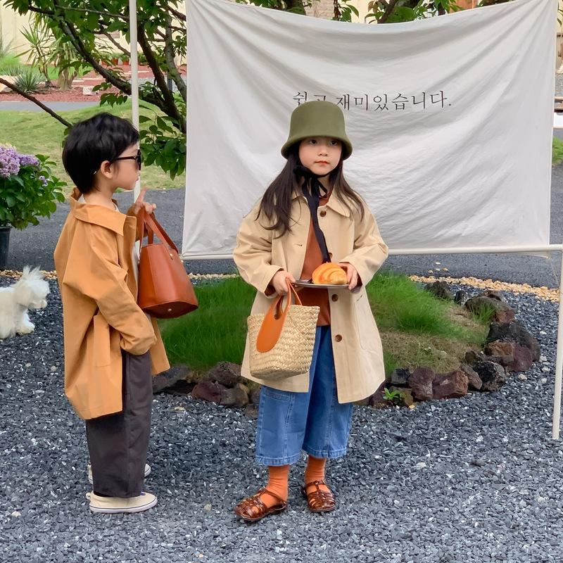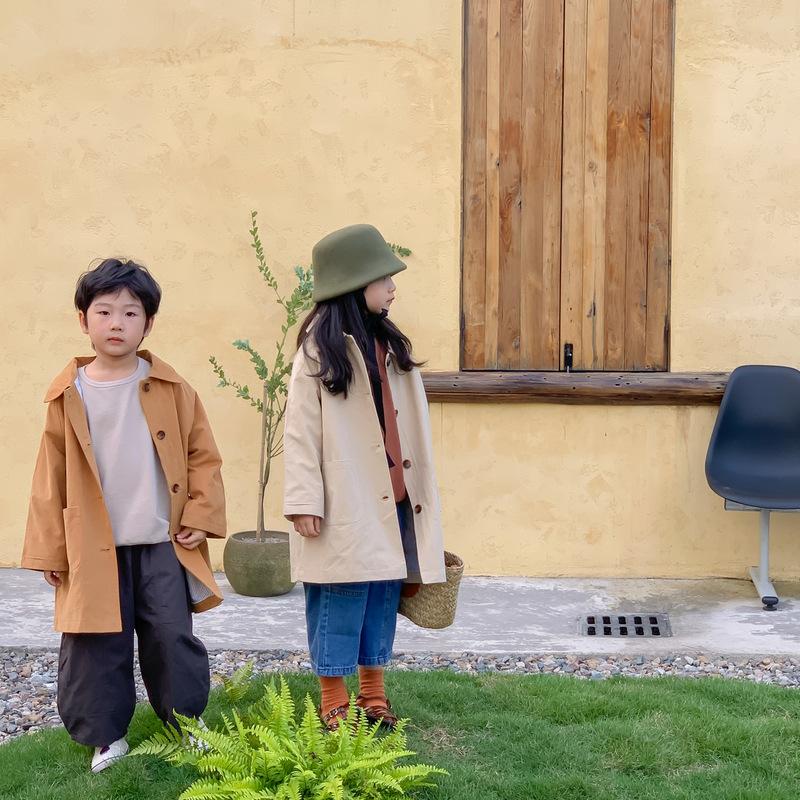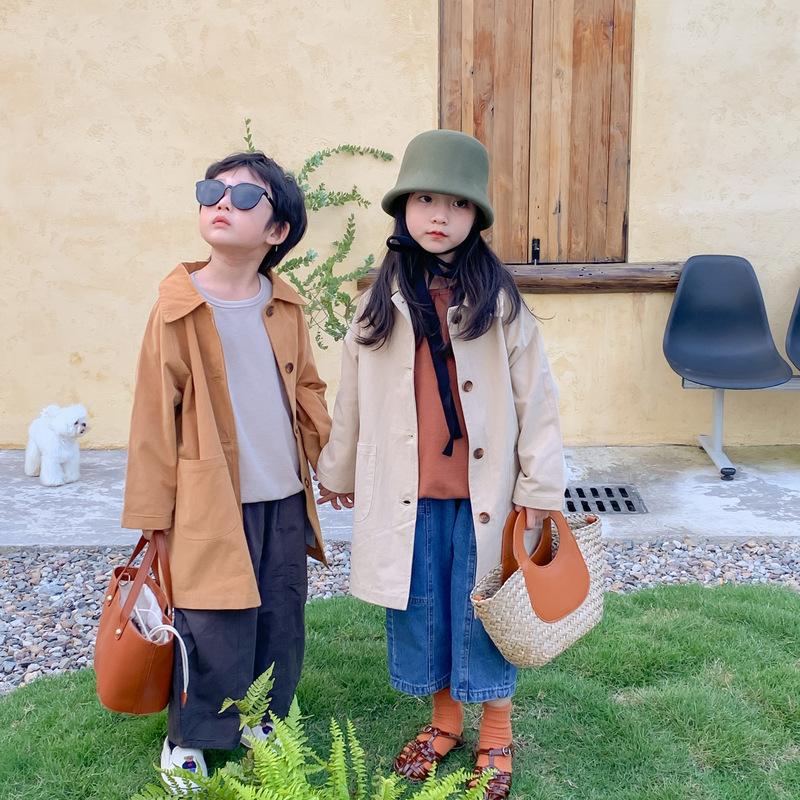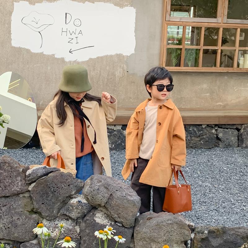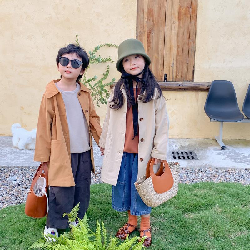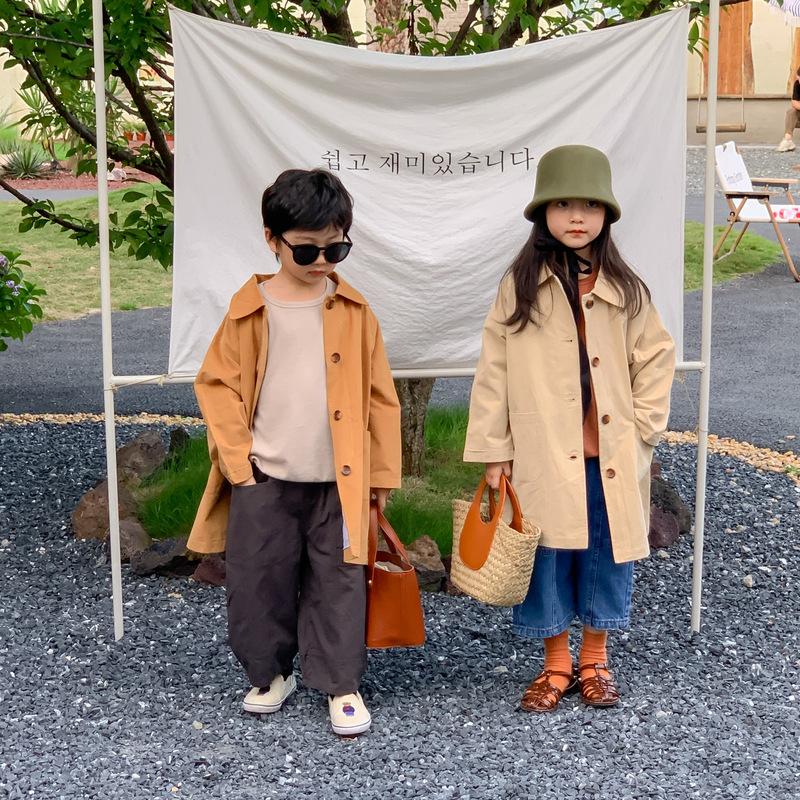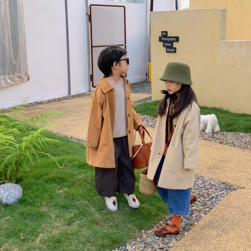 Abrigo Trench Infantil 2025 Otoño Estilo Coreano Cuello Vuelto Chaqueta de Color Sólido para Niños y Niñas, Top Casual de Corte Holgado para Niños