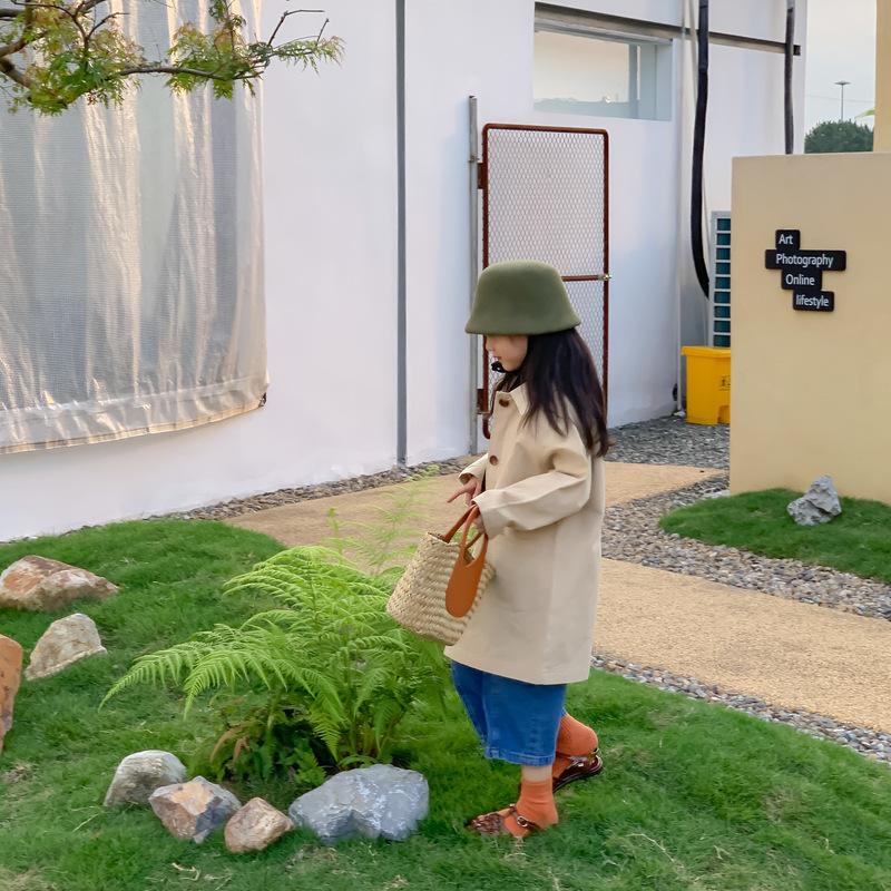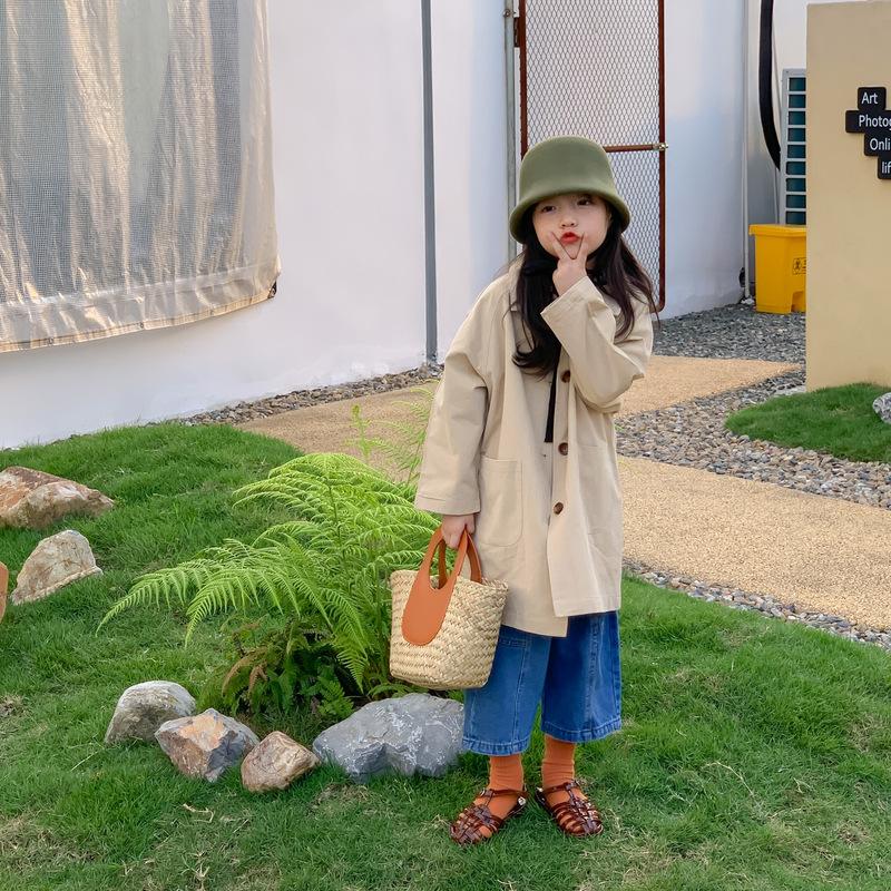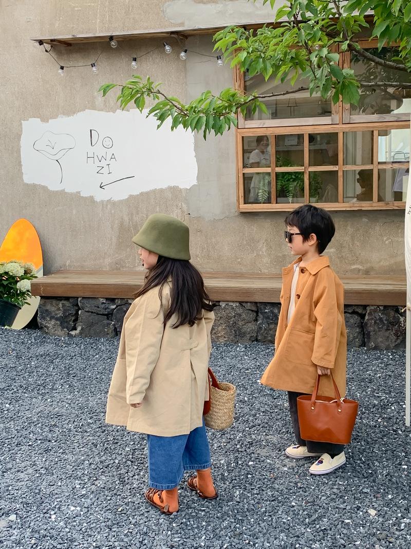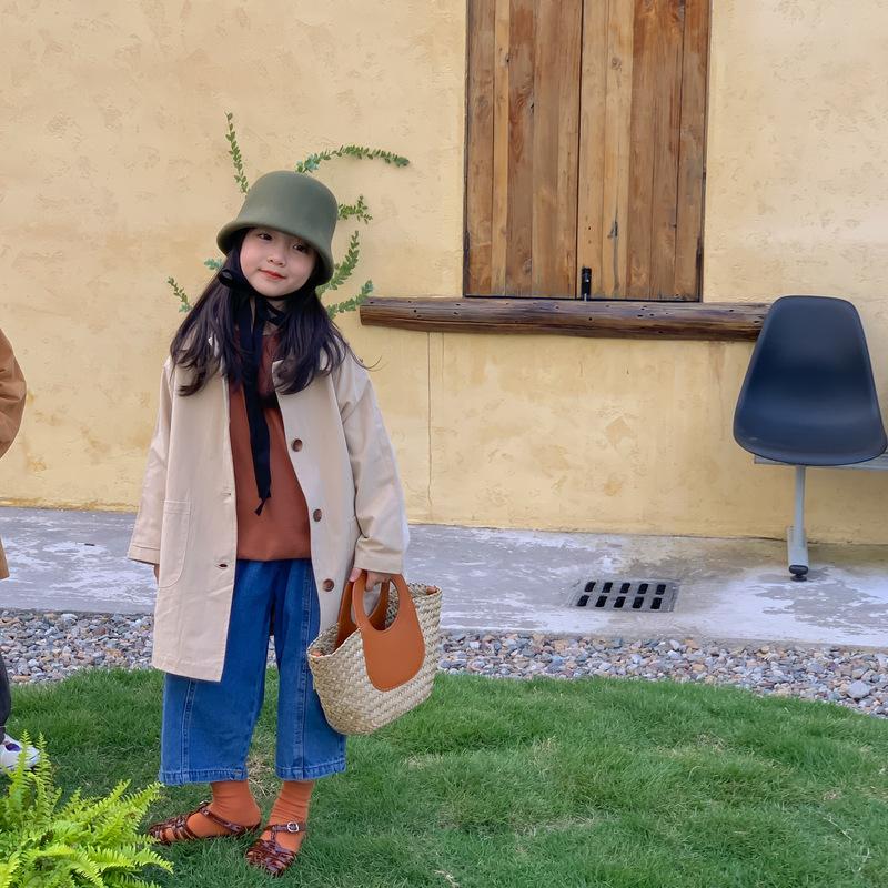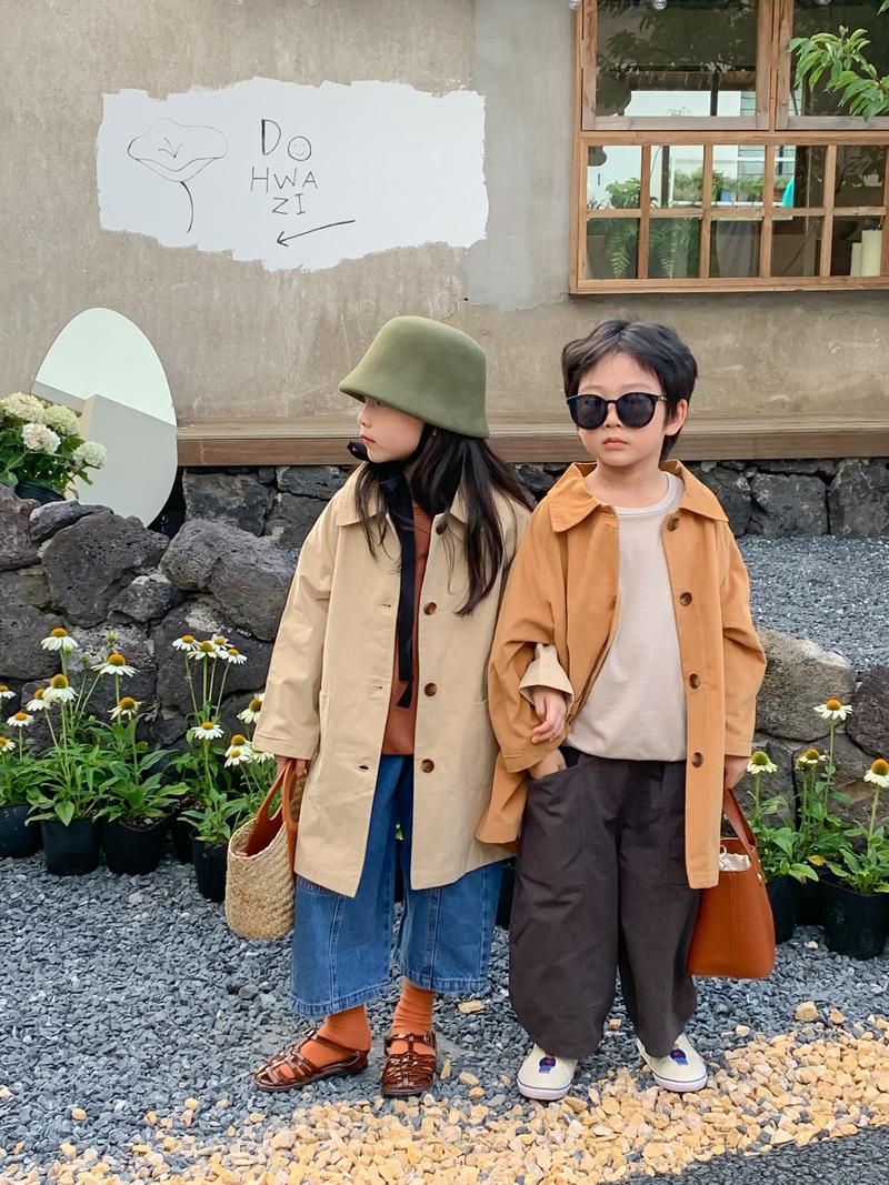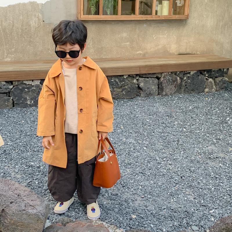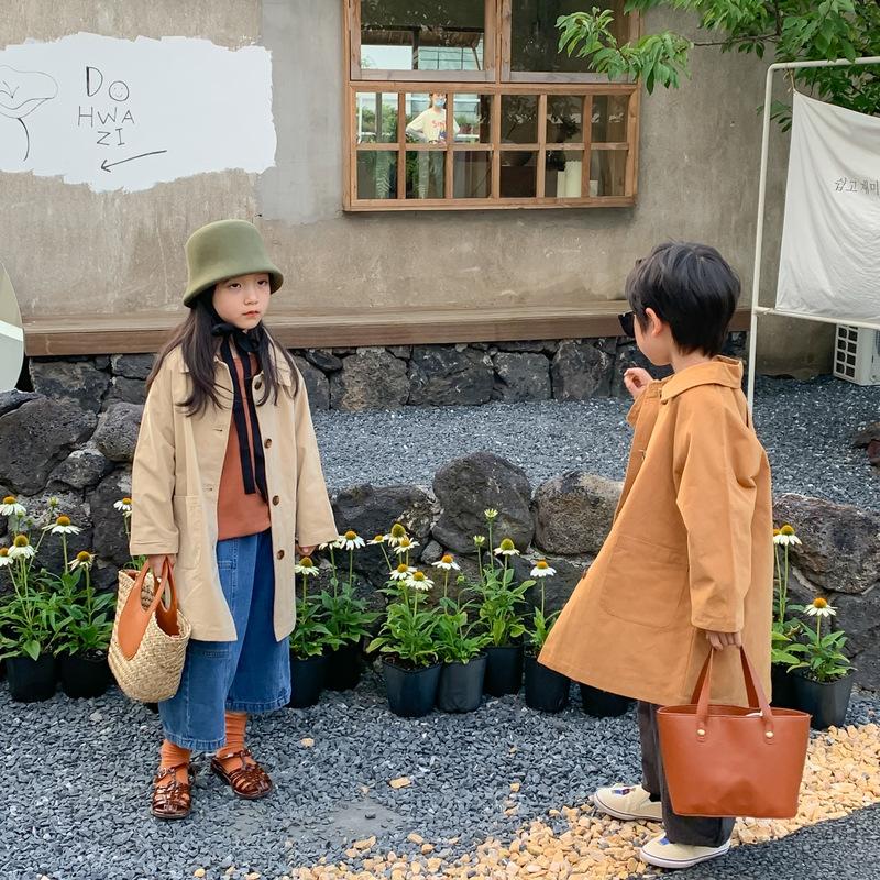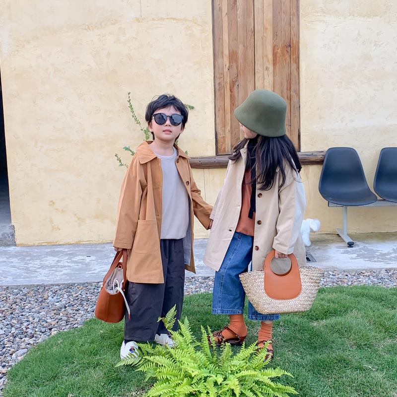 Abrigo Trench Infantil 2025 Otoño Estilo Coreano Cuello Vuelto Chaqueta de Color Sólido para Niños y Niñas, Top Casual de Corte Holgado para Niños