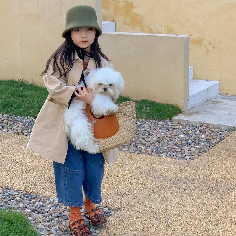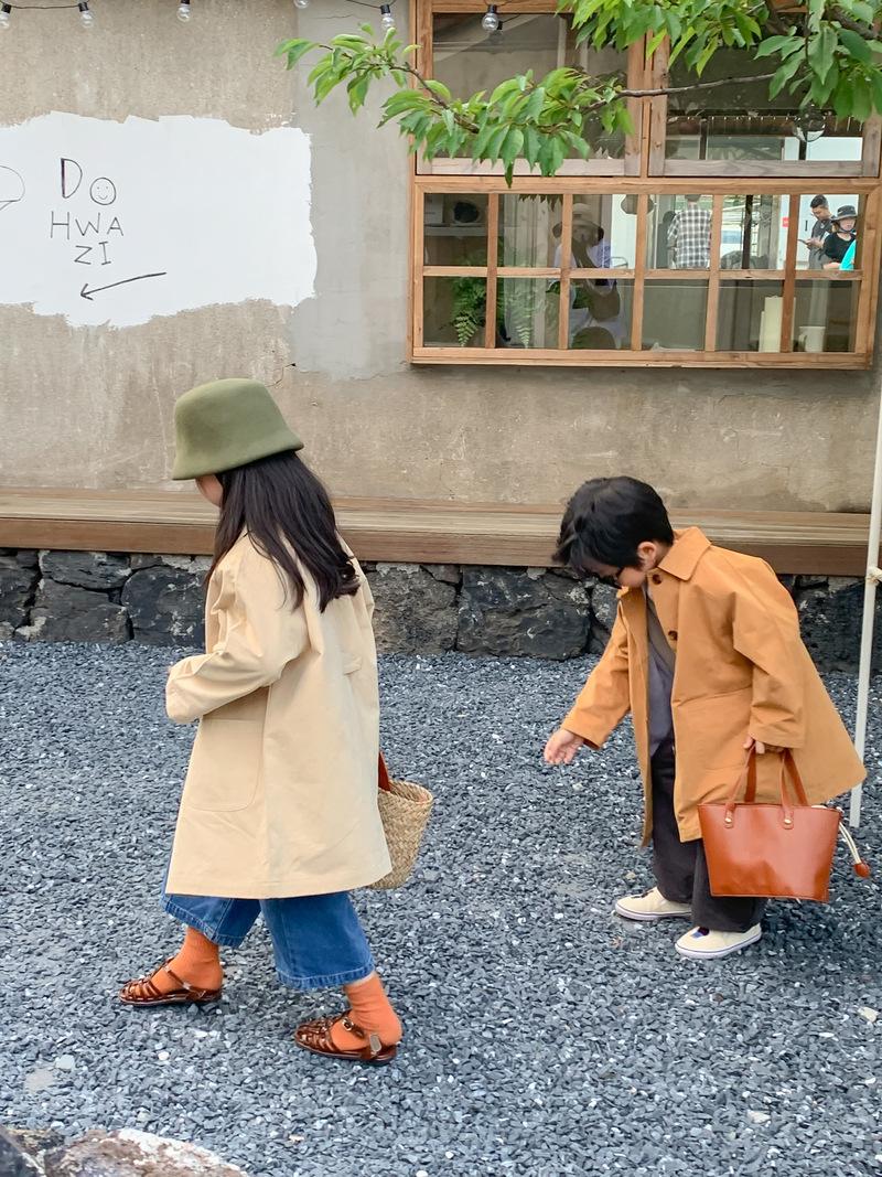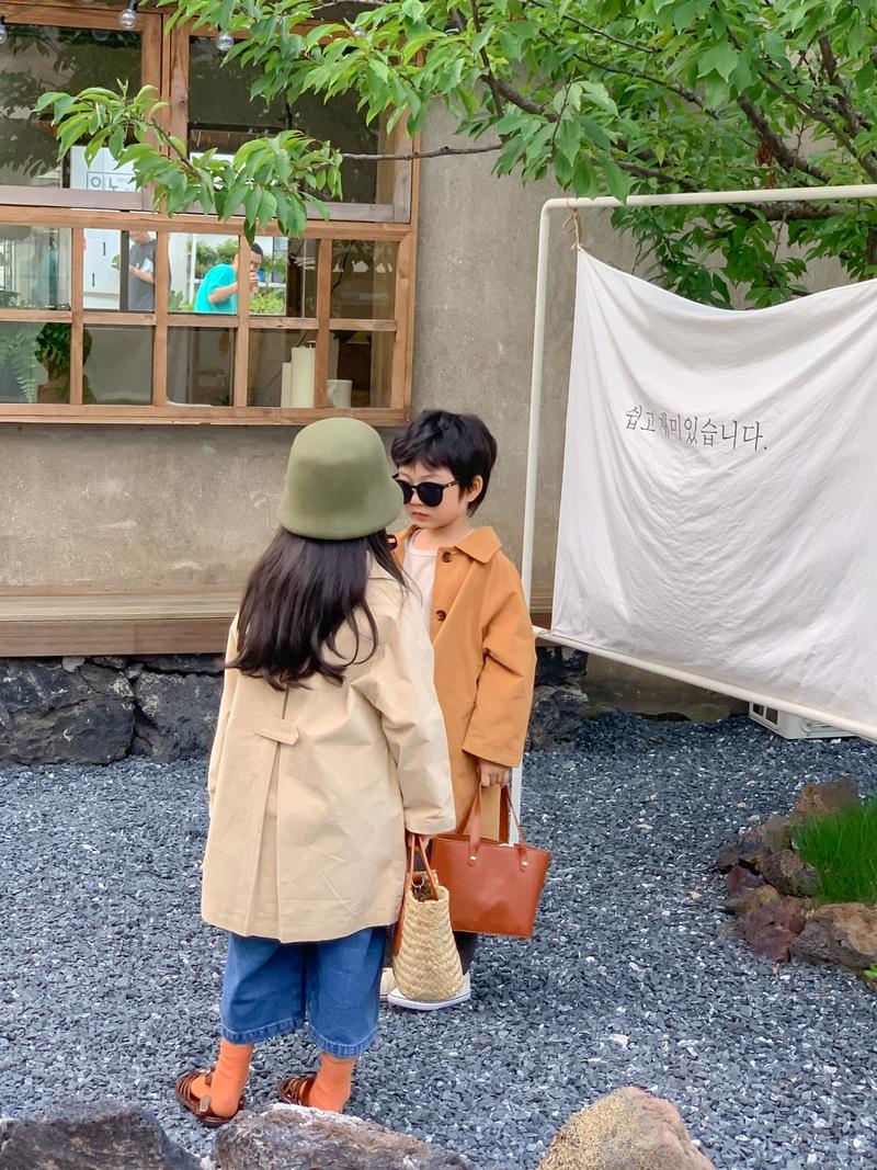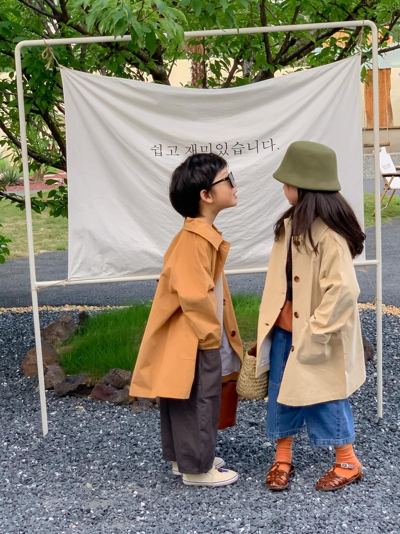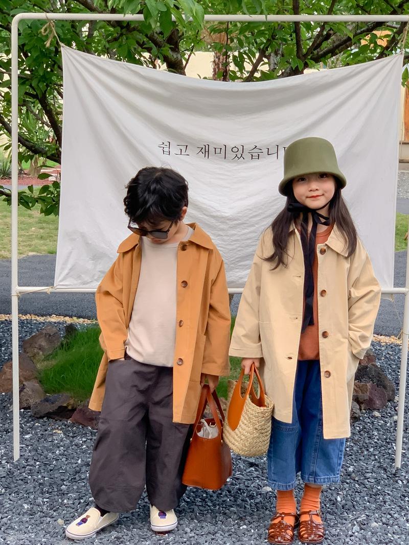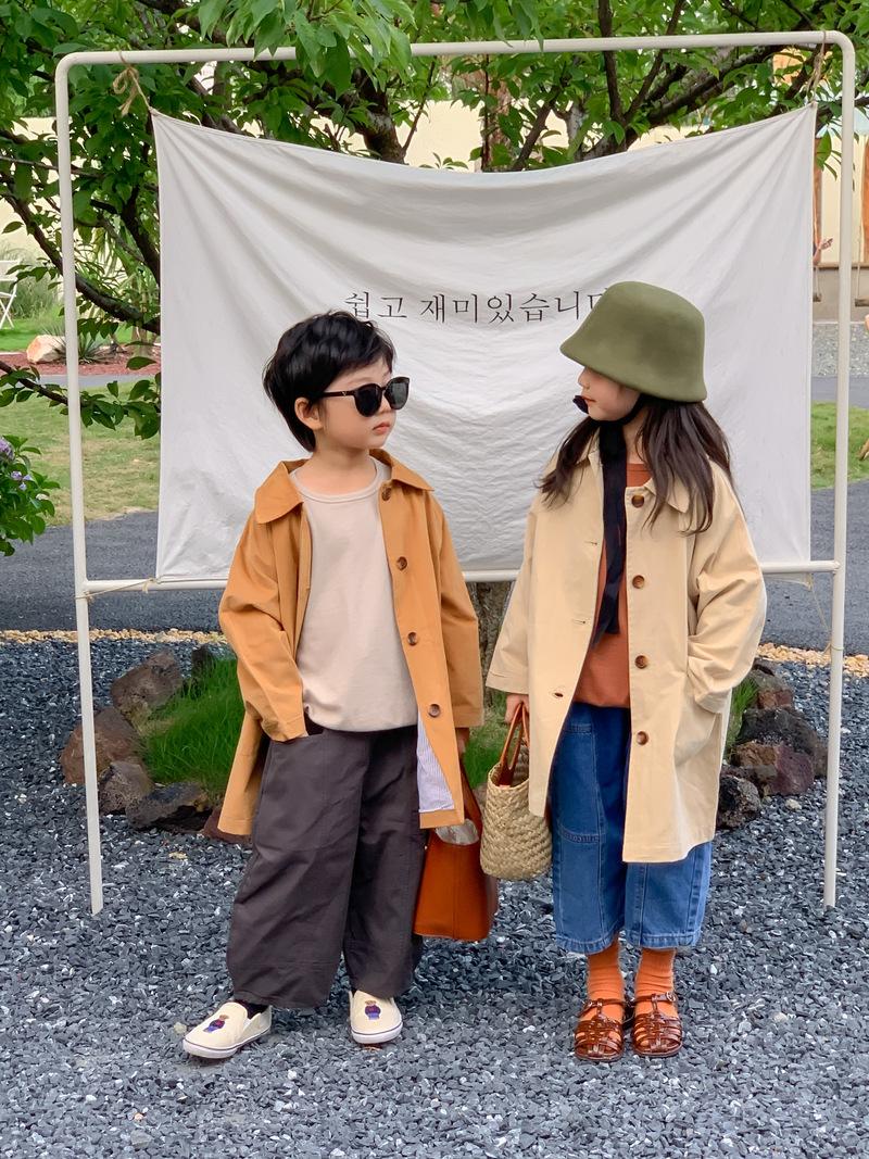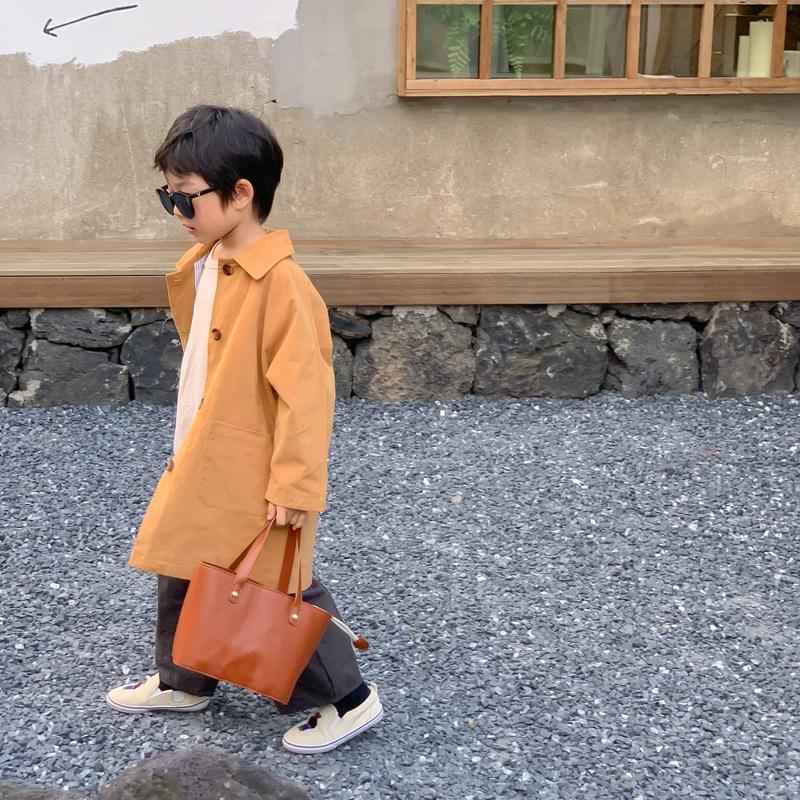 Abrigo Trench Infantil 2025 Otoño Estilo Coreano Cuello Vuelto Chaqueta de Color Sólido para Niños y Niñas, Top Casual de Corte Holgado para Niños