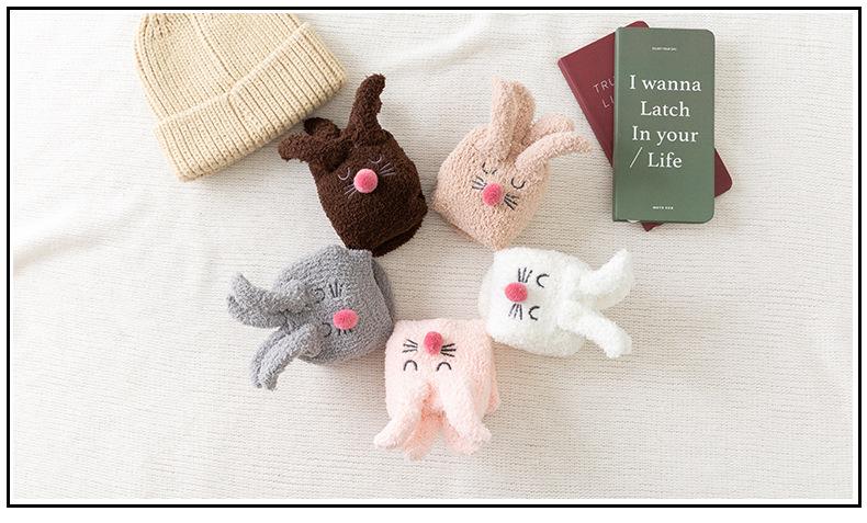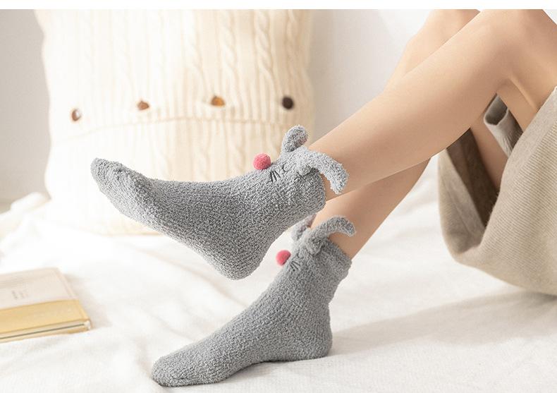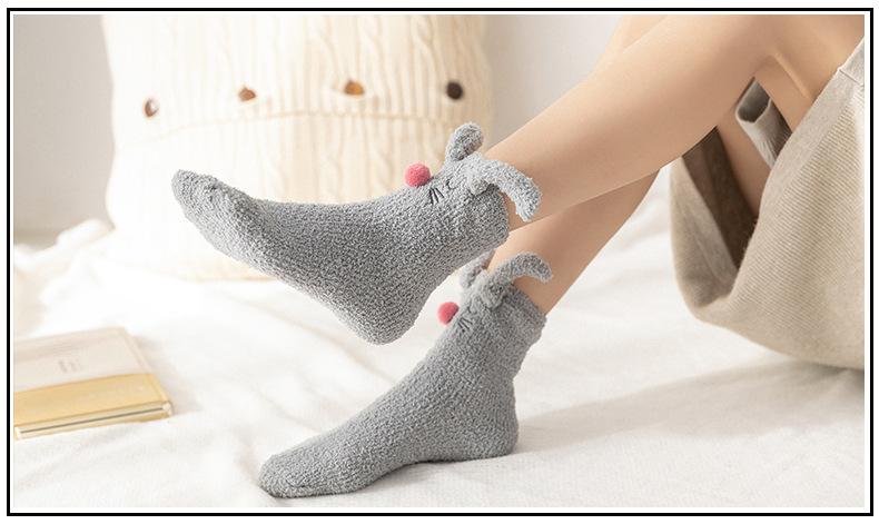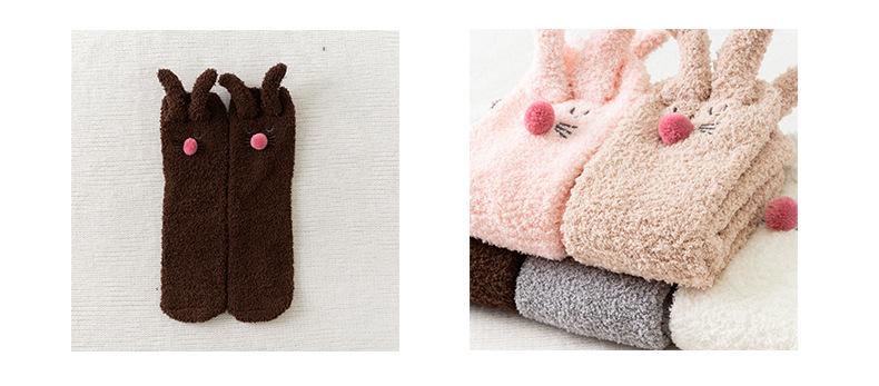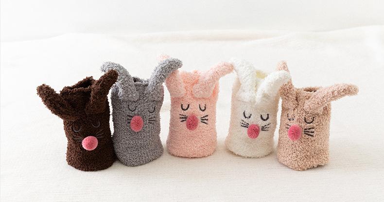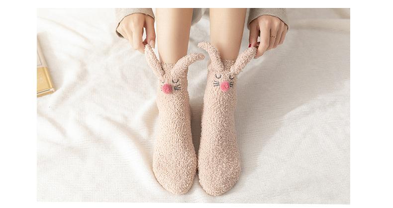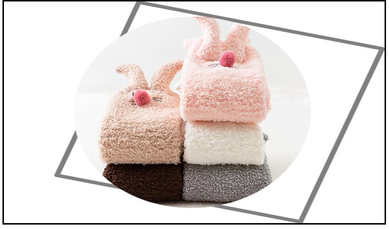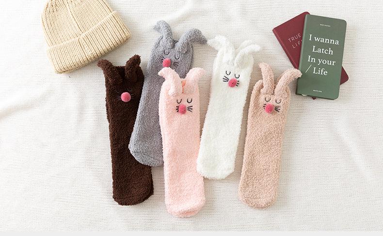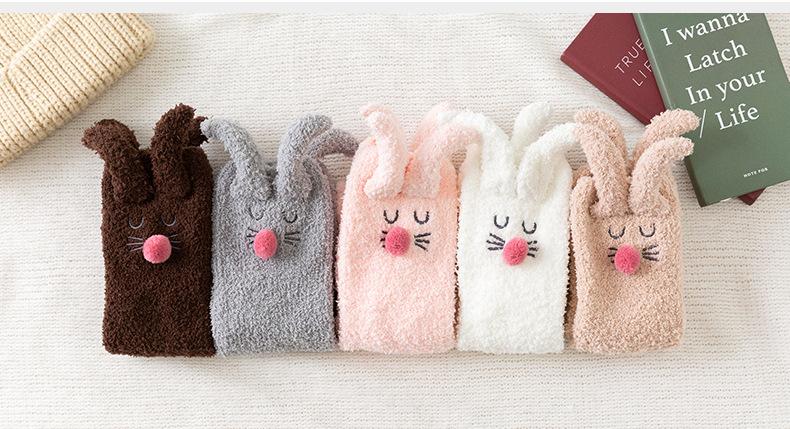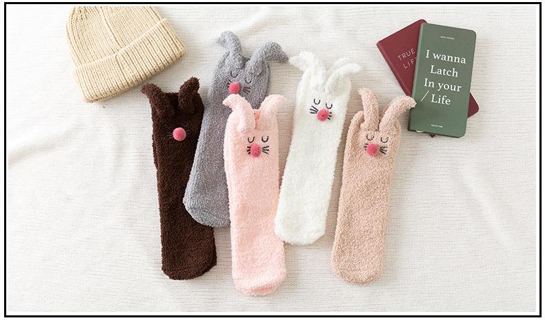 Calcetines para dormir de otoño e invierno, nuevos calcetines japoneses tridimensionales de terciopelo coral con orejas de conejo, calcetines de piso de medio terciopelo para el hogar para niñas, fabricantes