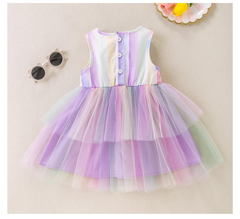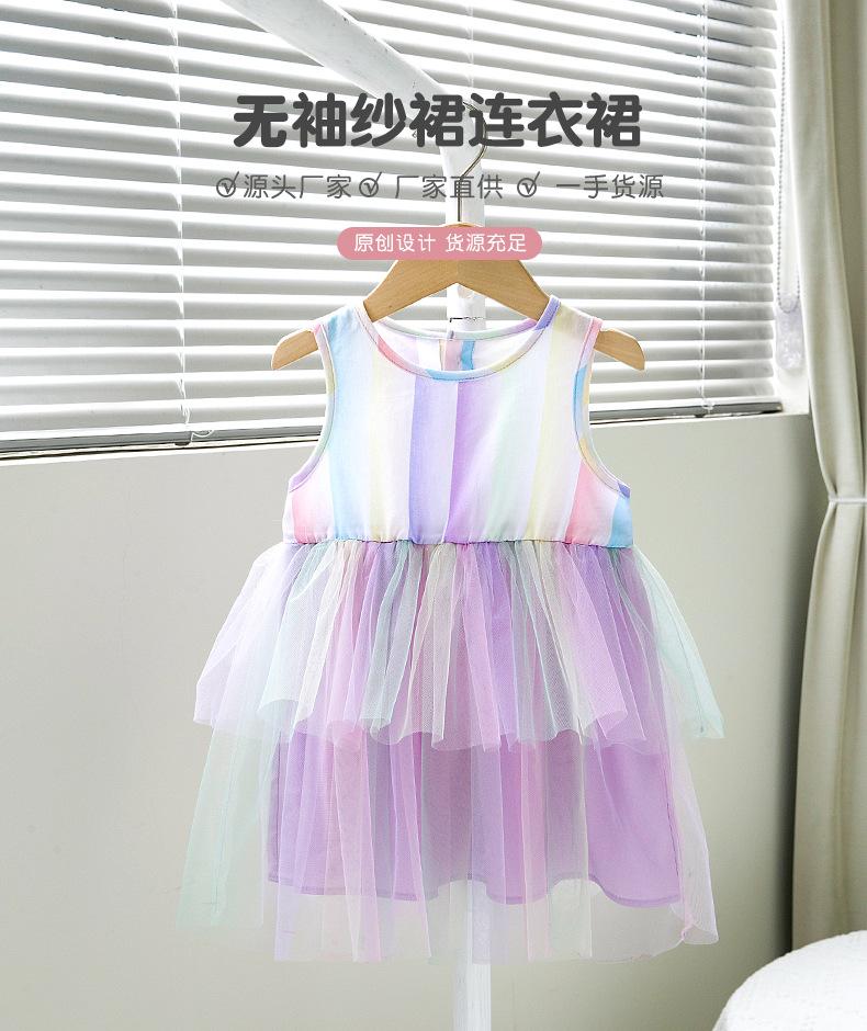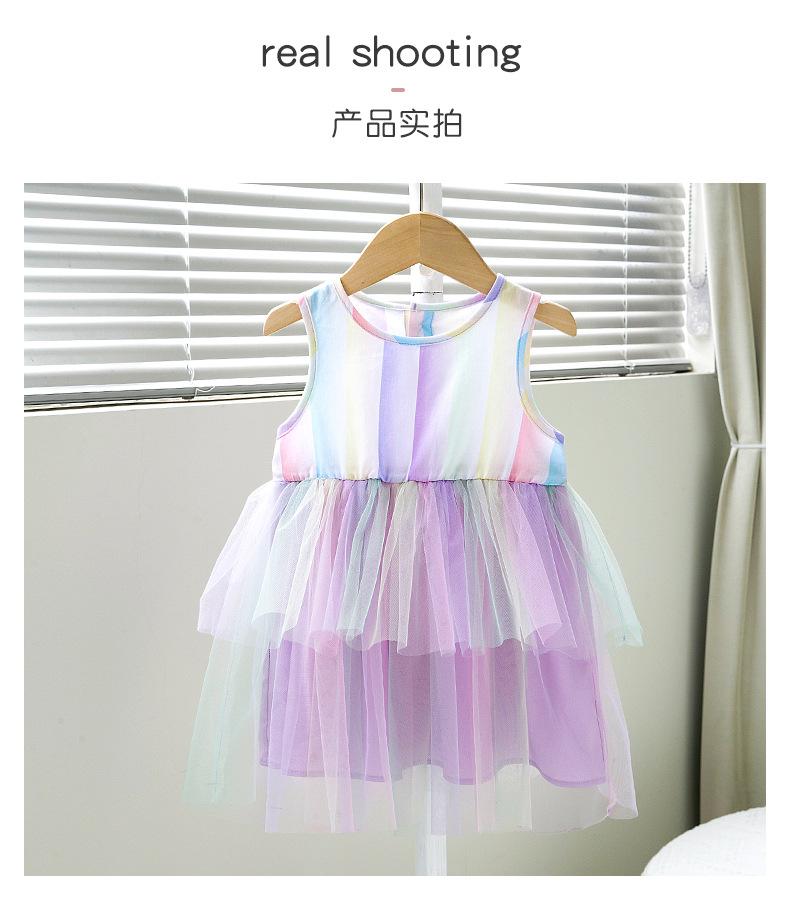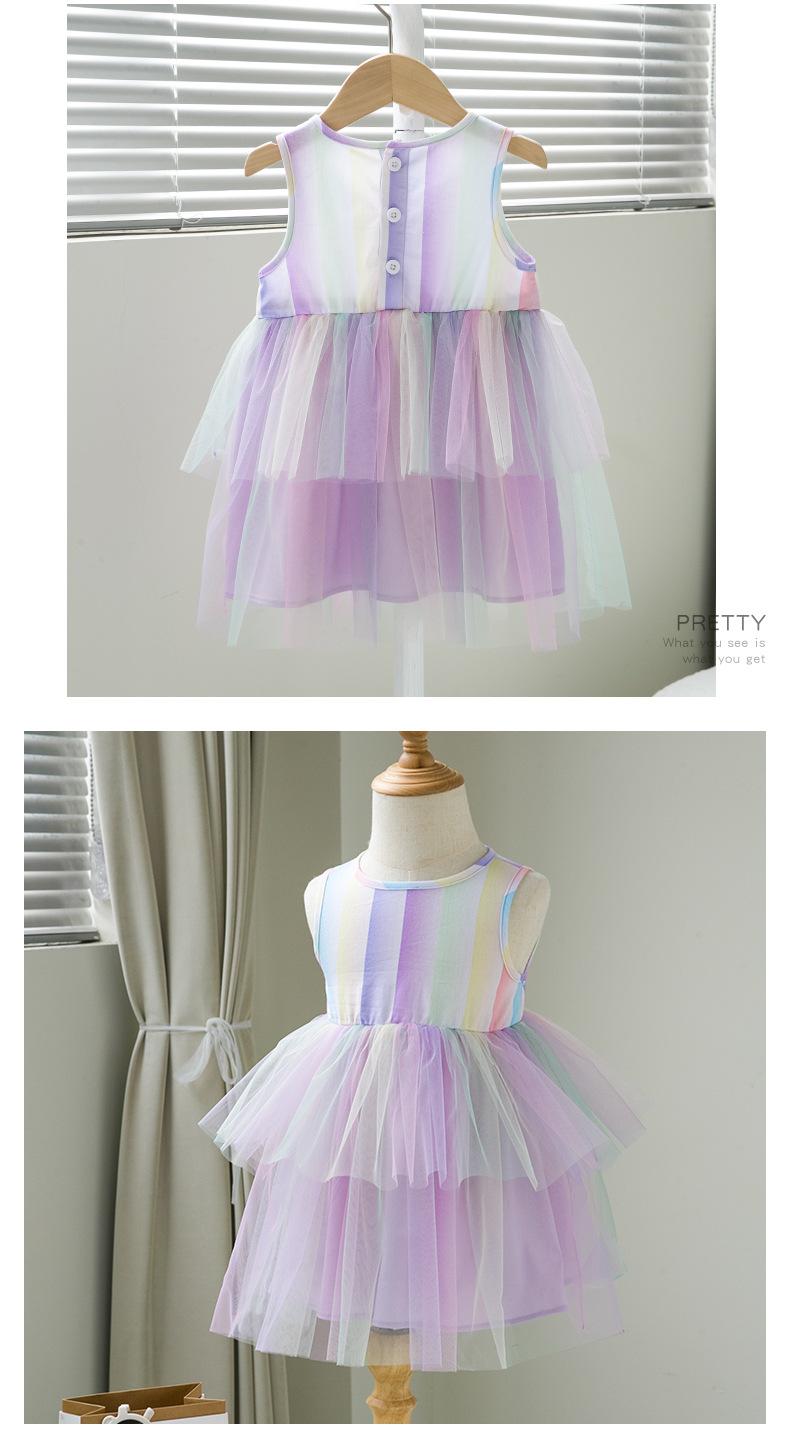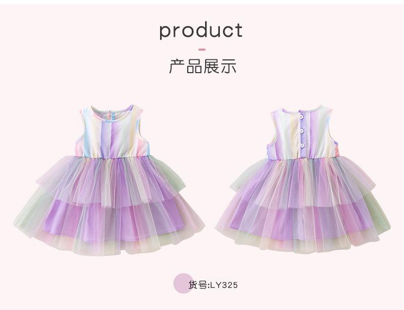Nuevo estilo de moda para niñas, lindo vestido para bebés, ropa de primavera y otoño, falda de malla con tirantes a la moda.