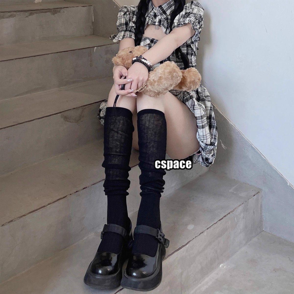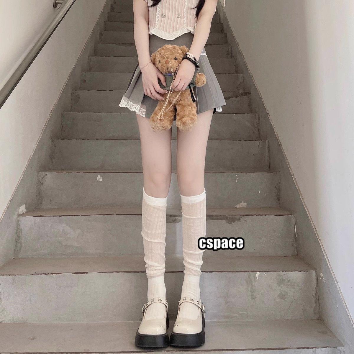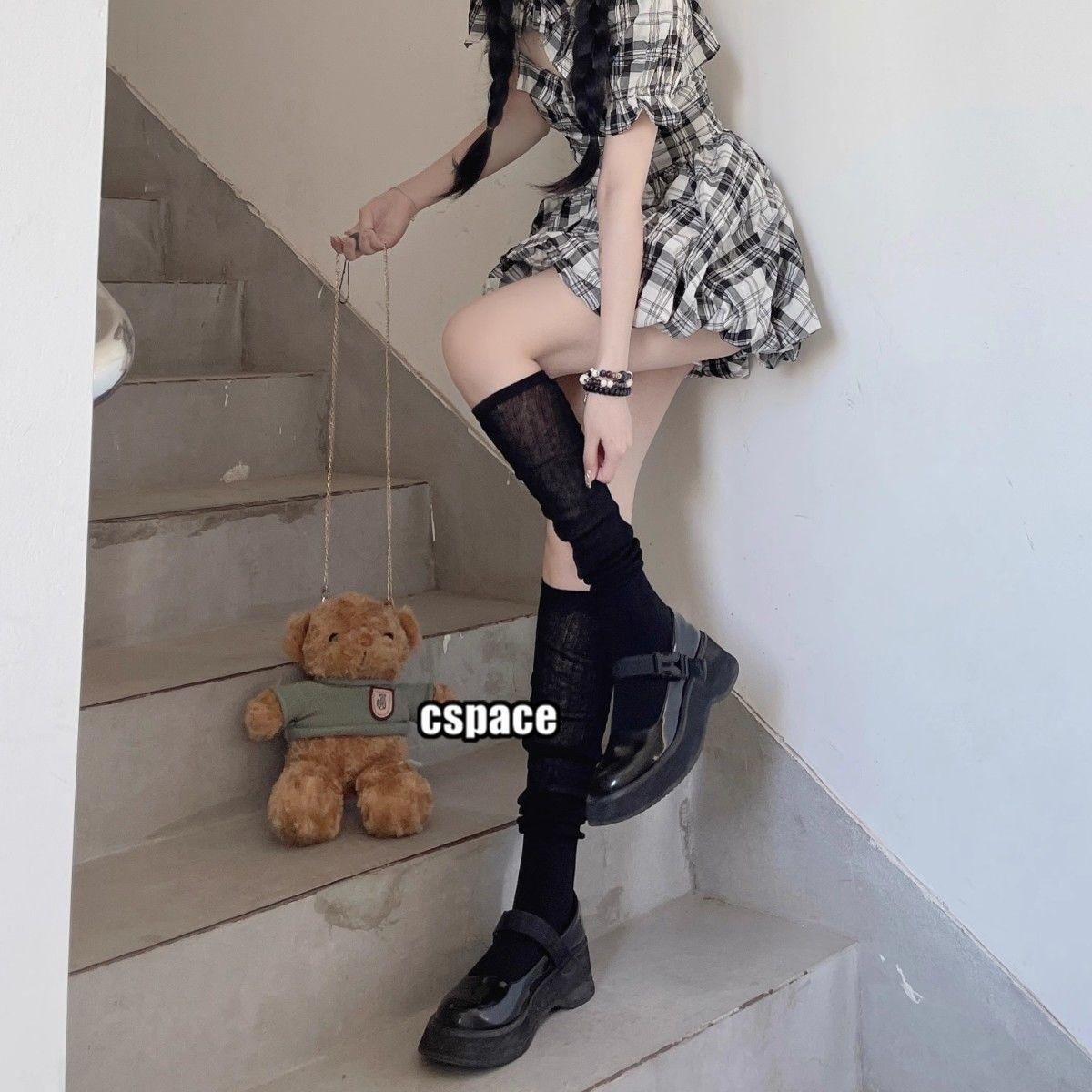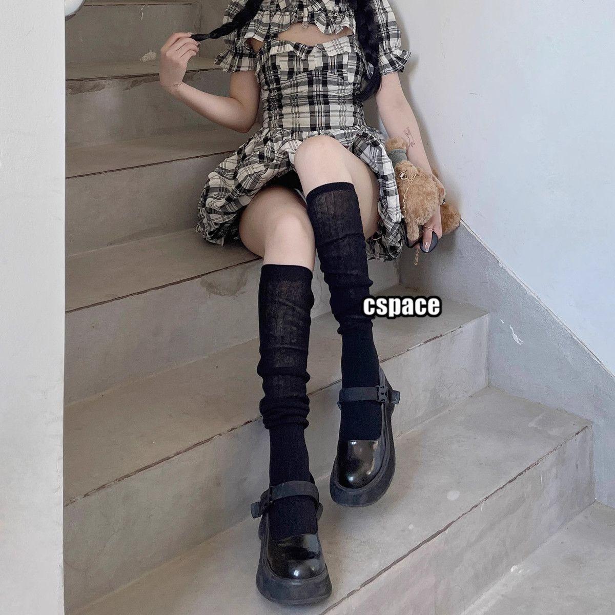 Calcetines cortos de algodón para mujer, calcetines apilados con costuras, estilo japonés, botas, calcetines, calcetines hasta la rodilla con costuras Lolita.
