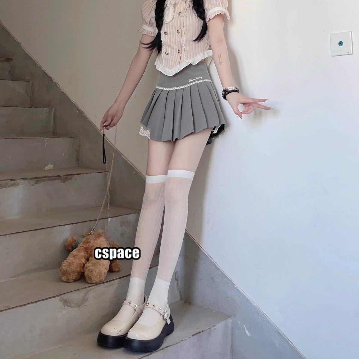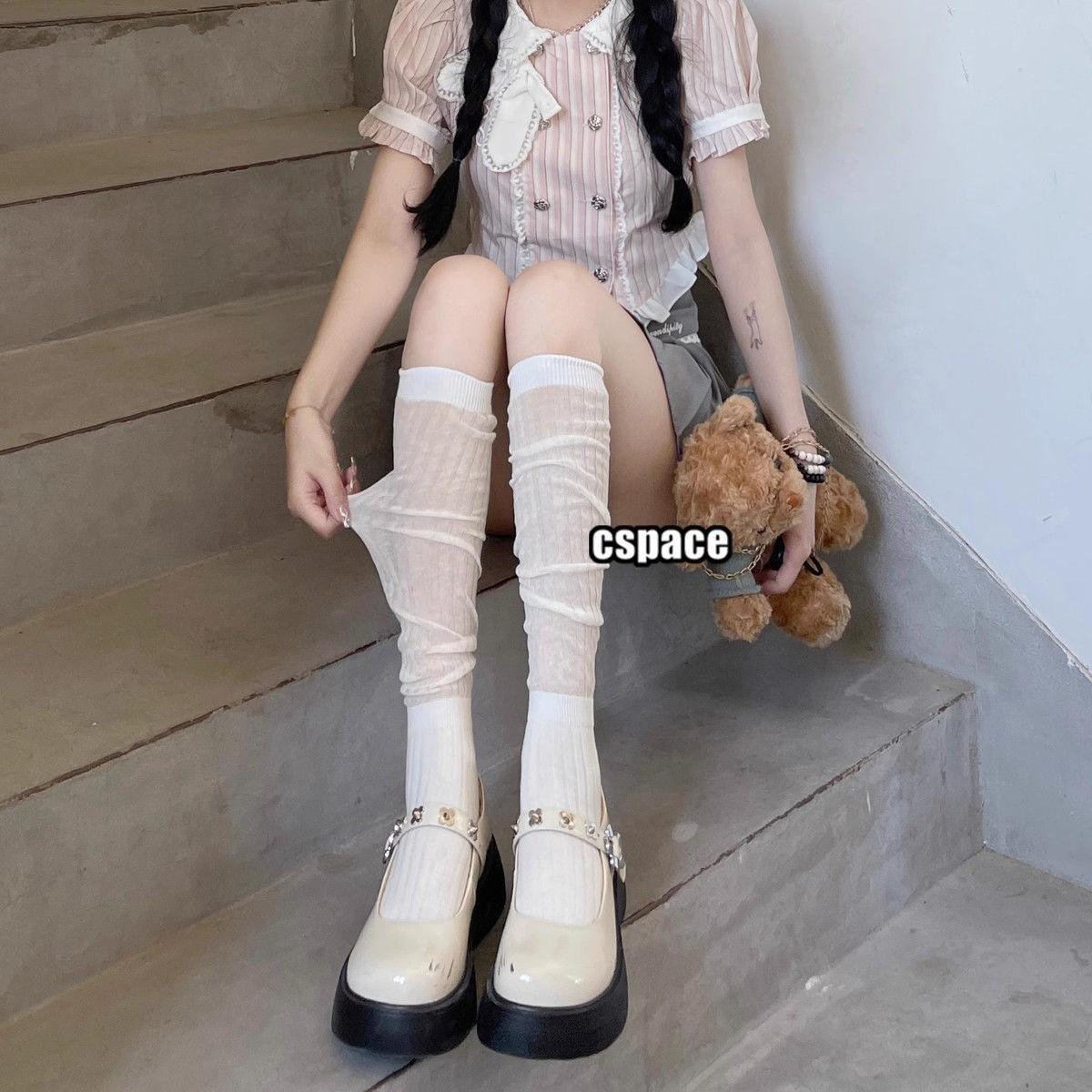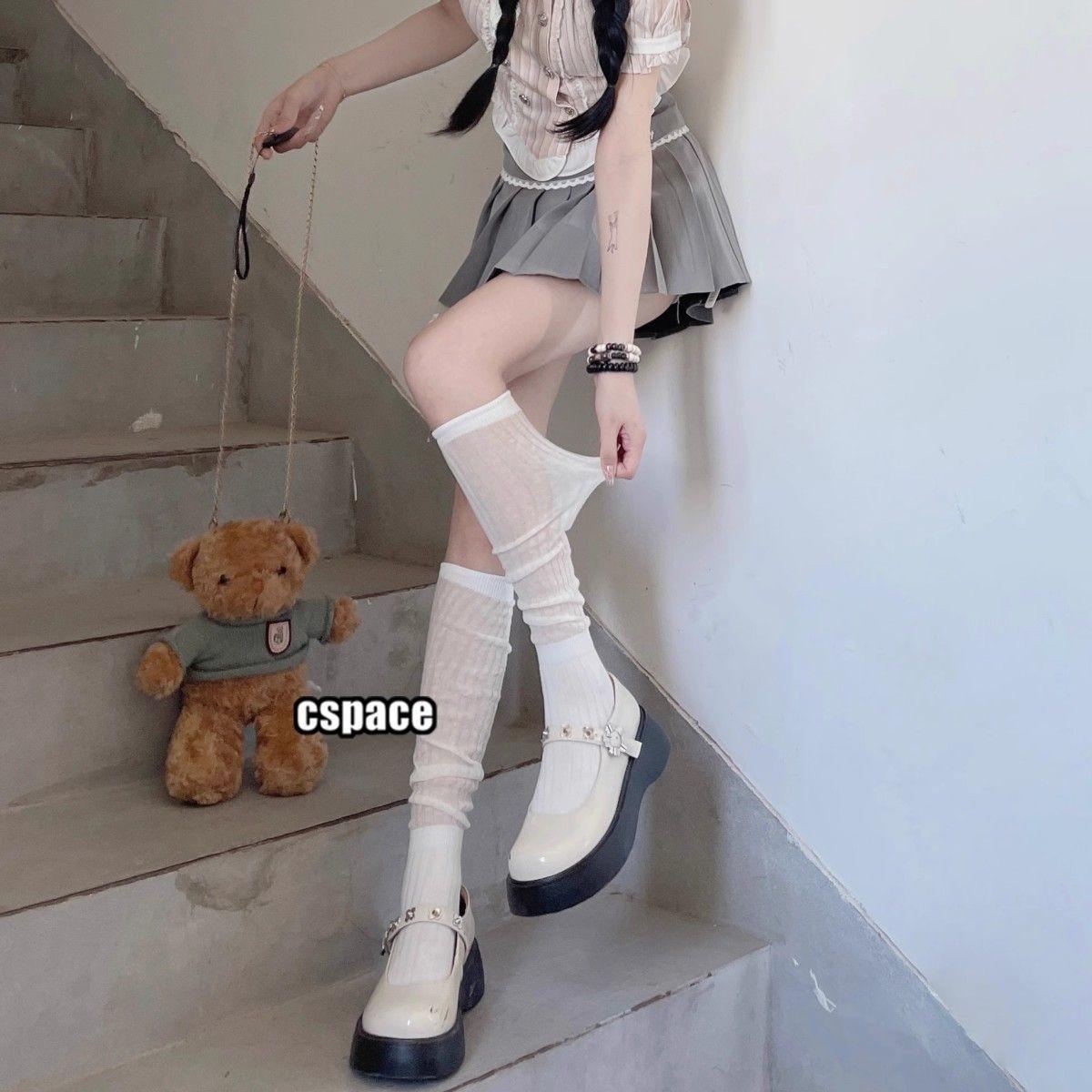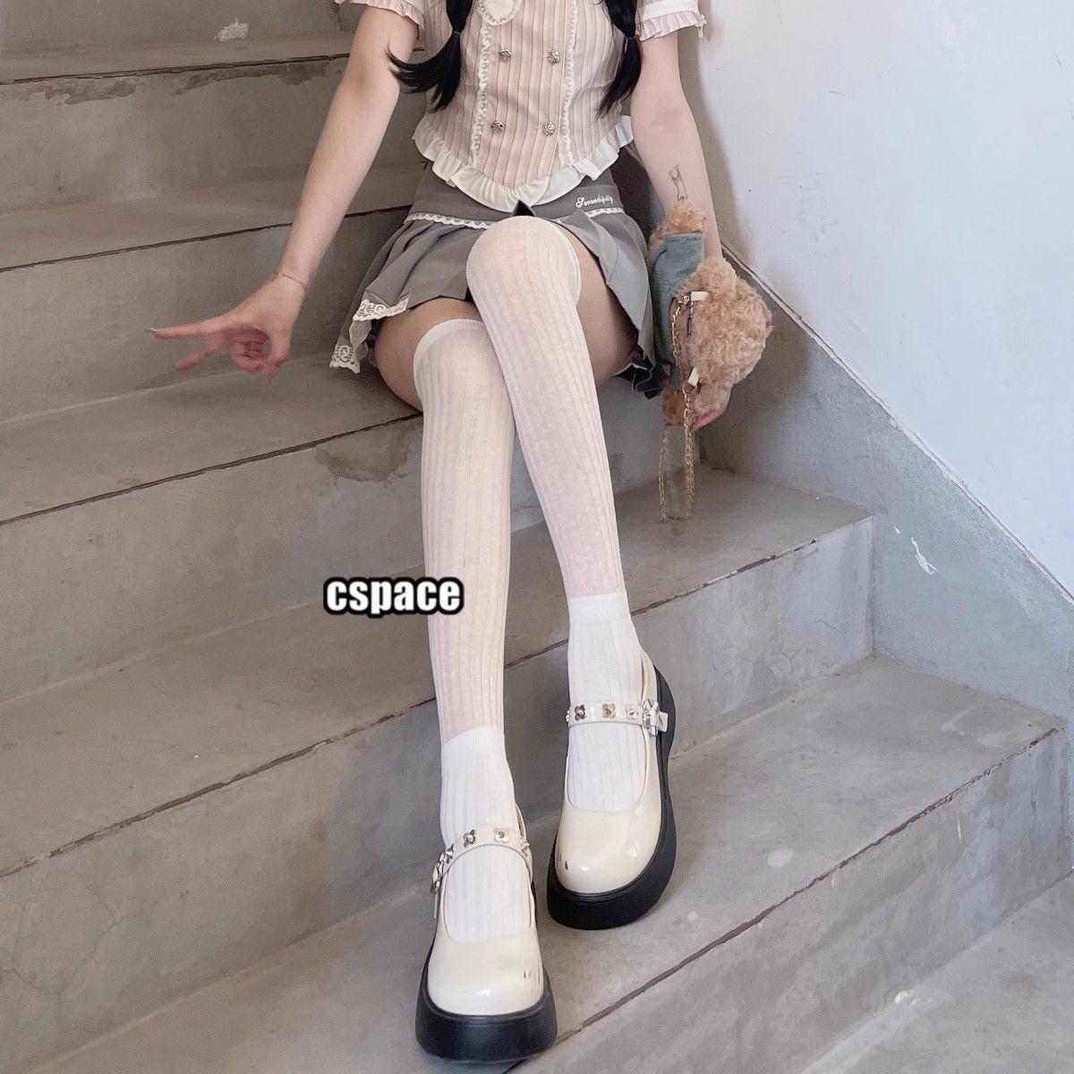 Calcetines cortos de algodón para mujer, calcetines apilados con costuras, estilo japonés, botas, calcetines, calcetines hasta la rodilla con costuras Lolita.