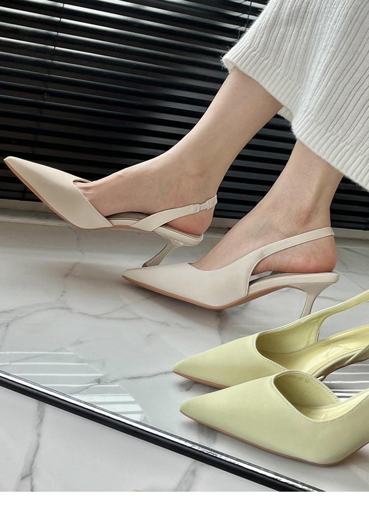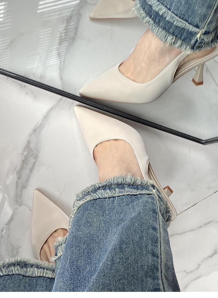 Sandalias Baotou de Estilo Francés para Mujer Verano 2025 Nuevos Tacones Altos Elegantes con Falda Zapatos Stiletto de Punta