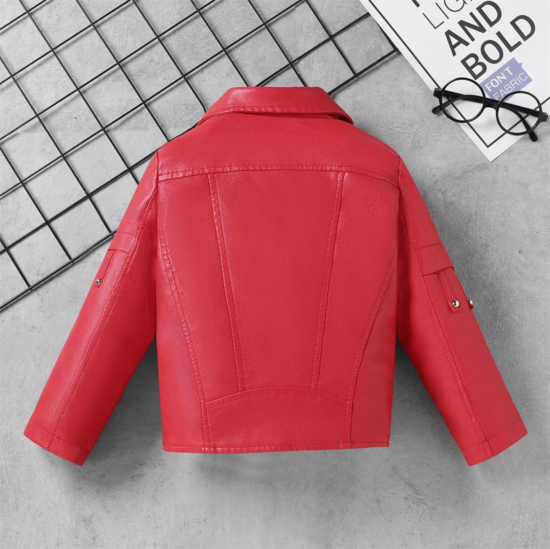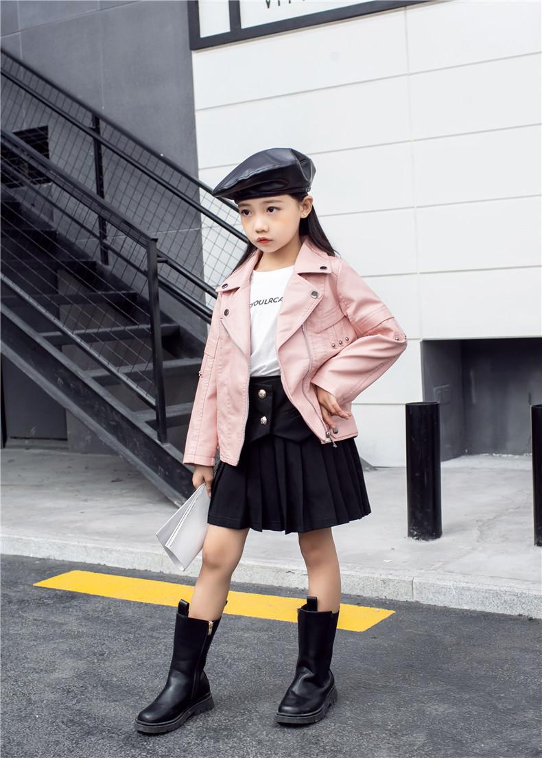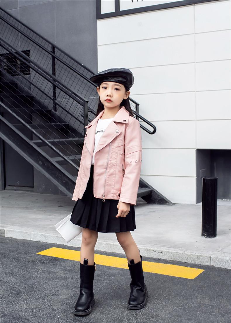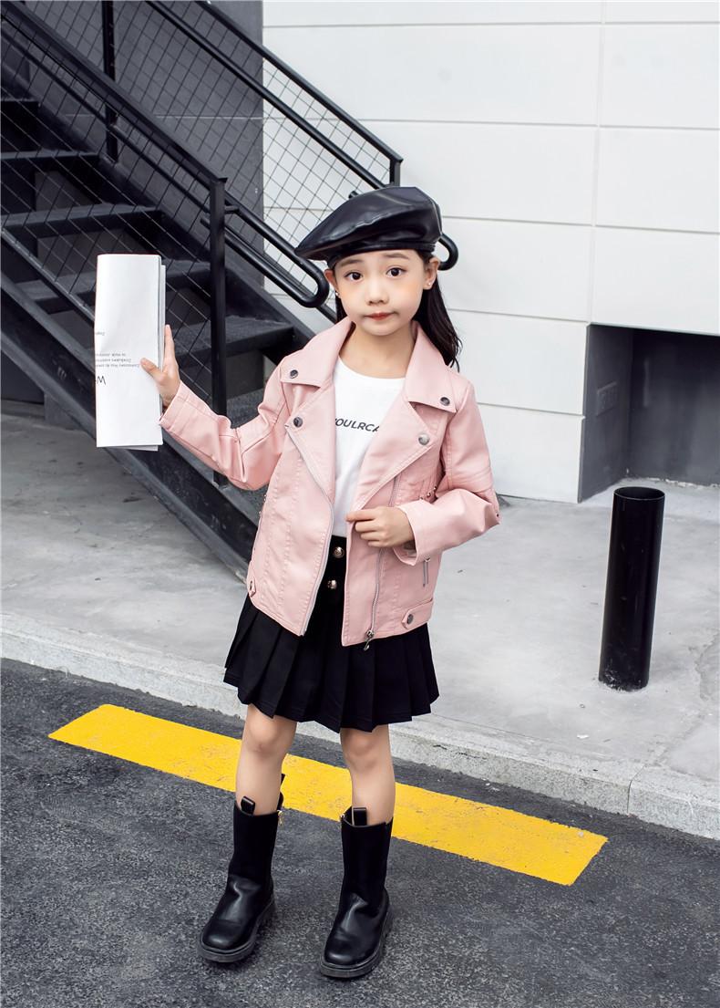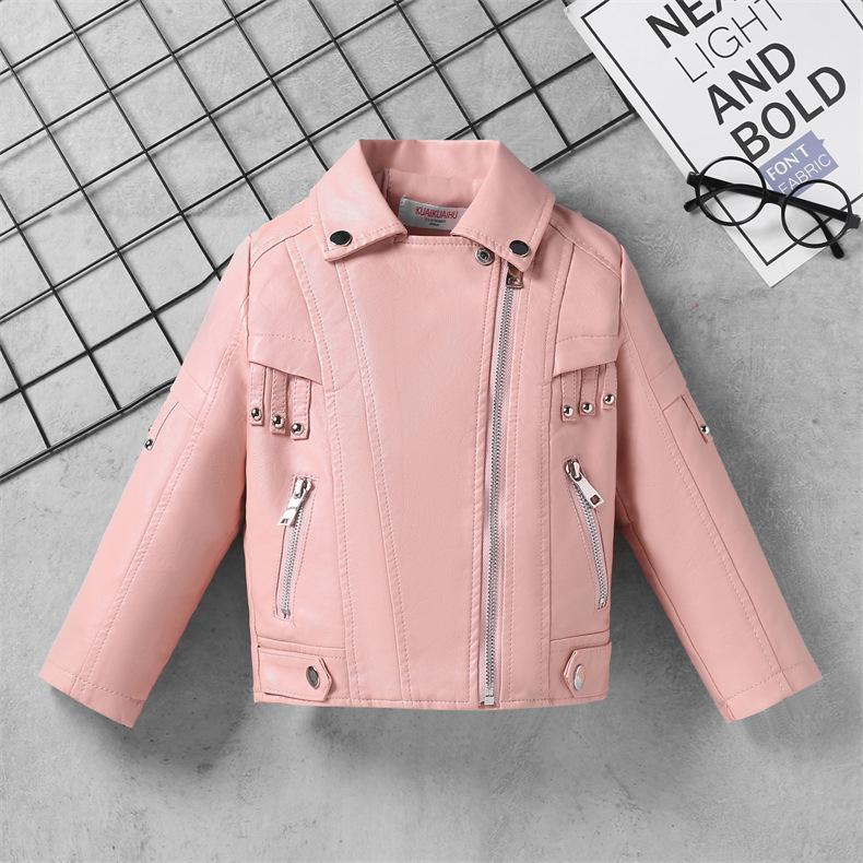 Ropa infantil para niñas, cuero de motocicleta, abrigo infantil 2025 primavera y otoño nuevo versión coreana de chaqueta de cuero infantil, ventas directas de fábrica