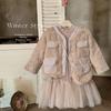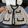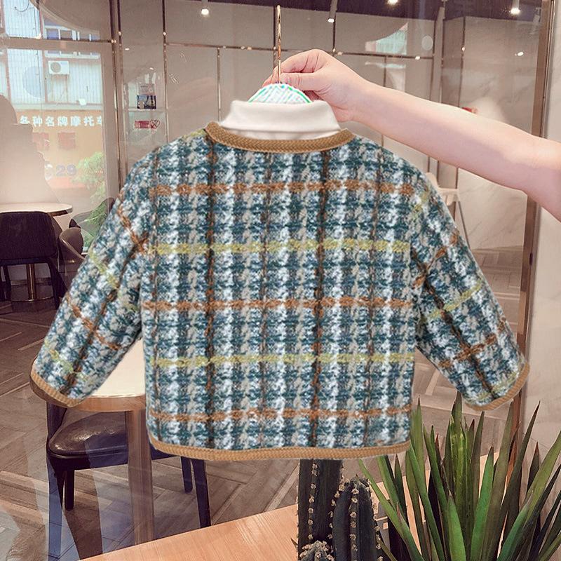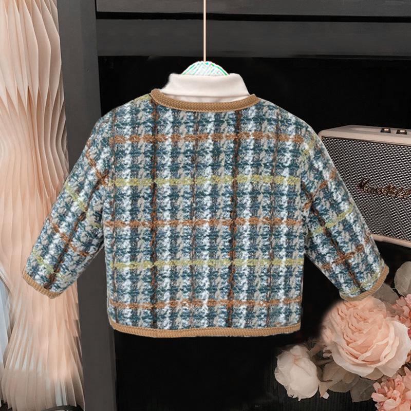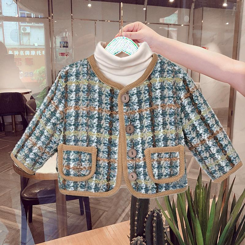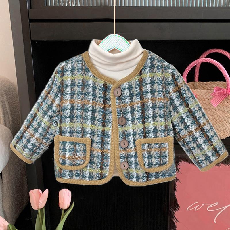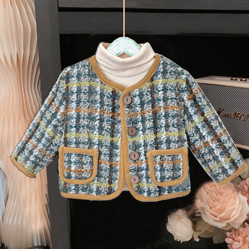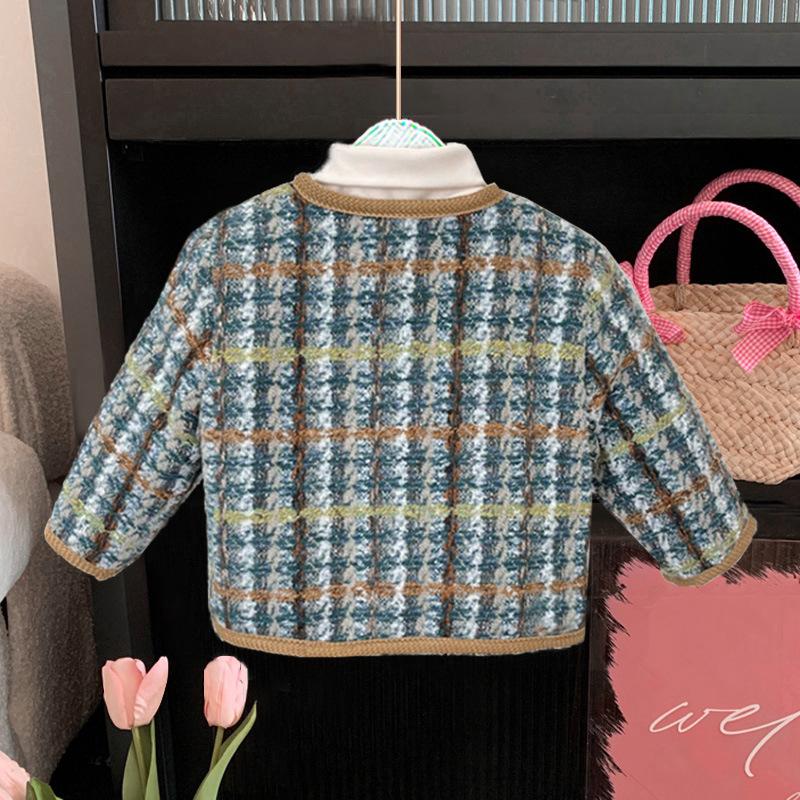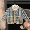 Chaqueta a cuadros estilo occidental con cuello redondo para niños, otoño e invierno 2023, estilo coreano, abrigo estilo Chanel para niñas.