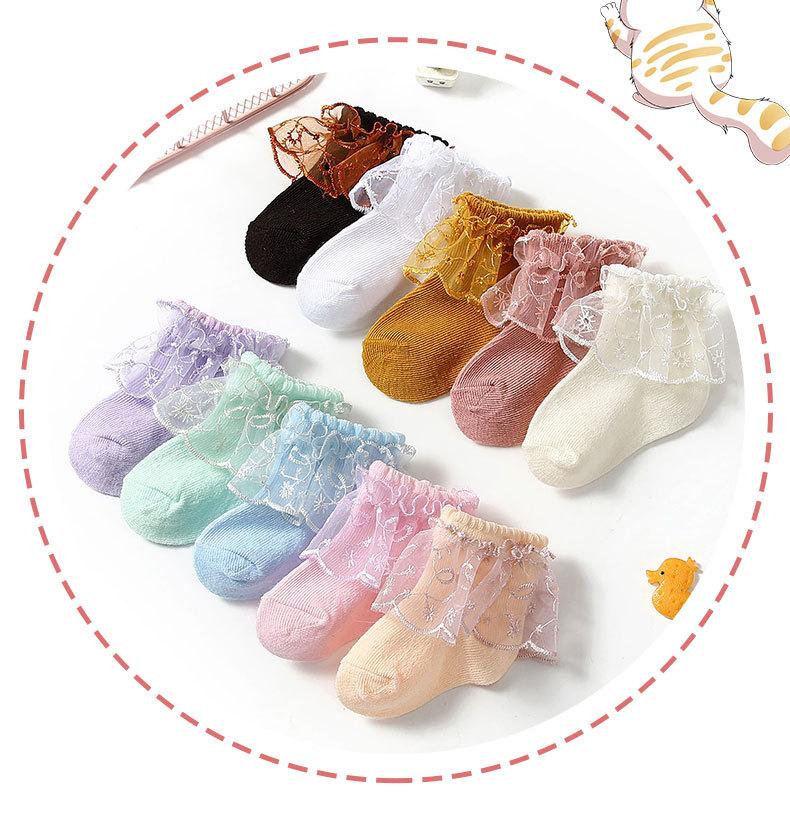 Compra Calcetines bonitos de bebé, calcetines de encaje a la moda para niños, calcetines finos de algodón de verano, calcetines de malla transpirables de princesa dulce al por mayor en Joom.pro