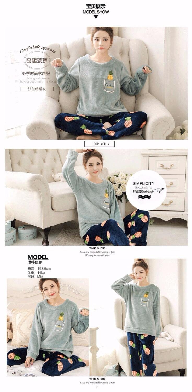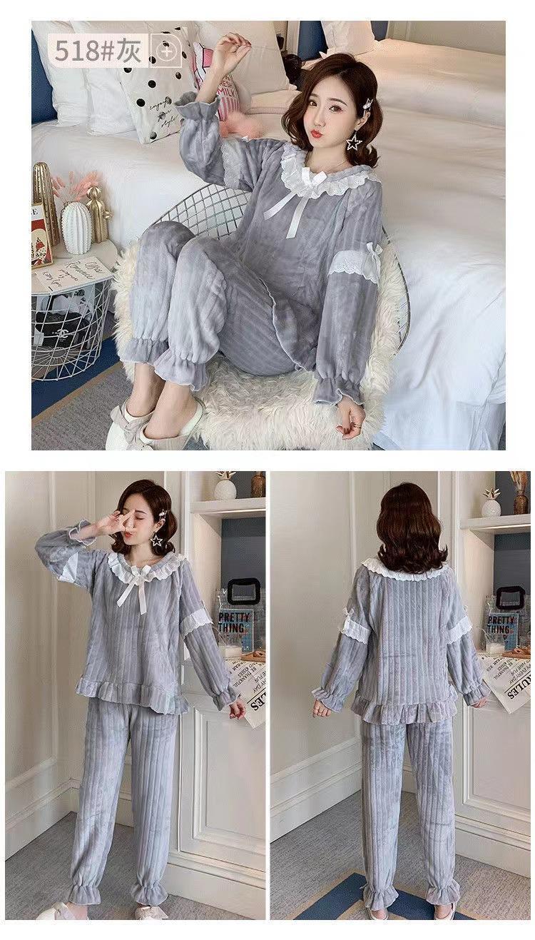 Pijama de lana coral de otoño e invierno para mujer, de franela gruesa de lana de invierno, estilo princesa, para estudiantes, para el hogar, primavera y otoño.