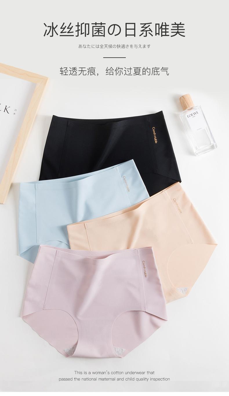 Ropa interior para mujer de seda de hielo sin costuras de cintura media con entrepierna antibacteriana de algodón puro, linda para niña, transpirable, control de abdomen, levanta glúteos, briefs para mujer