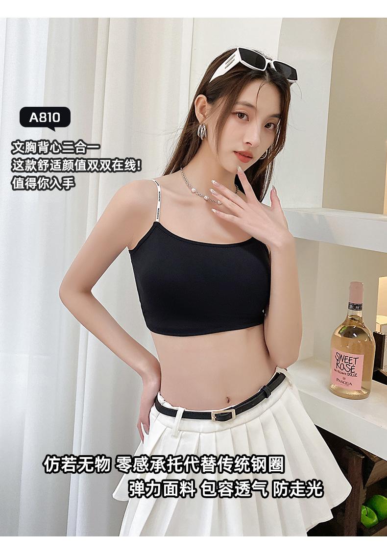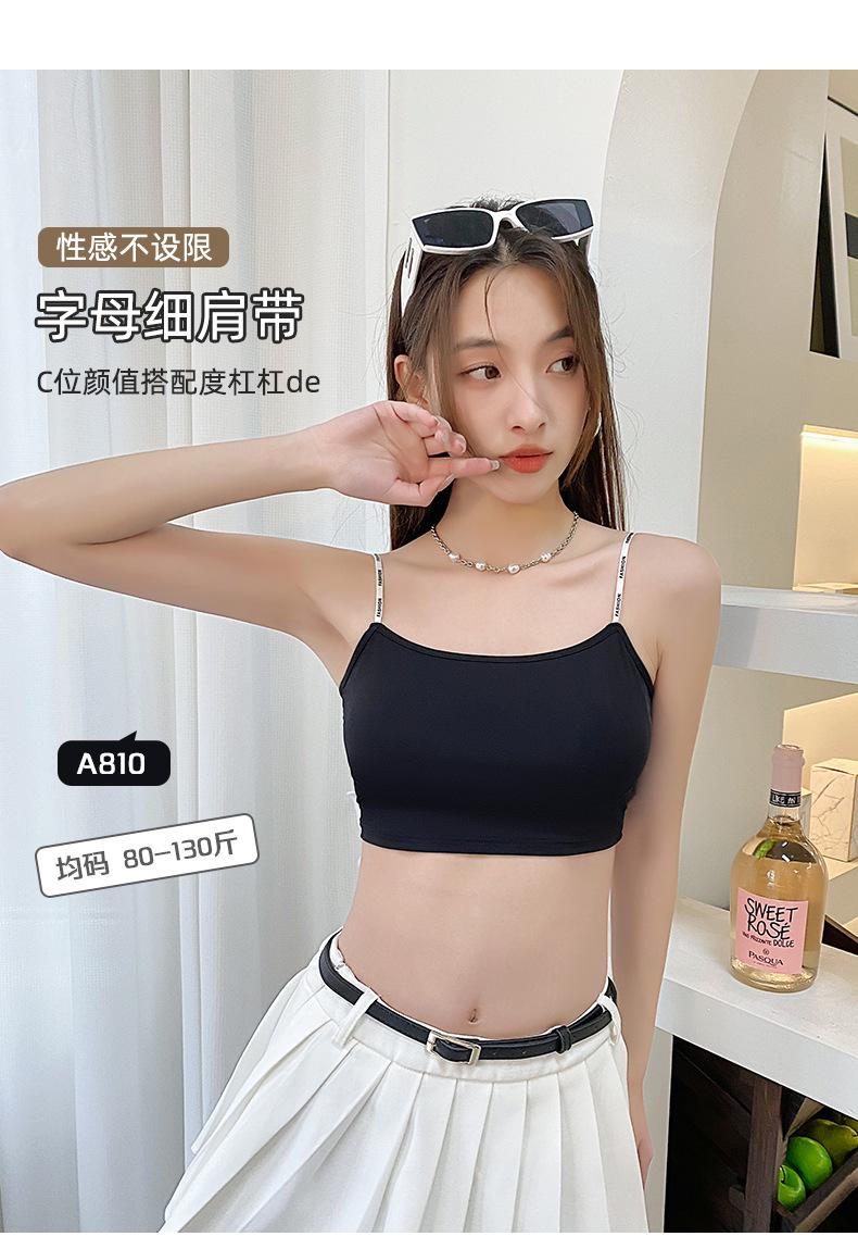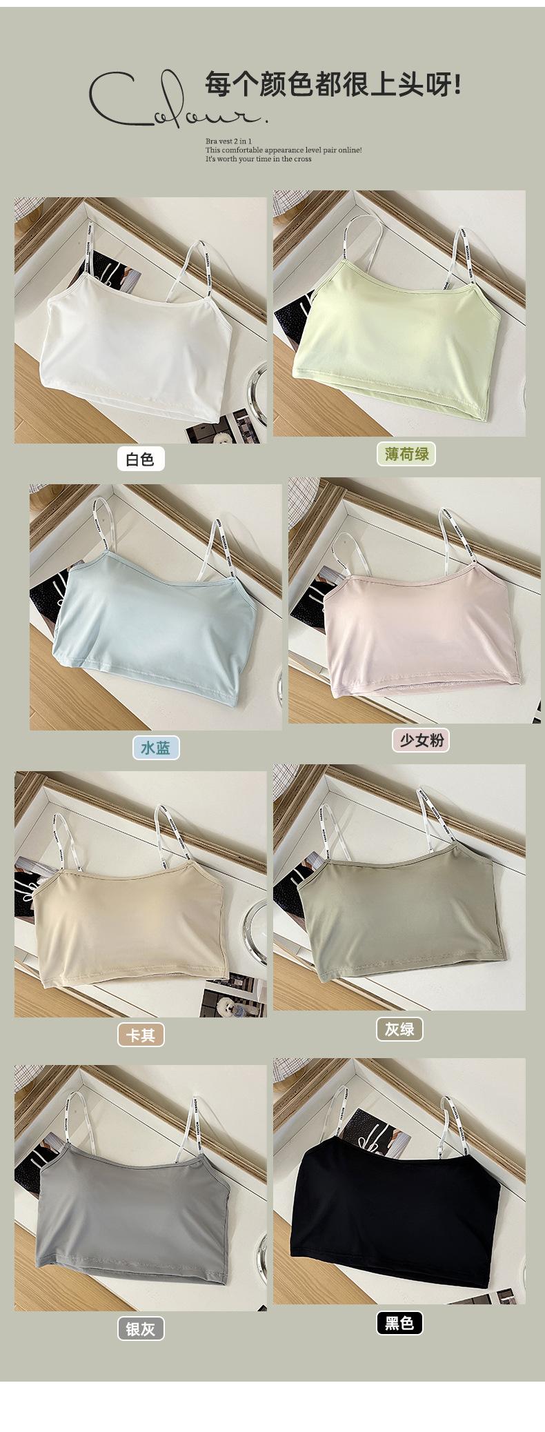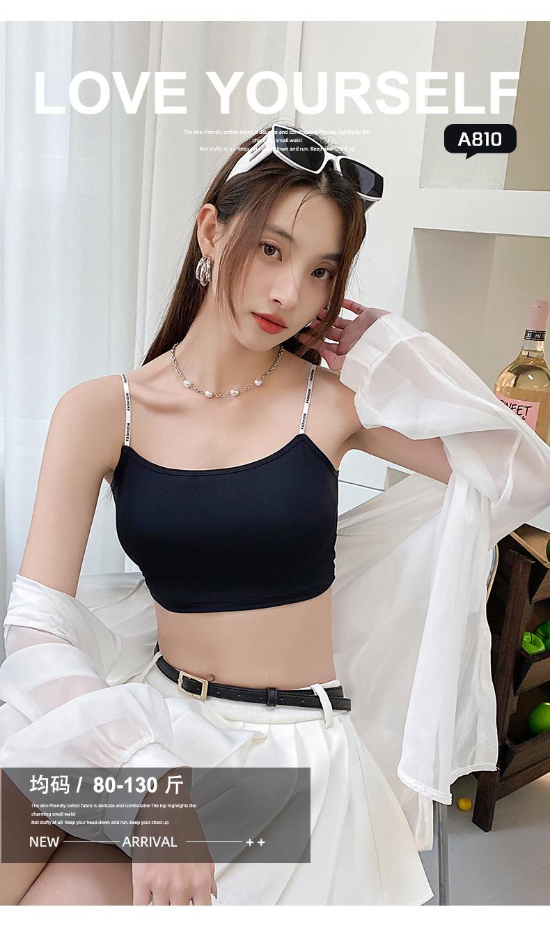 Chaleco de Verano para Mujer Viene con Almohadilla en el Pecho Corto Combinable Ropa Exterior Base Tirante Pequeño Seda de Hielo Moderno Hermoso Chaleco de Espalda