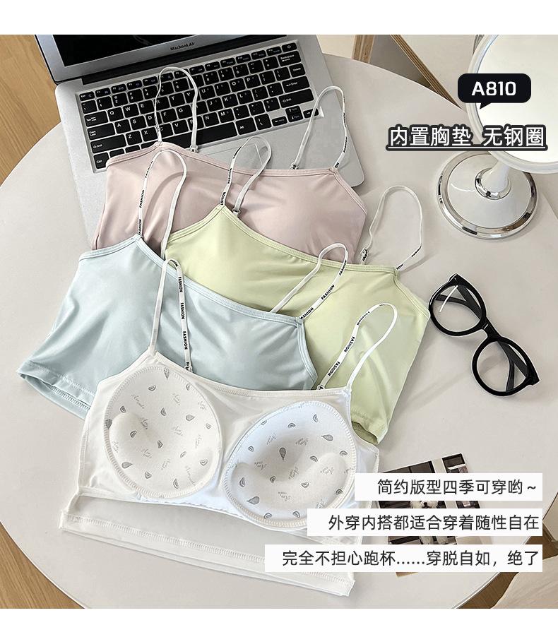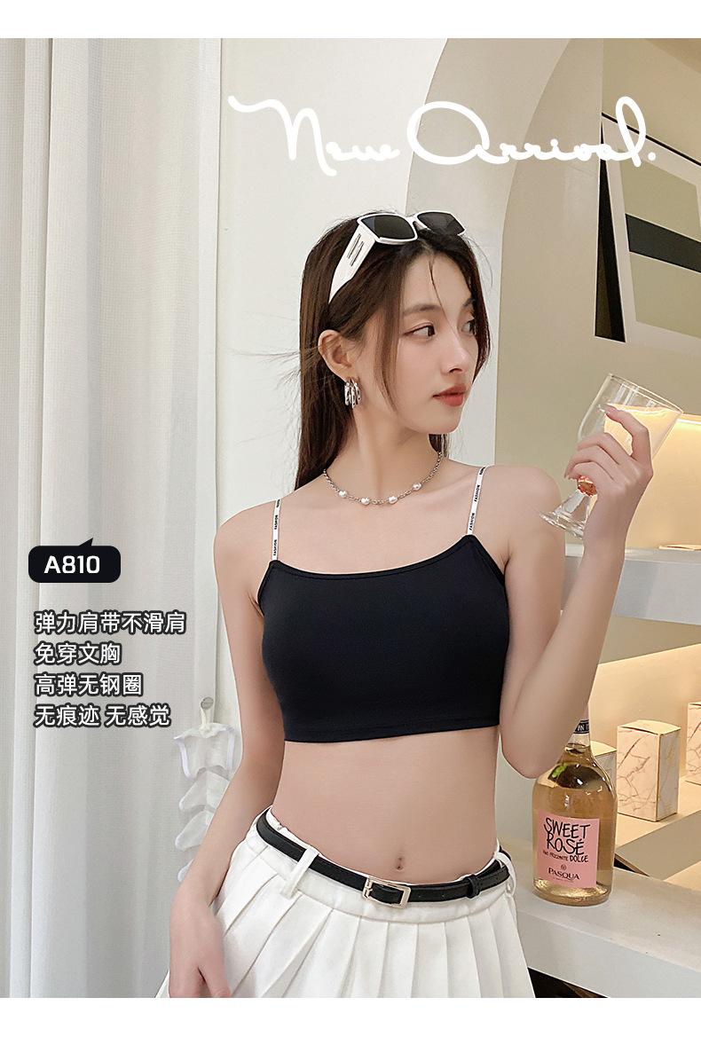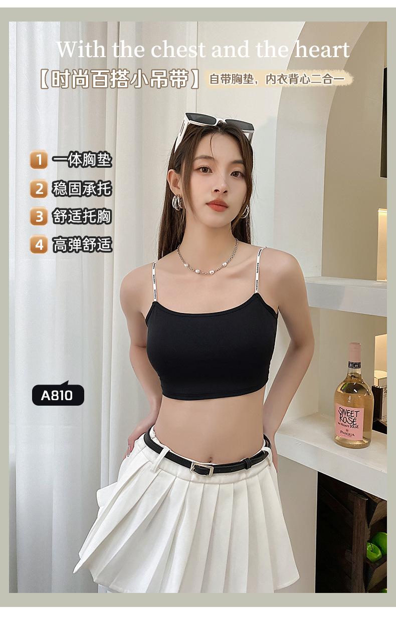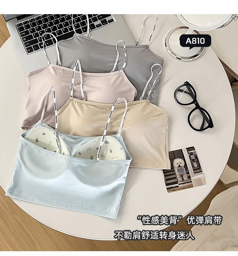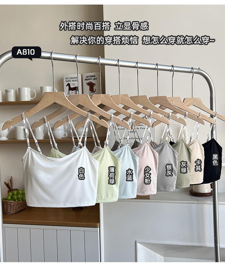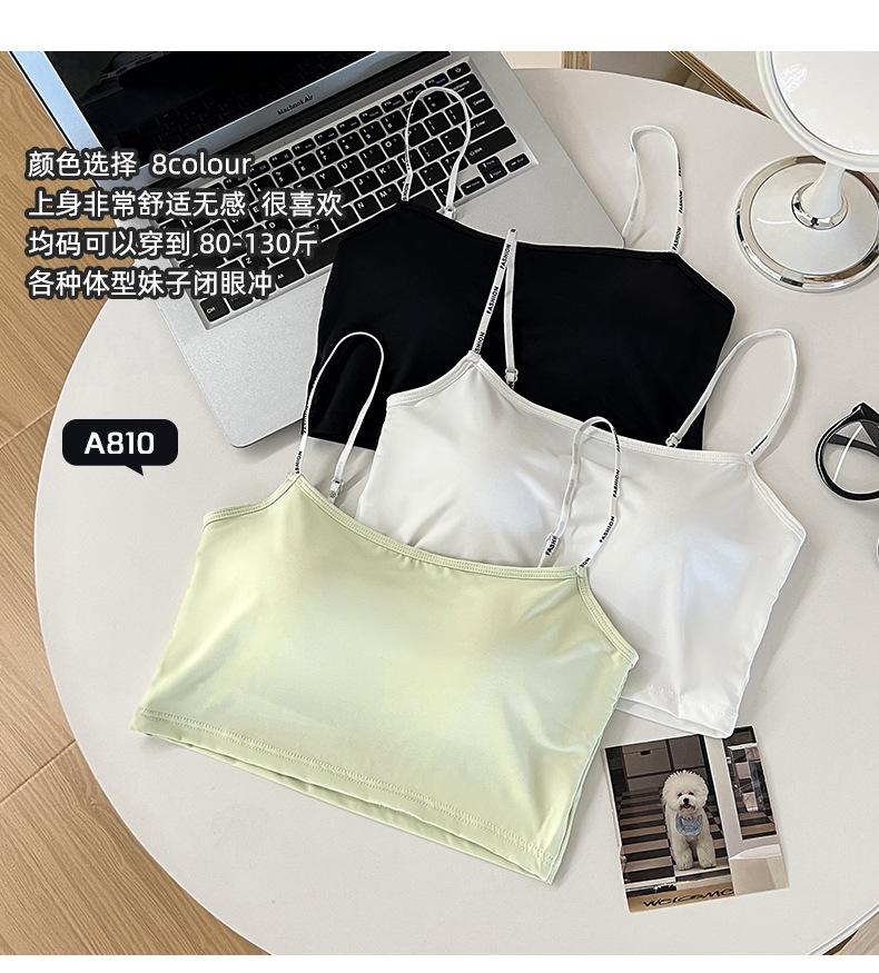 Chaleco de Verano para Mujer Viene con Almohadilla en el Pecho Corto Combinable Ropa Exterior Base Tirante Pequeño Seda de Hielo Moderno Hermoso Chaleco de Espalda