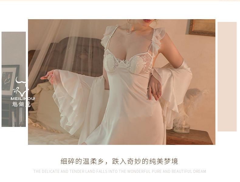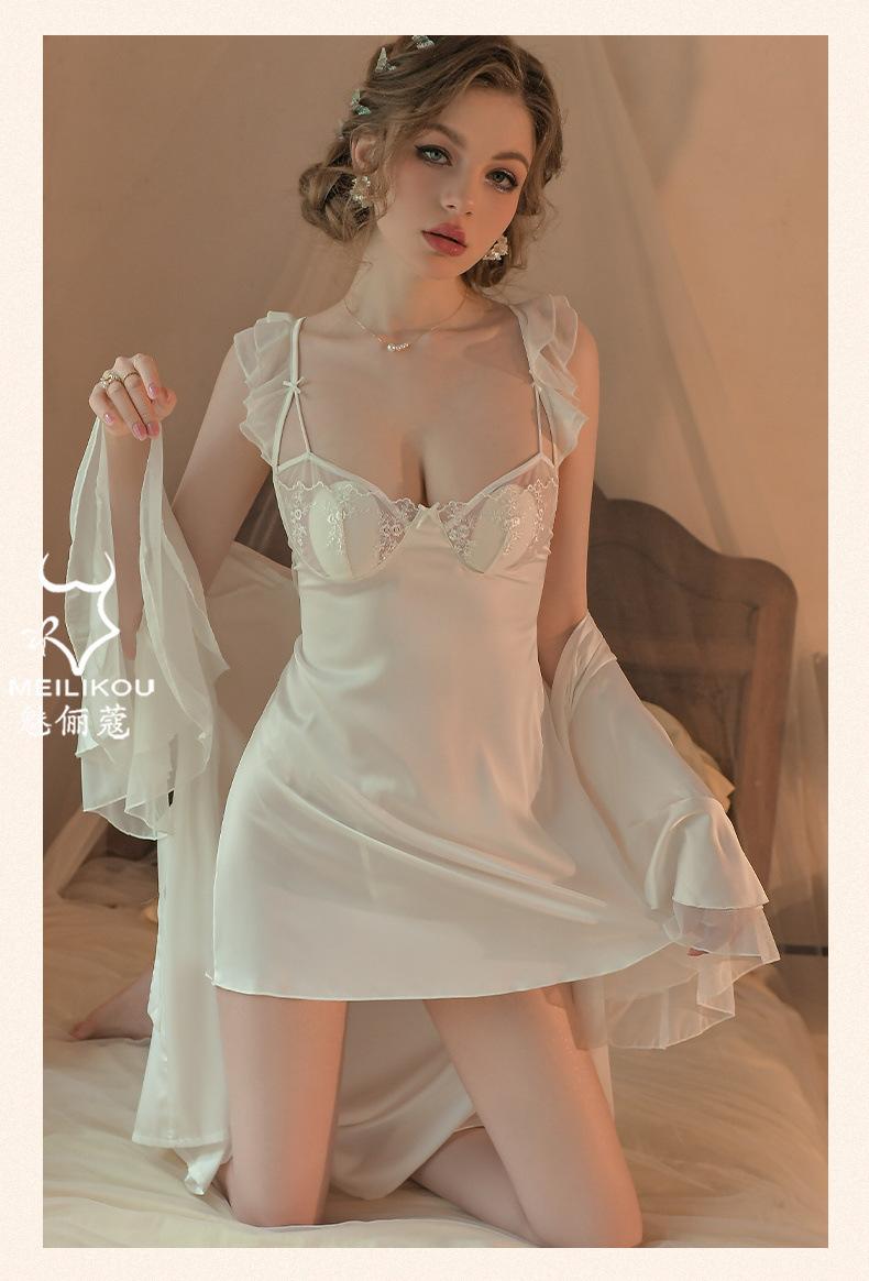 Nuevo pijama sexy para mujer, de seda fina con aro de acero y push up, camisón con tirantes de encaje de alta calidad.