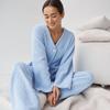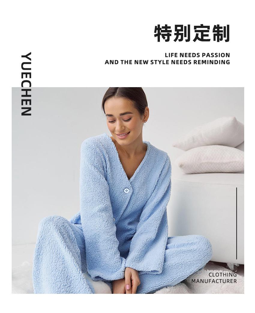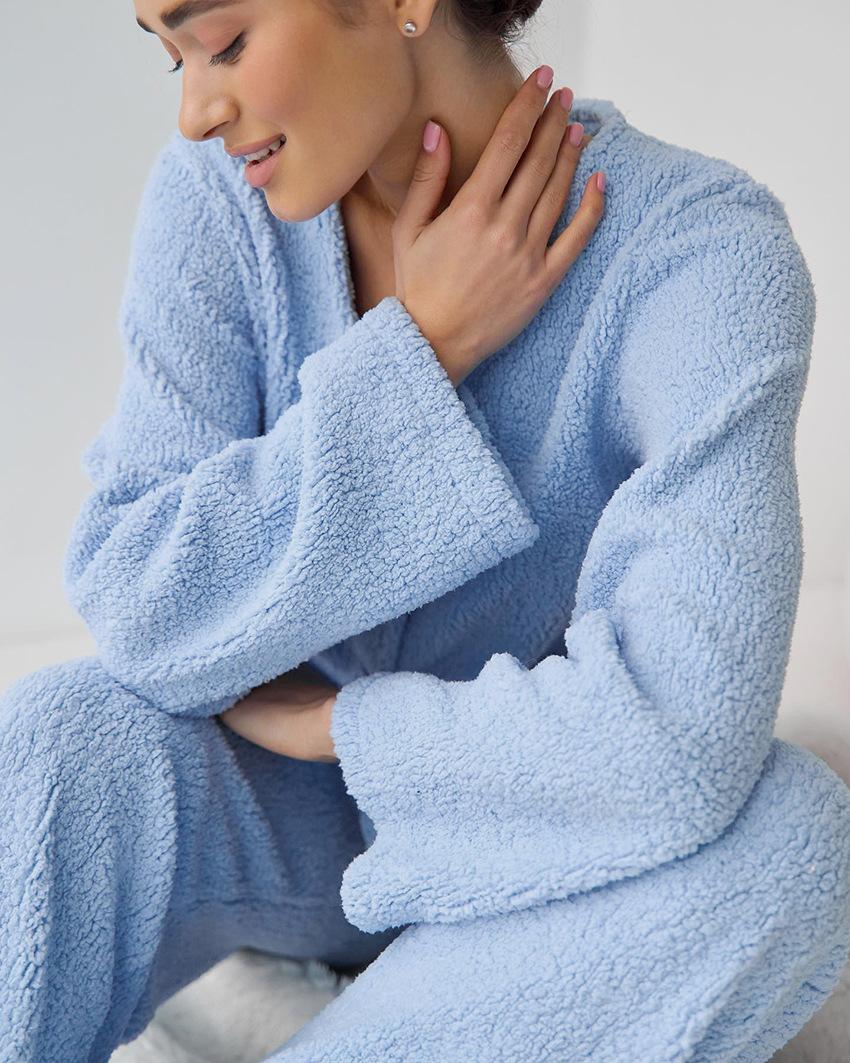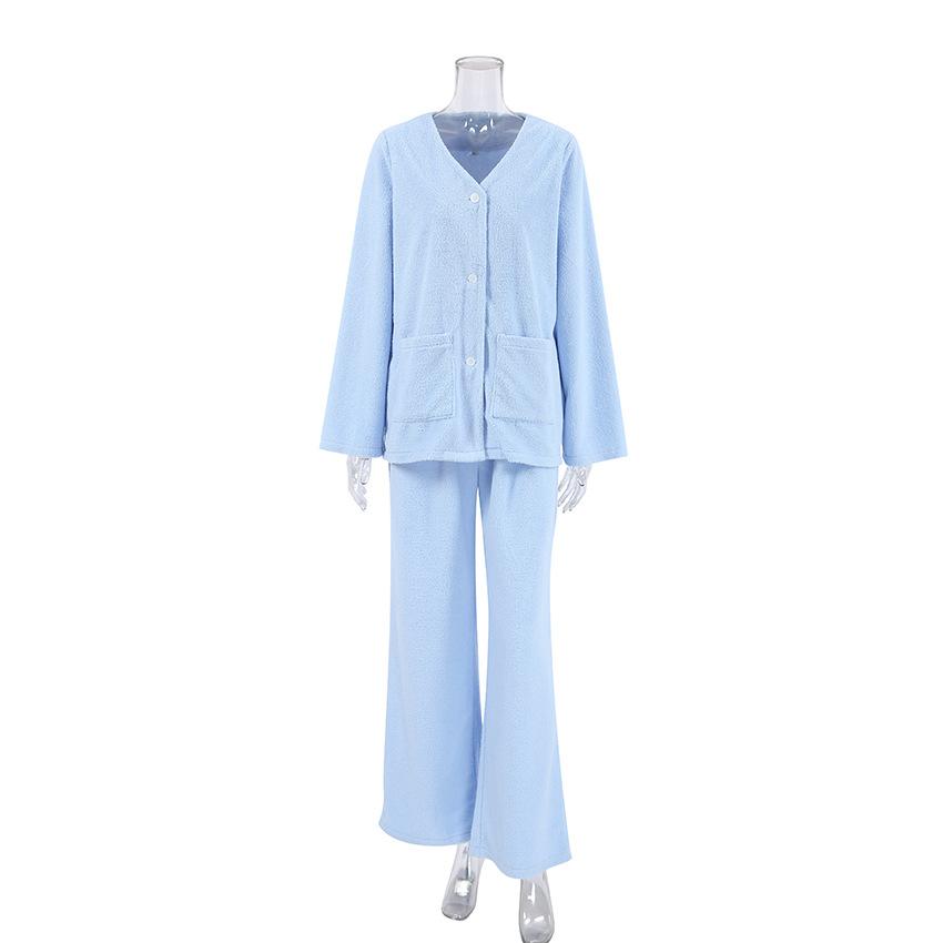 Pijama de dos piezas de manga larga holgado, cómodo y cálido, color azul, para otoño e invierno de 2023, venta al por mayor transfronteriza, para el hogar