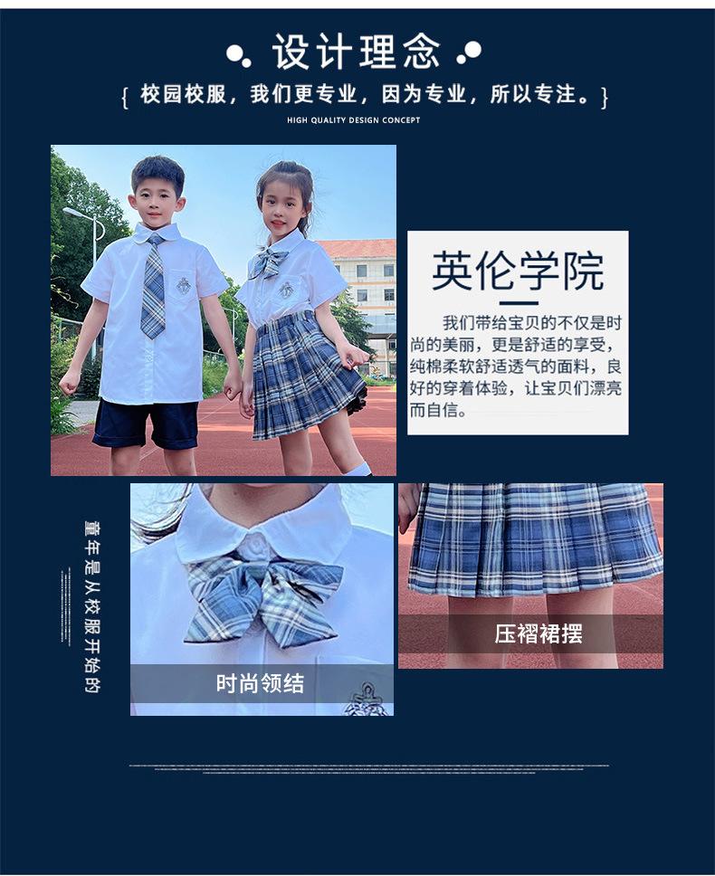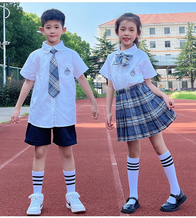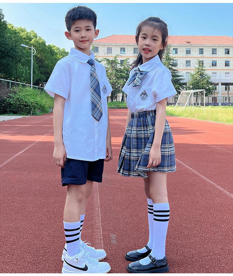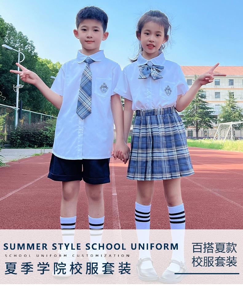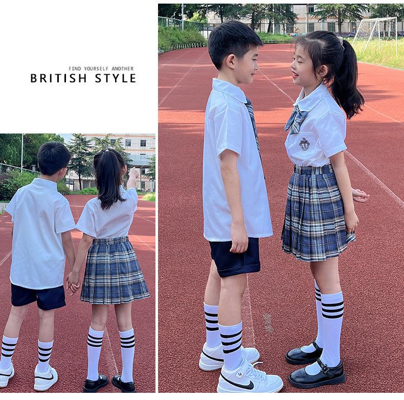 Traje de uniforme Jk de verano de manga corta estilo campus británico Uniforme de clase de jardín de infancia para estudiantes de primaria