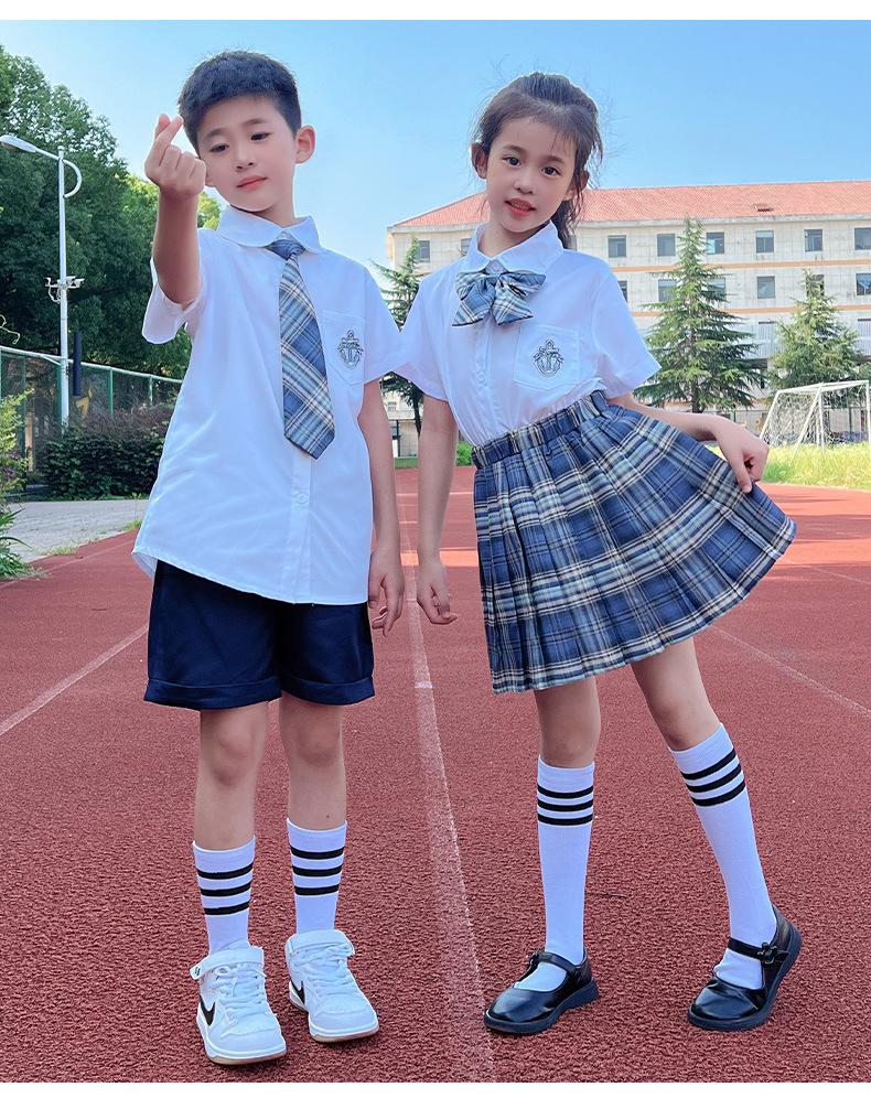 1001-1 girls model (short sleeves + skirt + bow tie), 1001-1 boys style (short sleeves + shorts + tie), 6606-d...