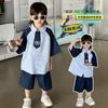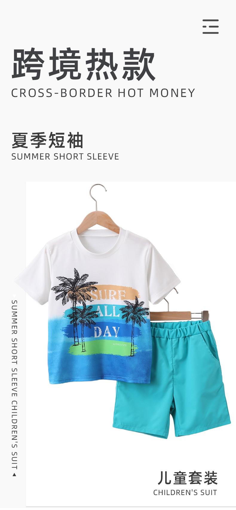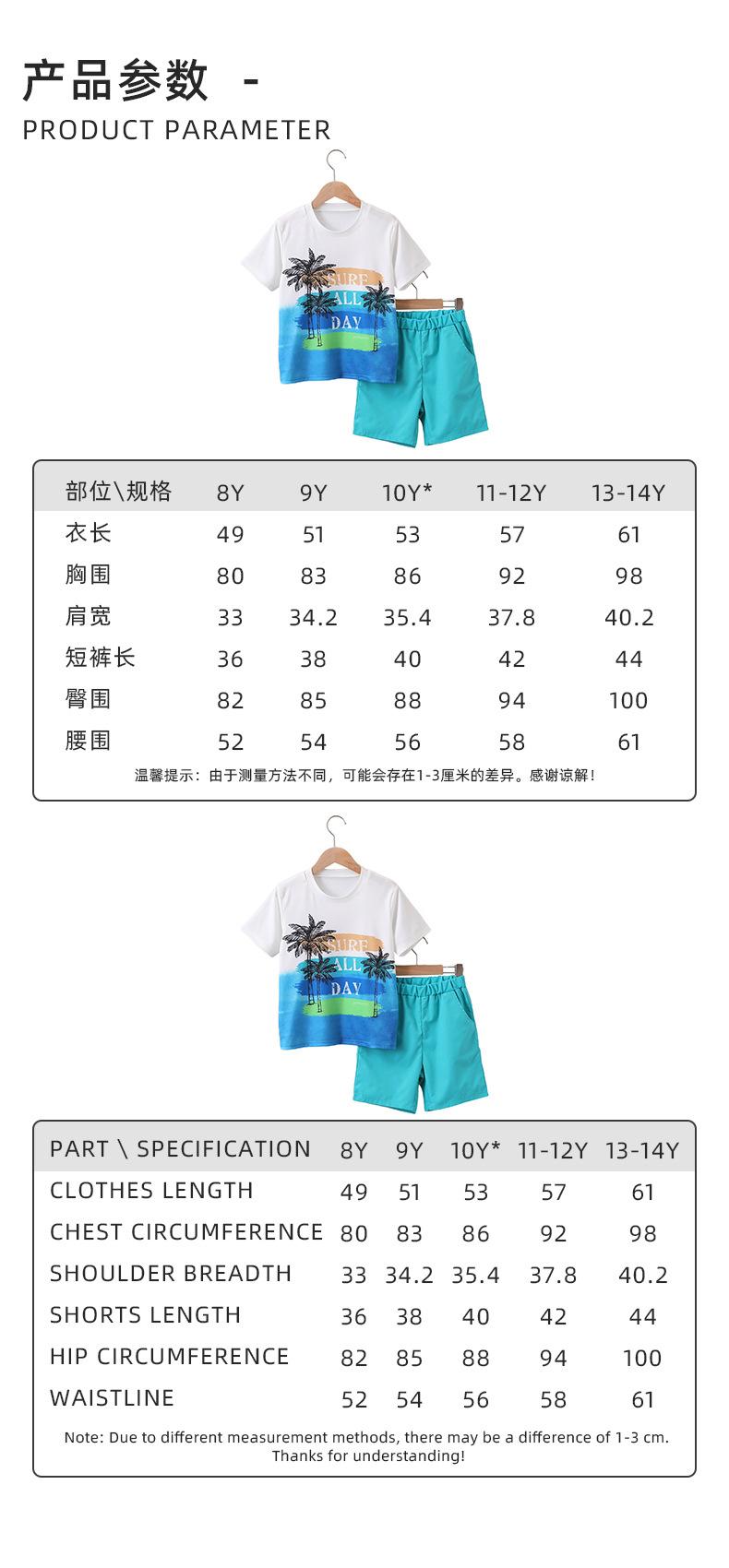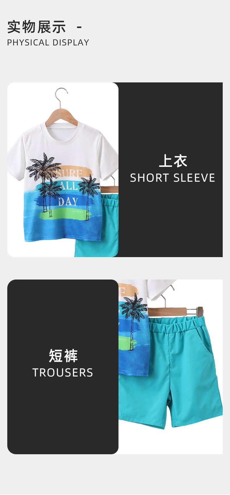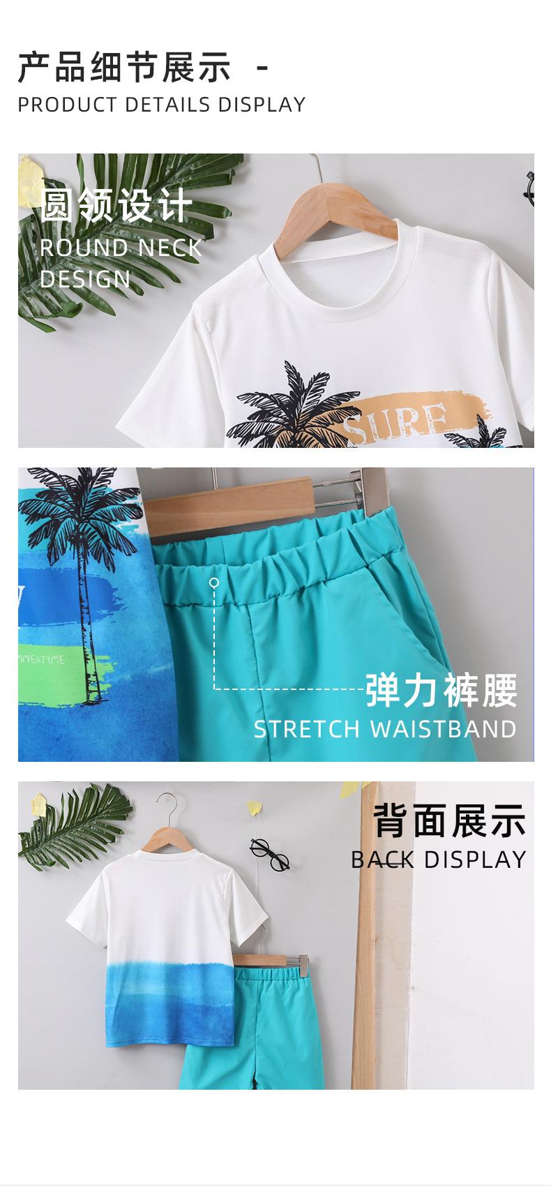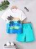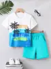 Camiseta para niños Shorts Conjunto de dos piezas Verano Manga corta Chaqueta Degradado Árbol de coco Ropa casual para niño Traje de manga corta para casa