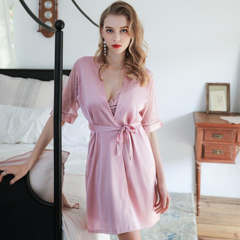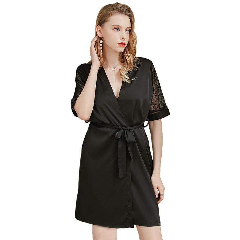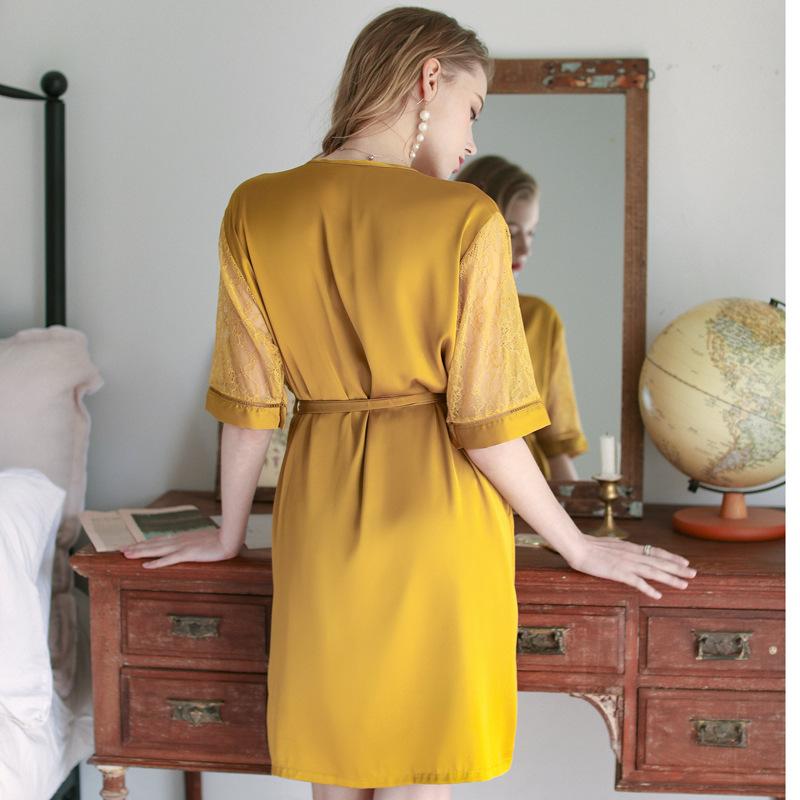 Bata de baño de primavera y verano para mujer, pijama sexy de manga corta, kimono con cordones, ropa de casa, bata individual de otoño