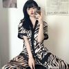 Pijama de verano para mujer, de seda helada, fino, de manga corta, tipo cárdigan, se puede usar en exteriores, de talla grande, con estampado de alta calidad, para el hogar, para primavera y otoño.