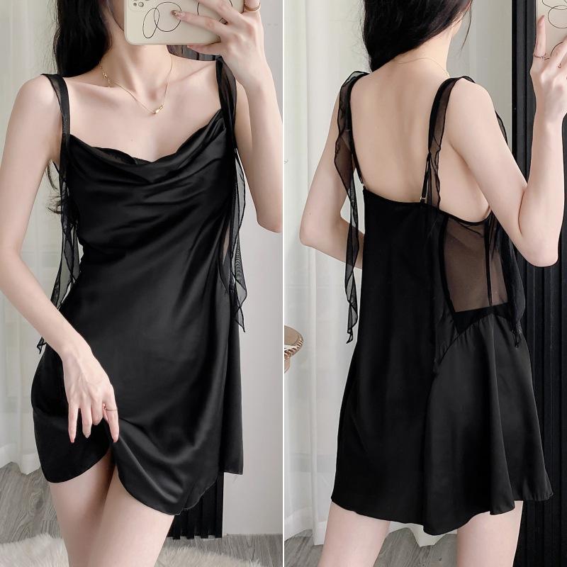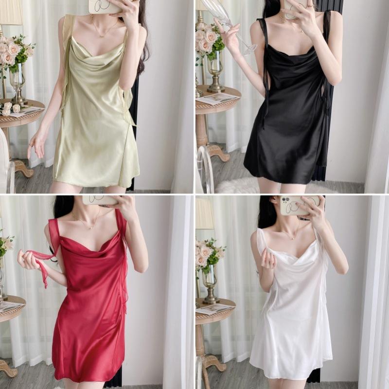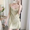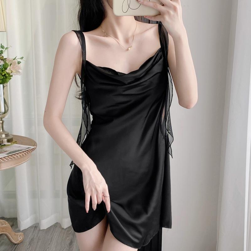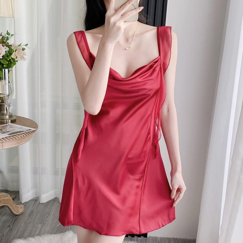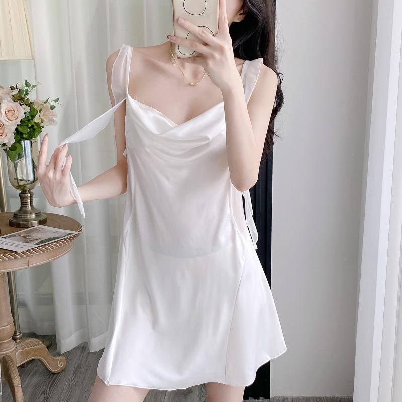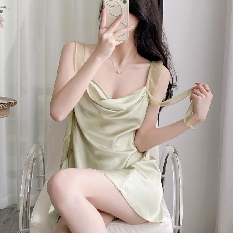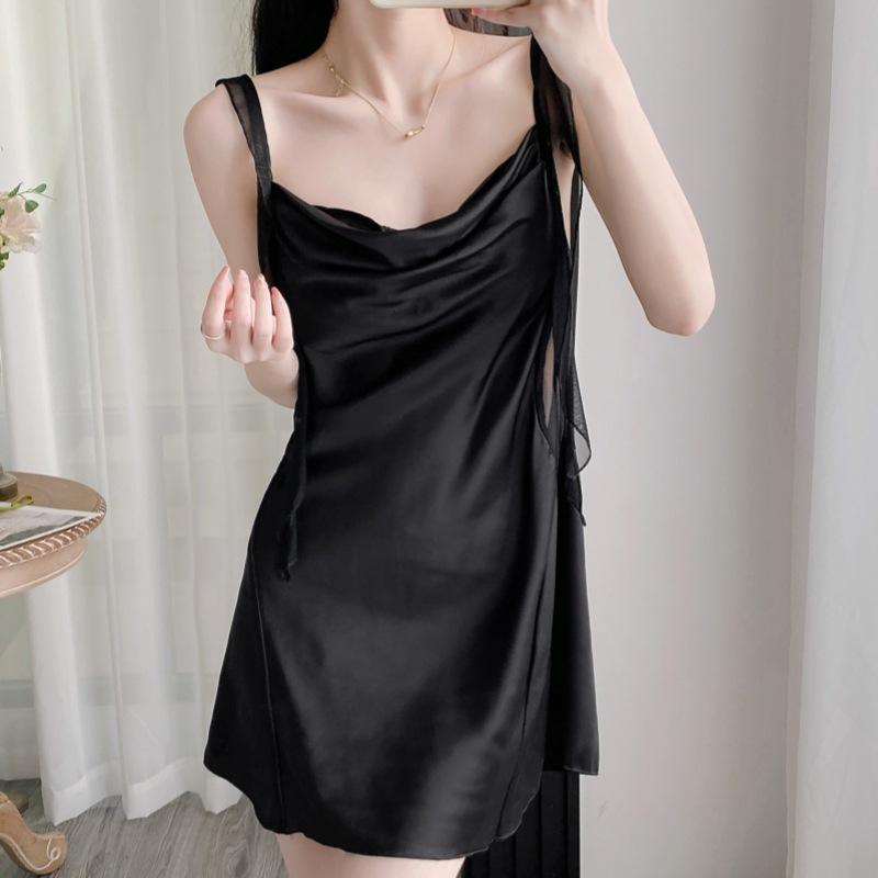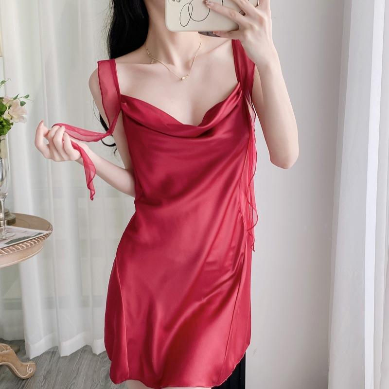 Camisón Sexy de Tirantes Espagueti, Pijama Nuevo de Verano de Seda de Hielo, Cuello Halter de Satén, Estilo Puro Deseo con Almohadilla en el Pecho, Vestido para Estar en Casa
