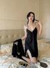 Pijama sexy de seda de hielo para mujer, fino, con almohadilla para el pecho, puro deseo, tirantes de viento, camisón, conjunto de dos piezas, 2024, nueva ropa para el hogar