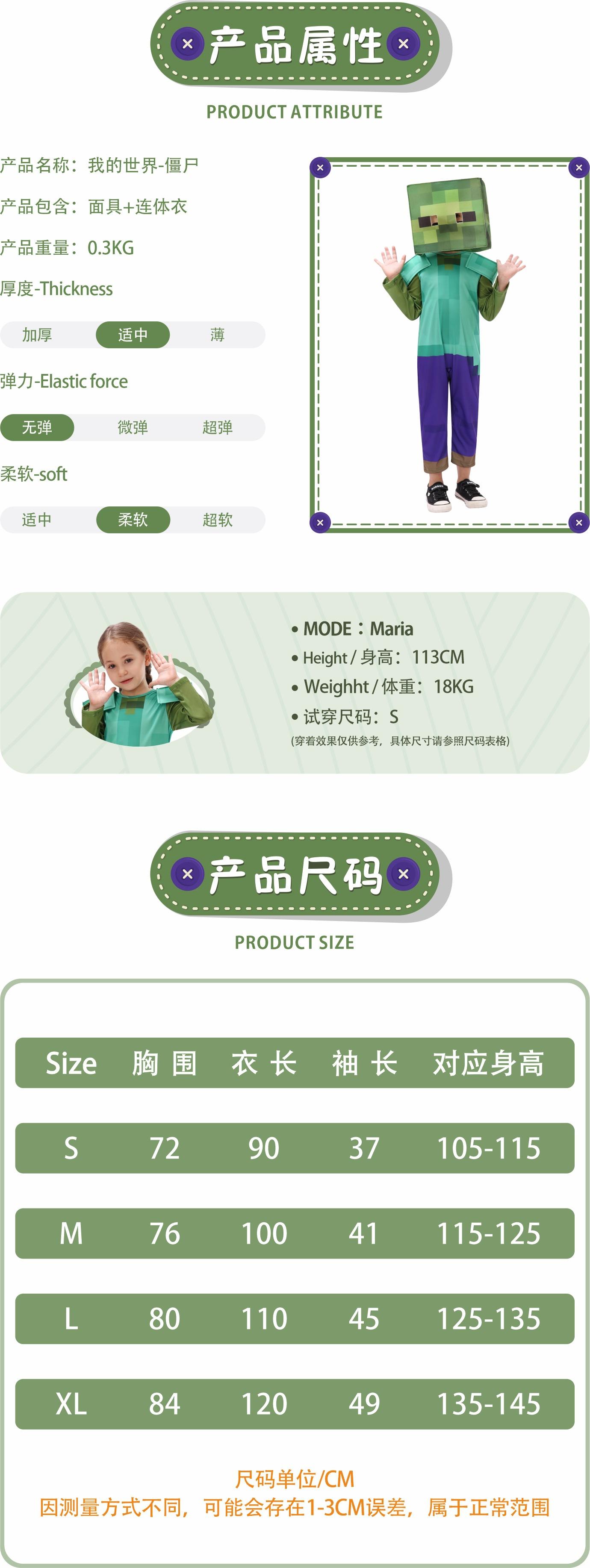Mi mundo NPC rol zombi cos juego de rol disfraz de actuación infantil fiesta festival disfraz de actuación infantil