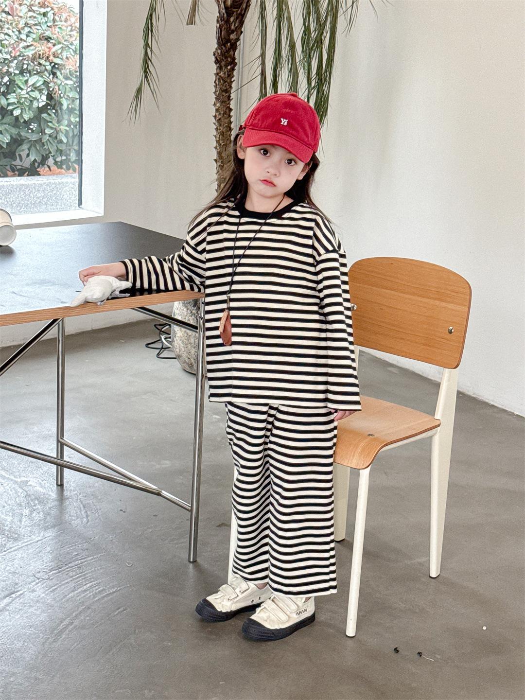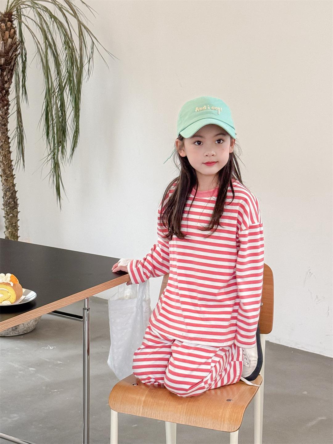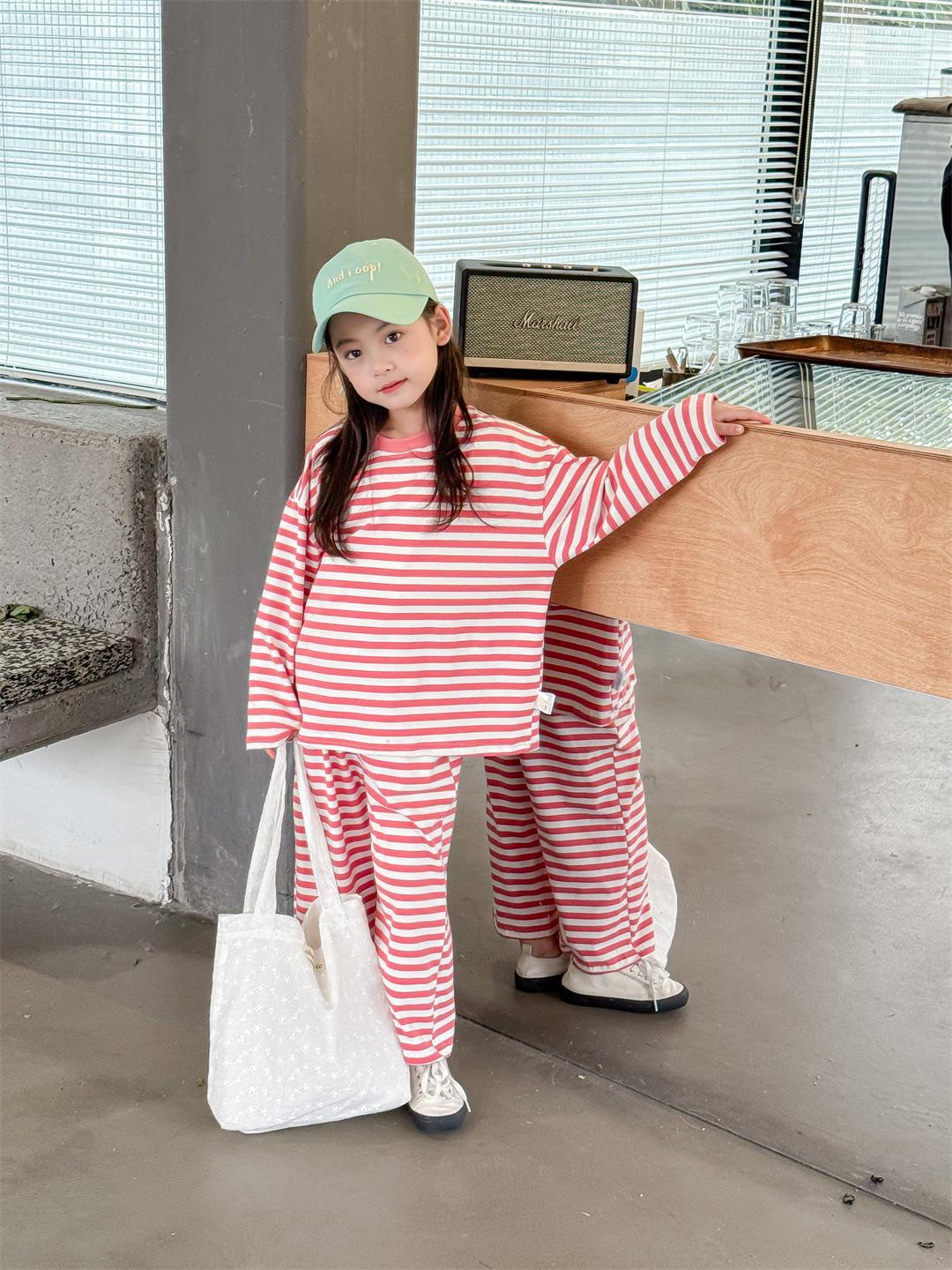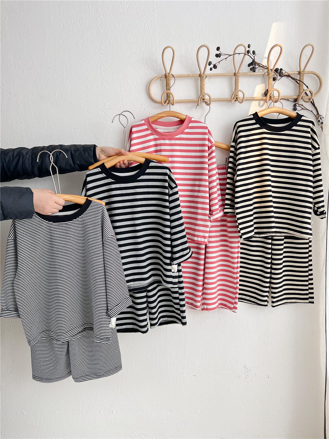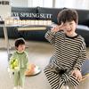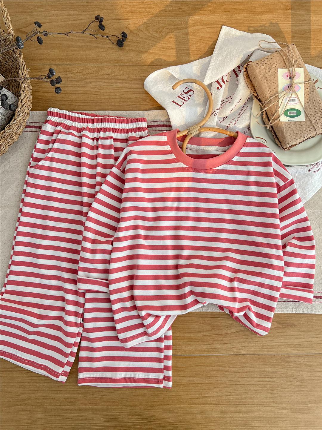 Pijamas para niños 2024 Primavera Nuevo traje de ropa para el hogar a rayas Casual Suelto Hombro caído Ropa para el hogar para niños y niñas
