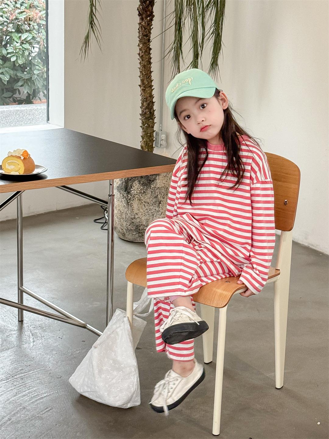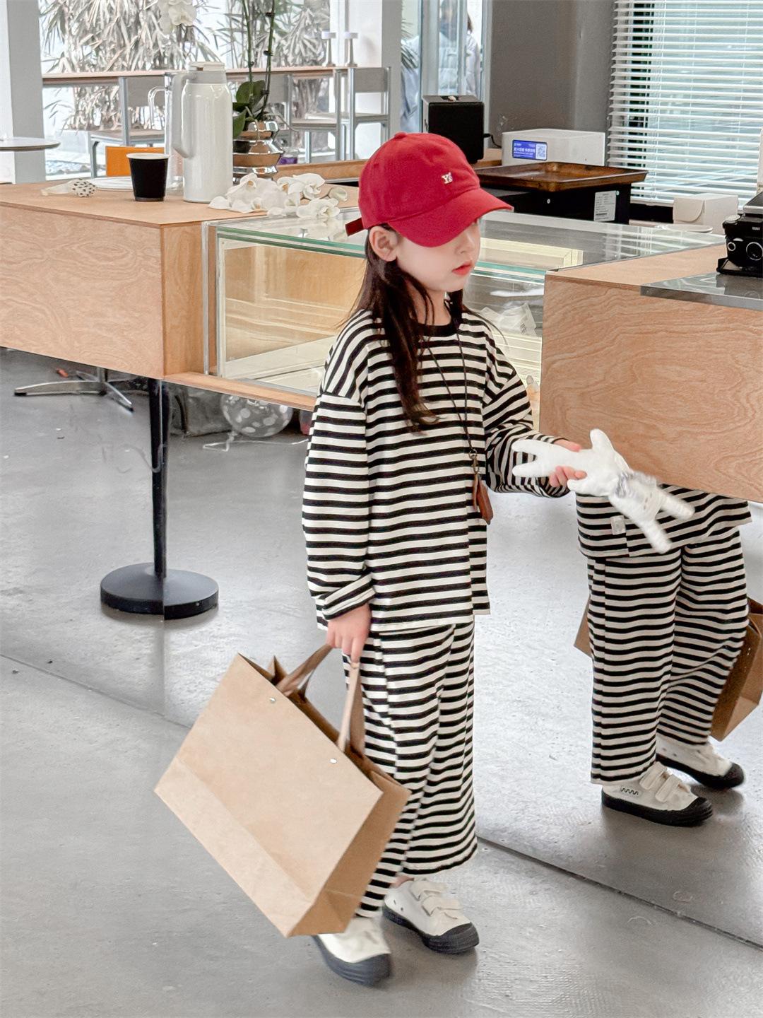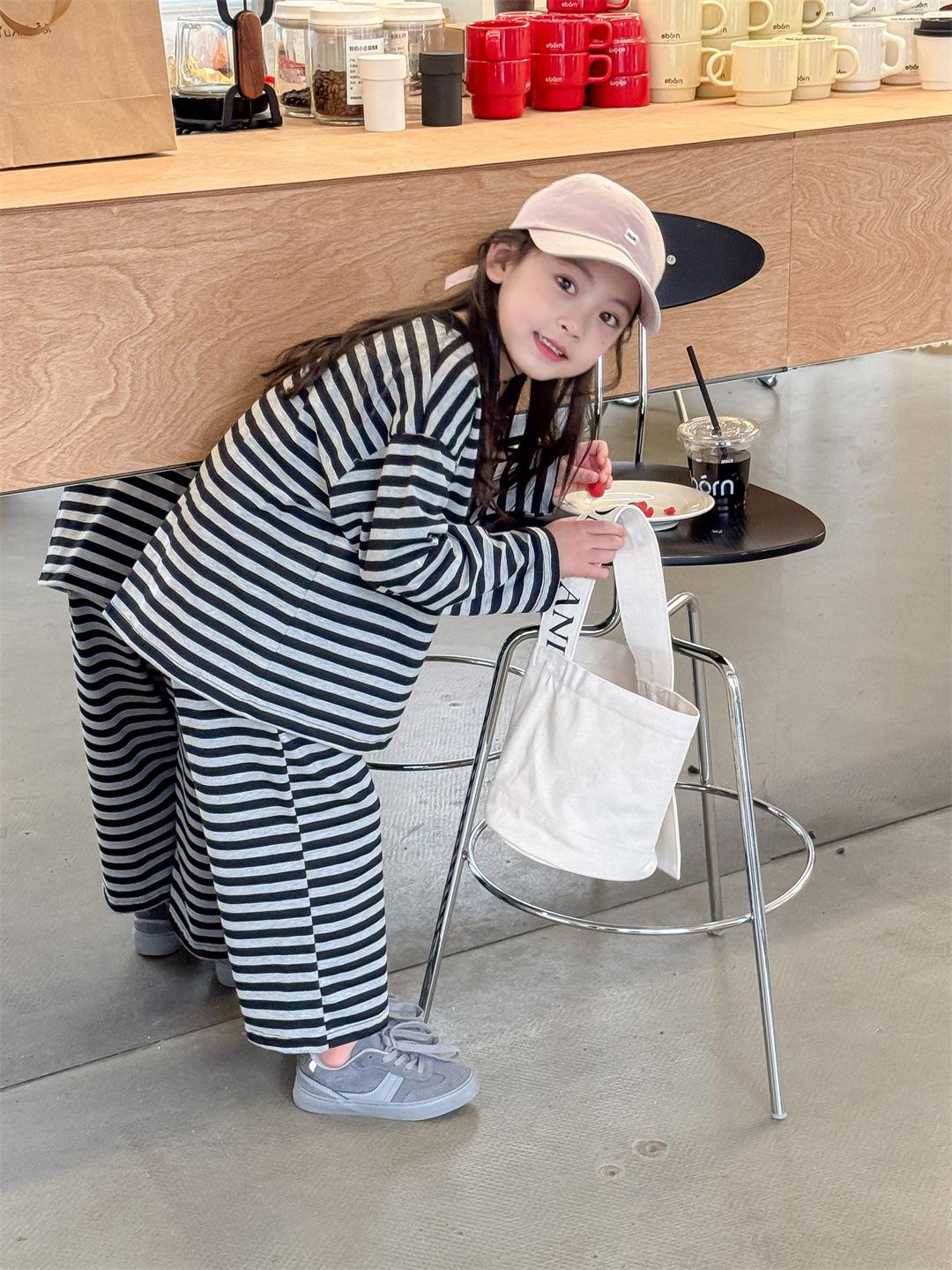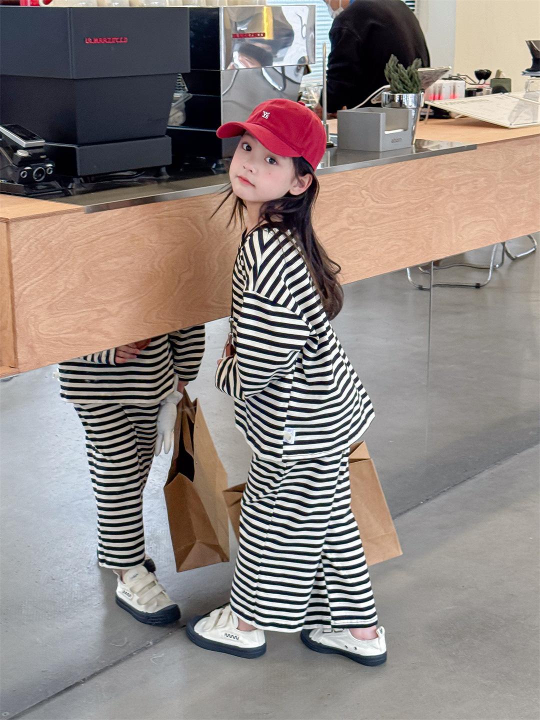 Pijamas para niños 2024 Primavera Nuevo traje de ropa para el hogar a rayas Casual Suelto Hombro caído Ropa para el hogar para niños y niñas