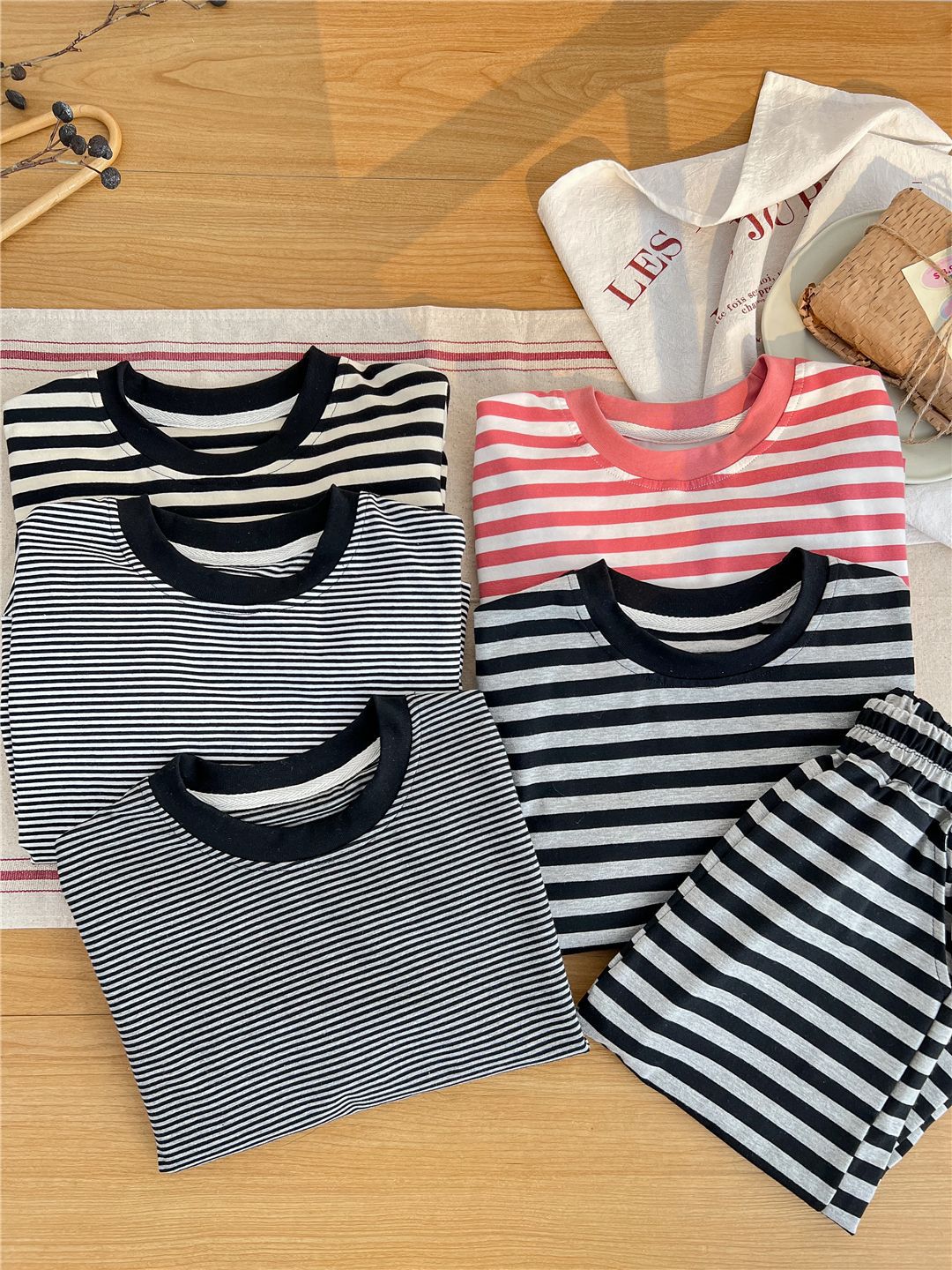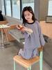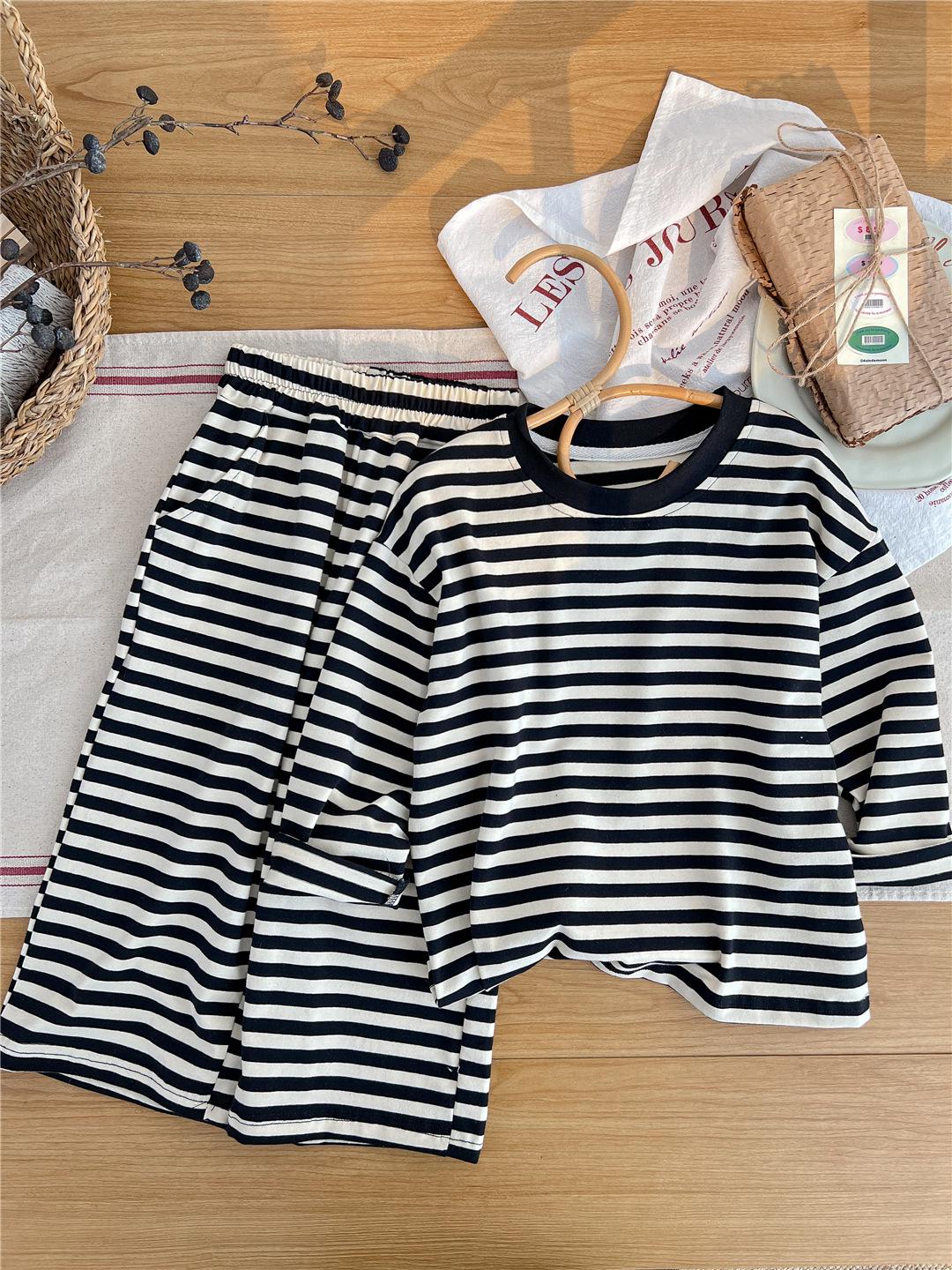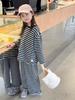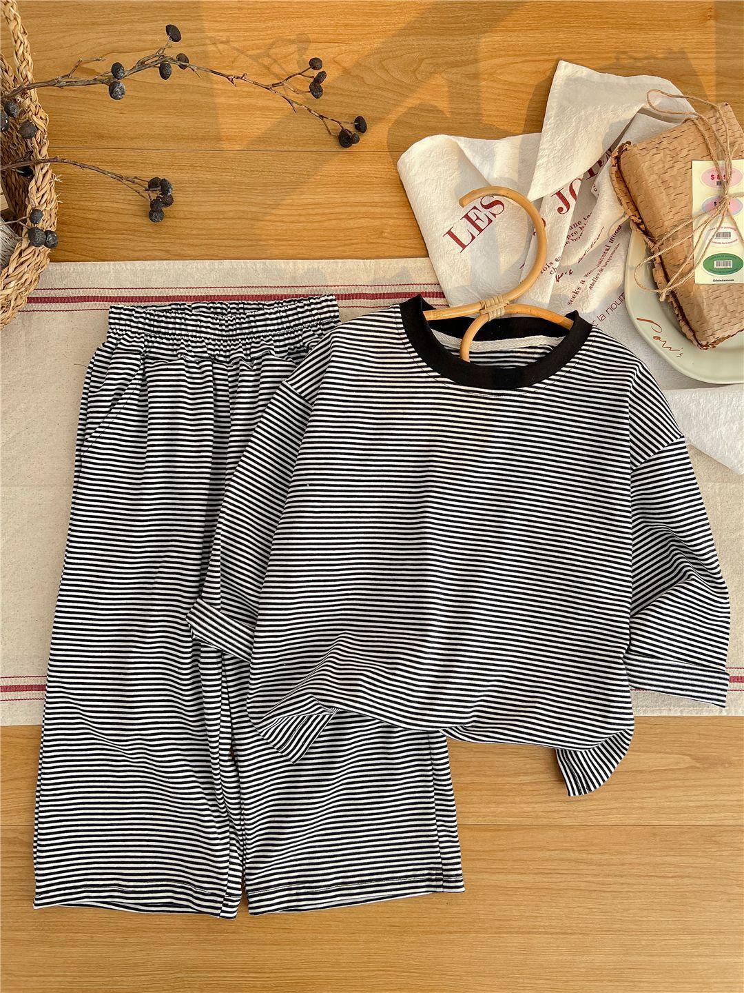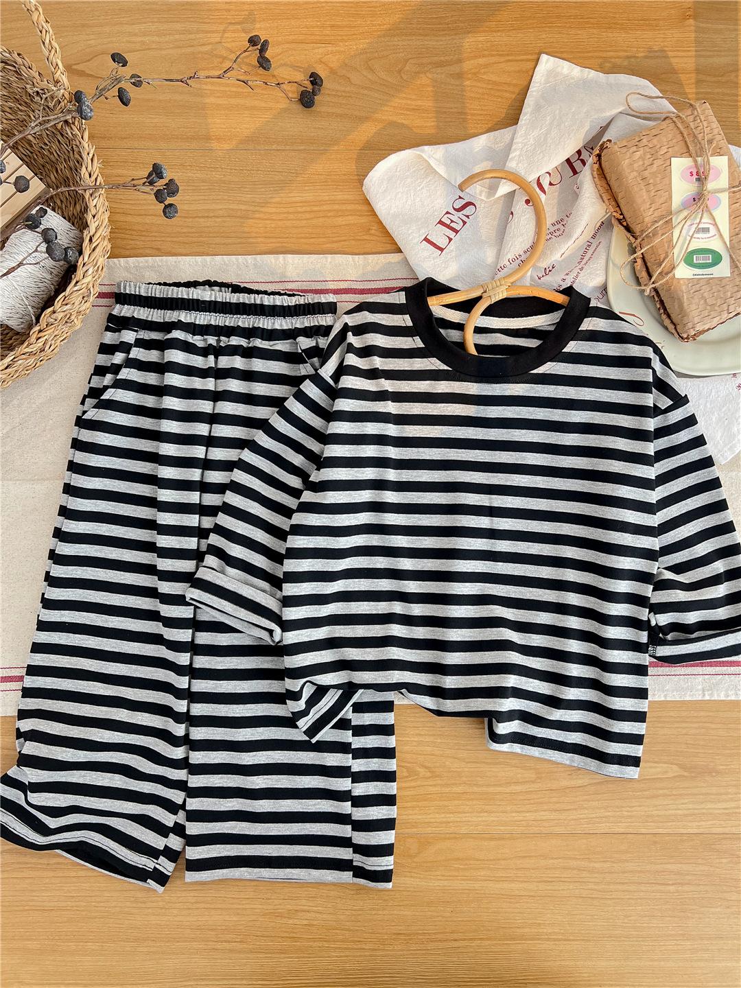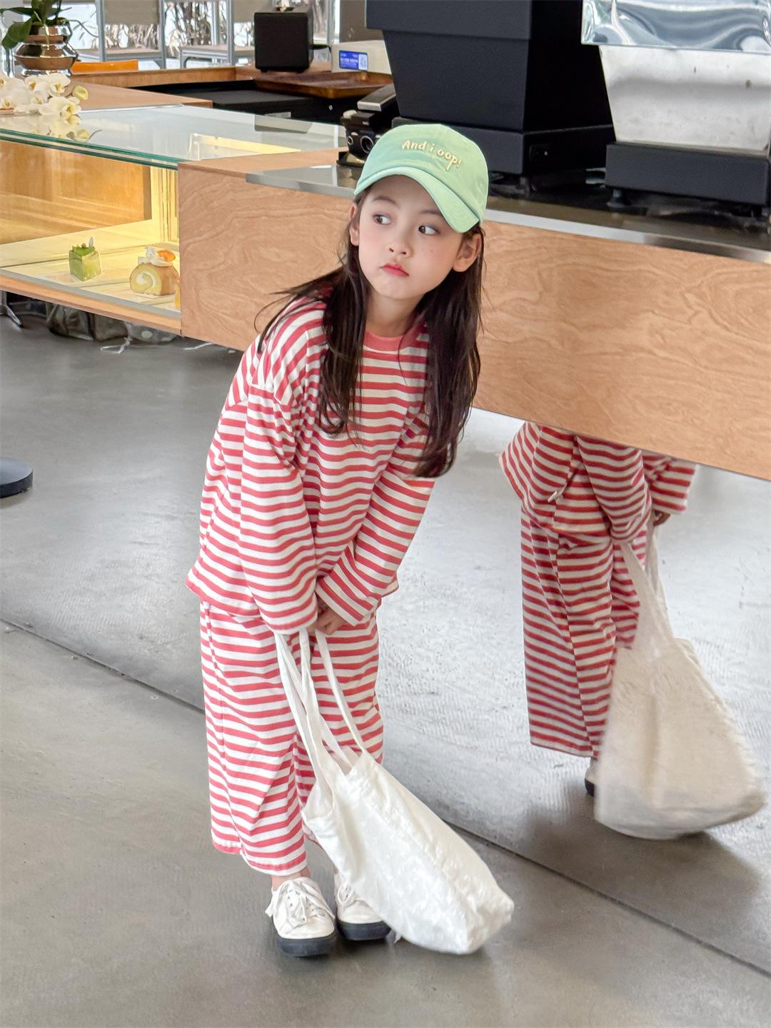 Pijamas para niños 2024 Primavera Nuevo traje de ropa para el hogar a rayas Casual Suelto Hombro caído Ropa para el hogar para niños y niñas