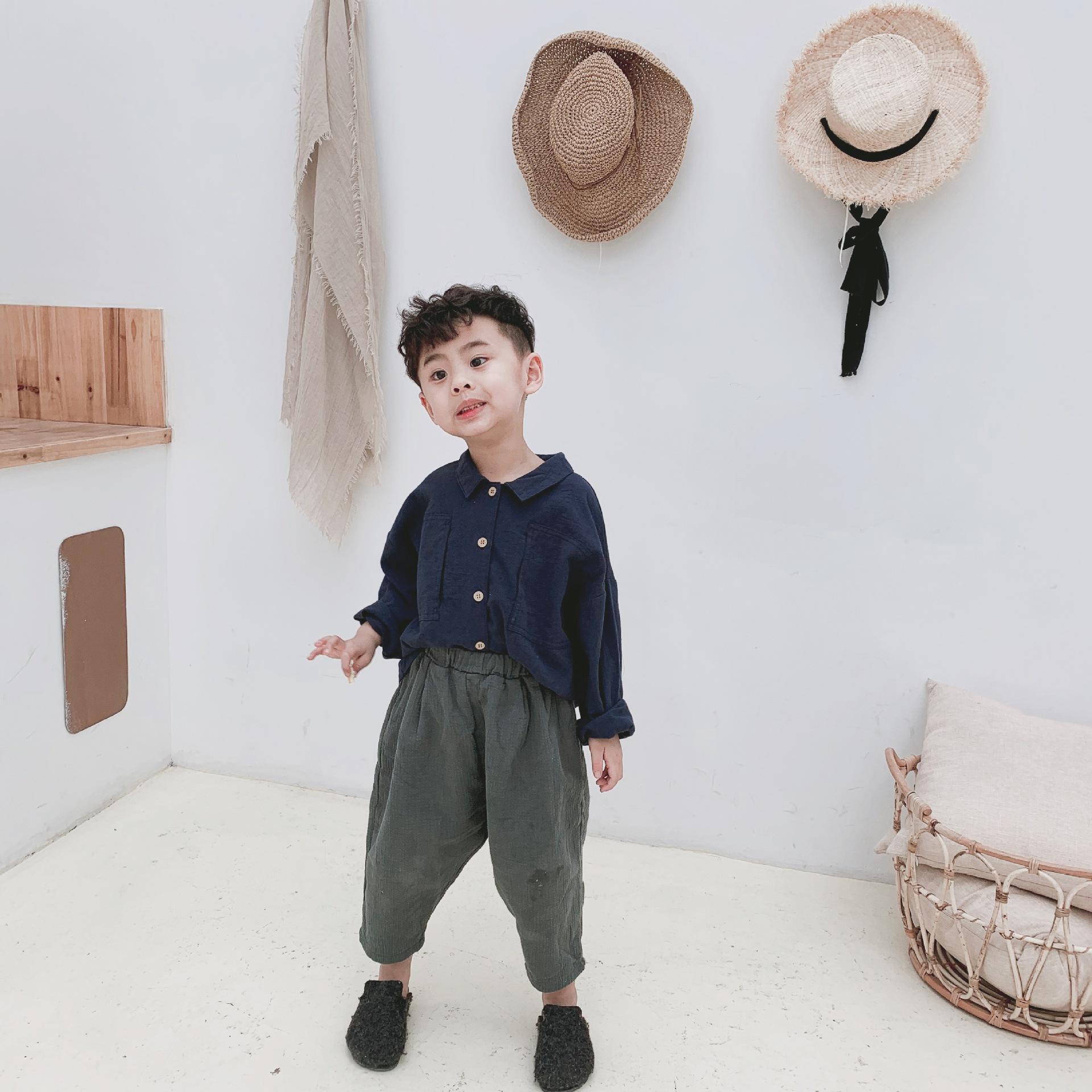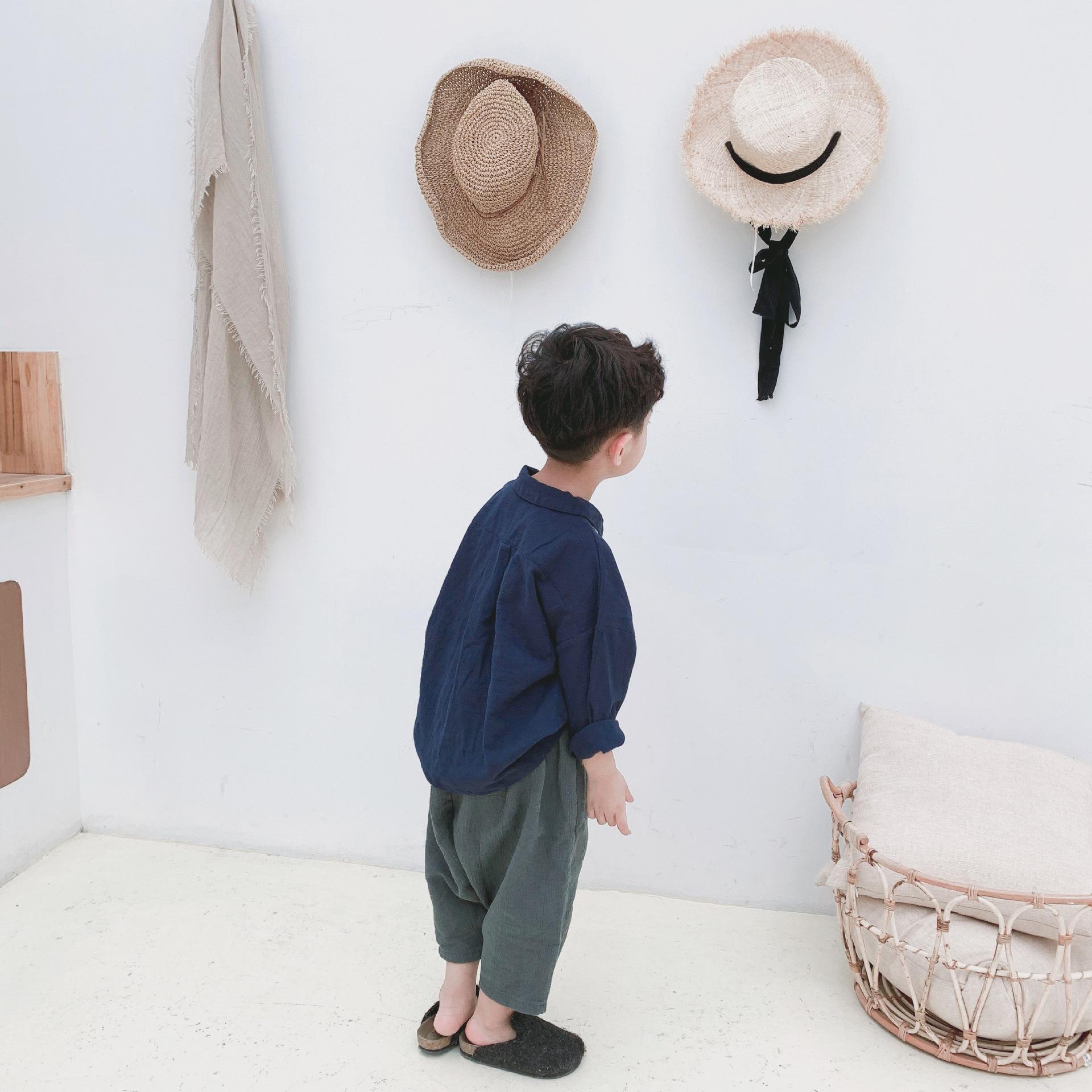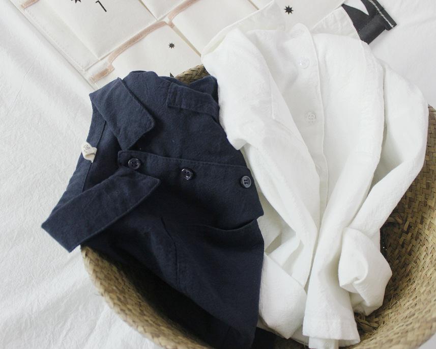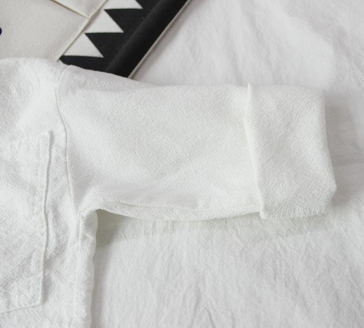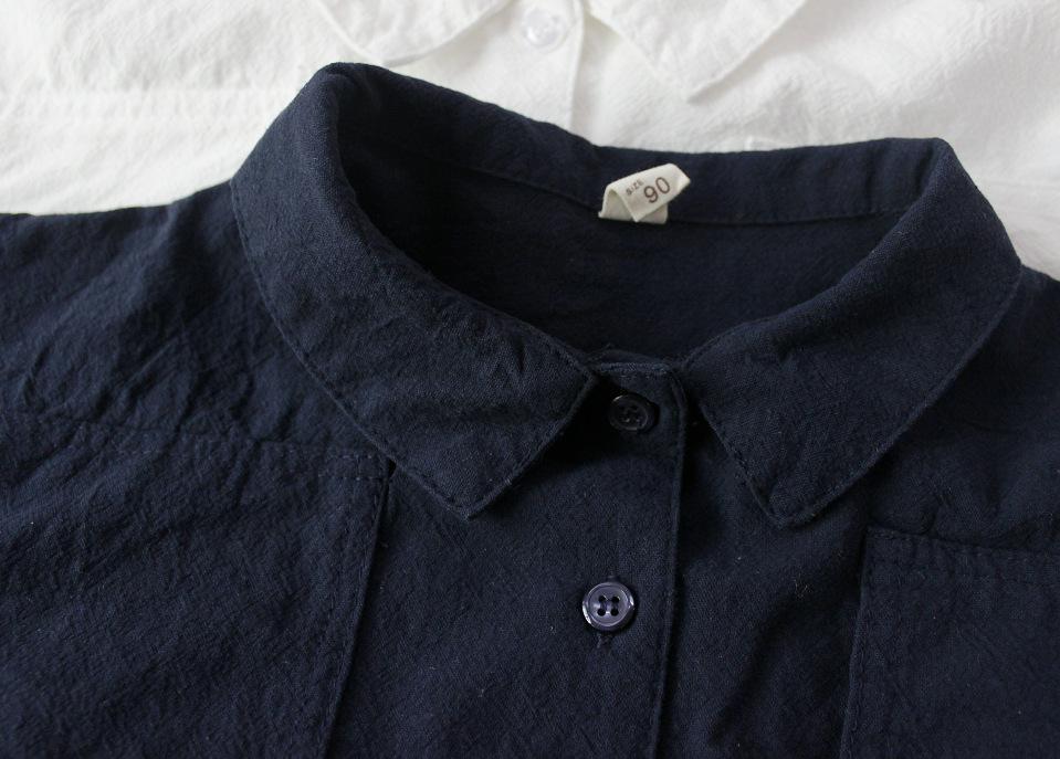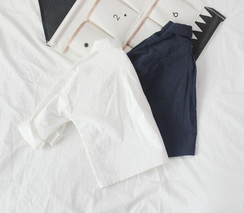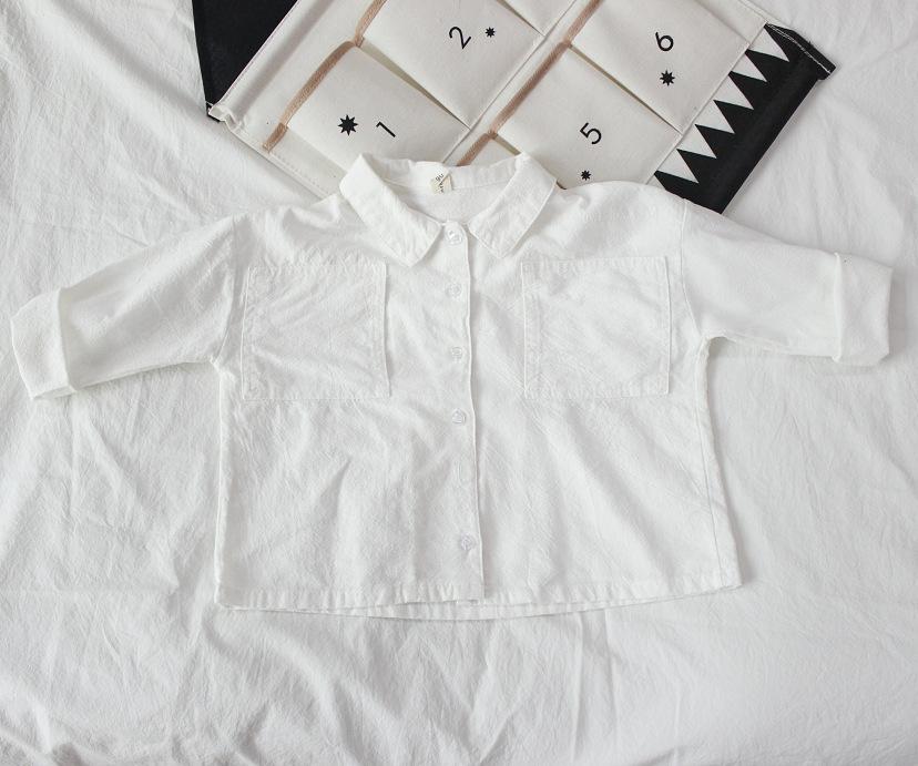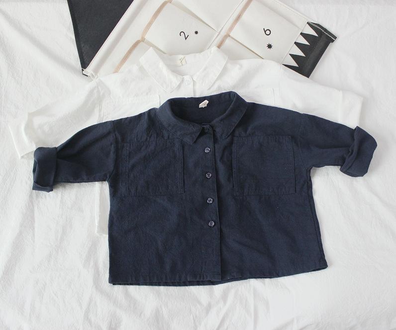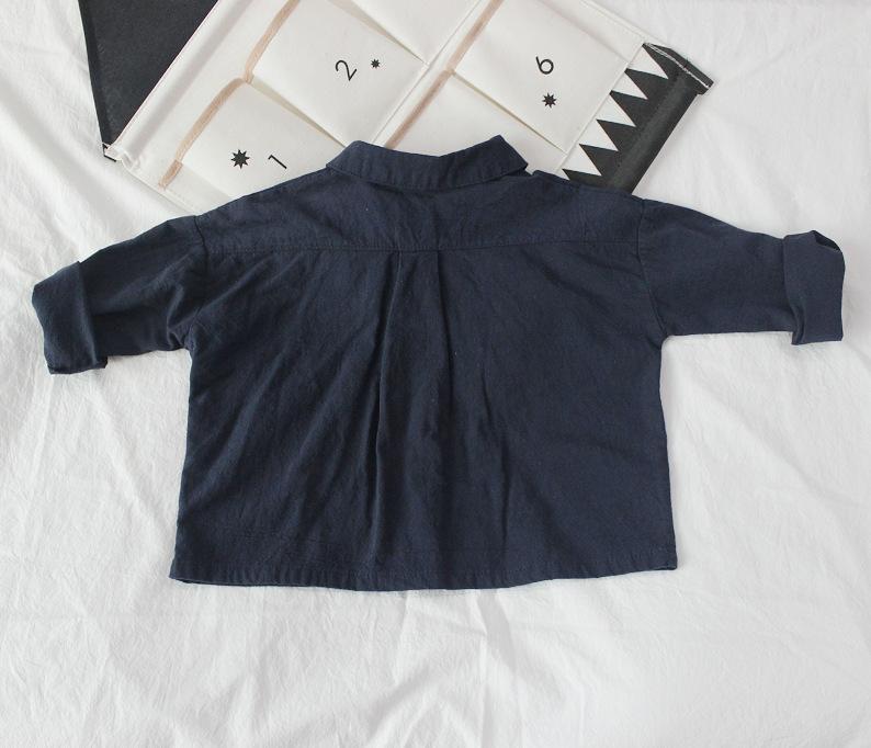 Camisa Infantil de Otoño 2025 Algodón Lino Top para Niños Estilo Coreano Manga Murciélago Cuello Mao Camisa para Niñas Doble Bolsillo Color Sólido