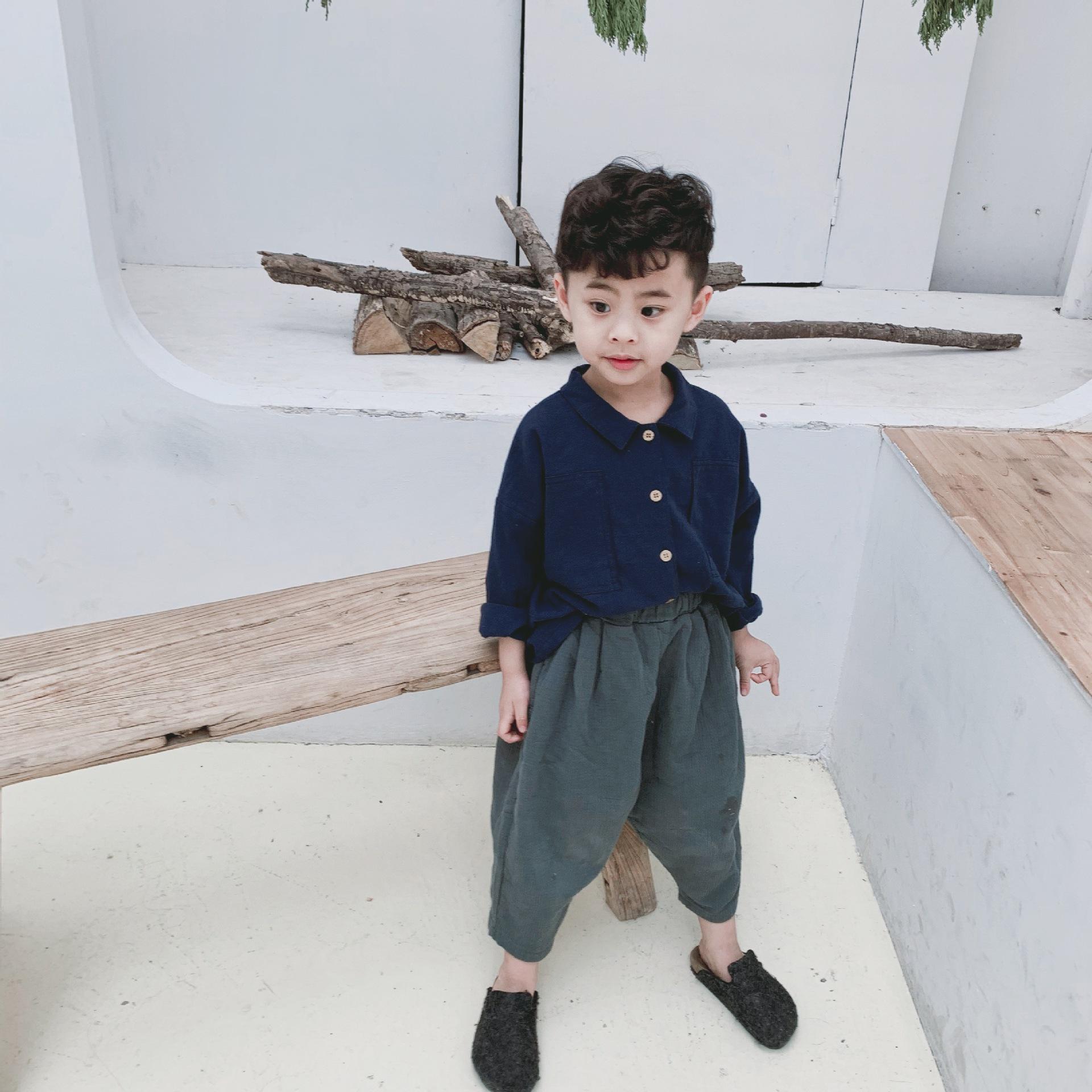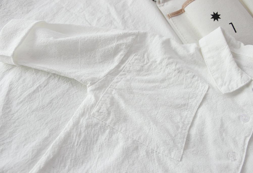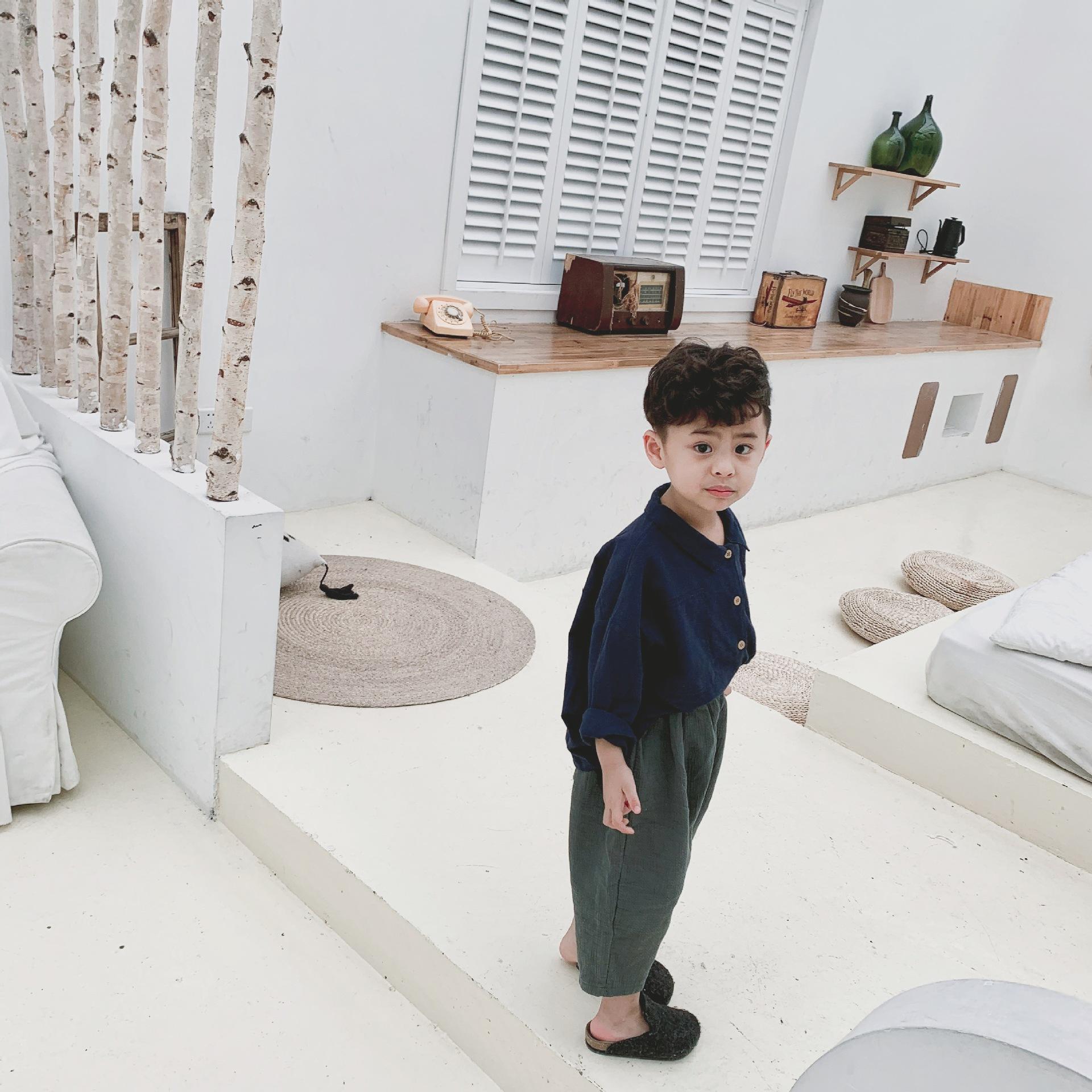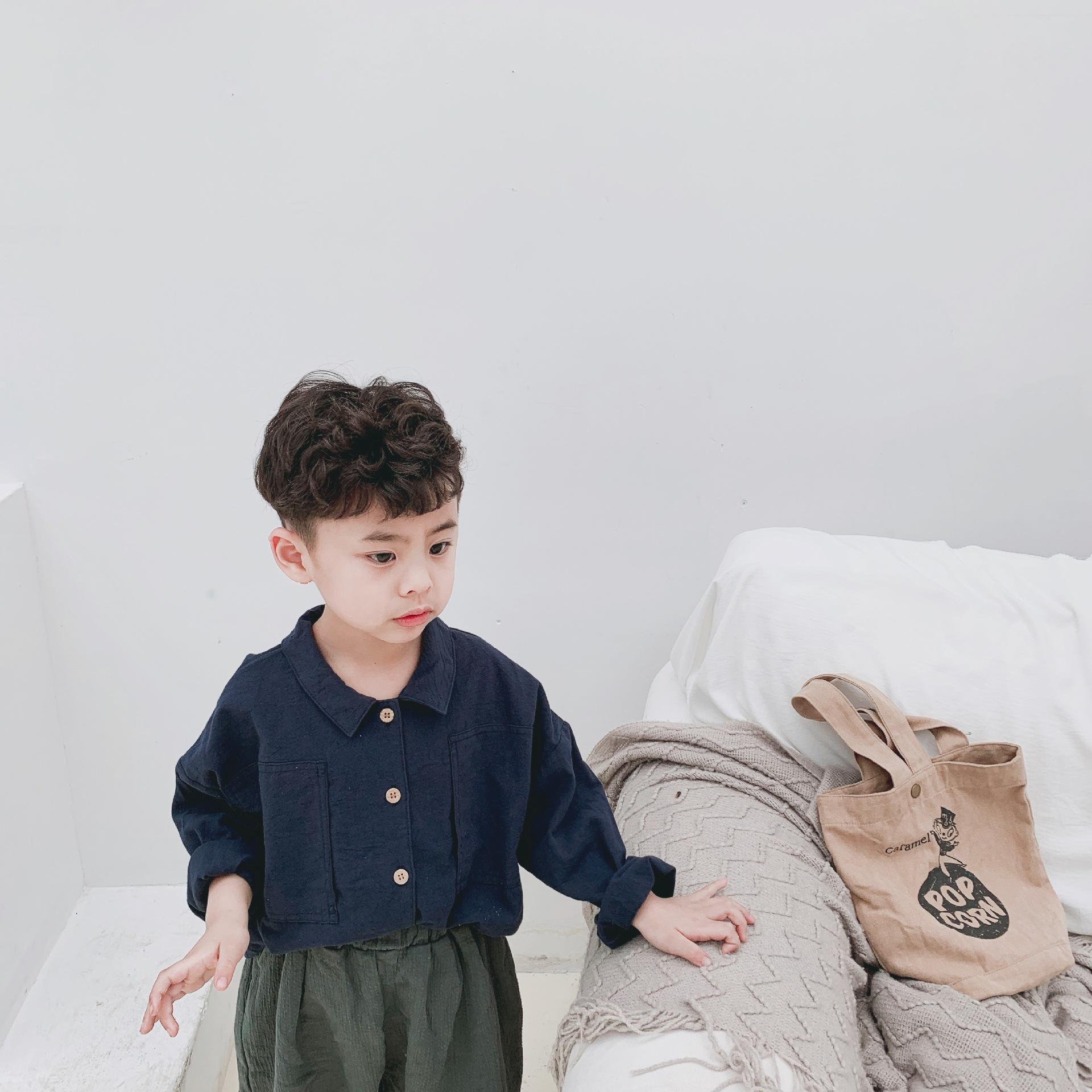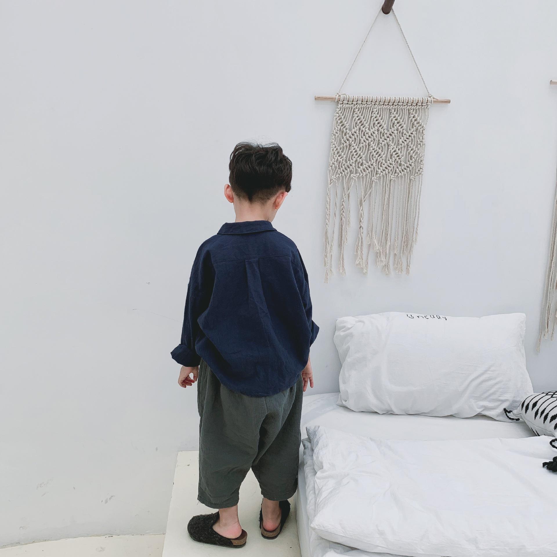Camisa Infantil de Otoño 2025 Algodón Lino Top para Niños Estilo Coreano Manga Murciélago Cuello Mao Camisa para Niñas Doble Bolsillo Color Sólido