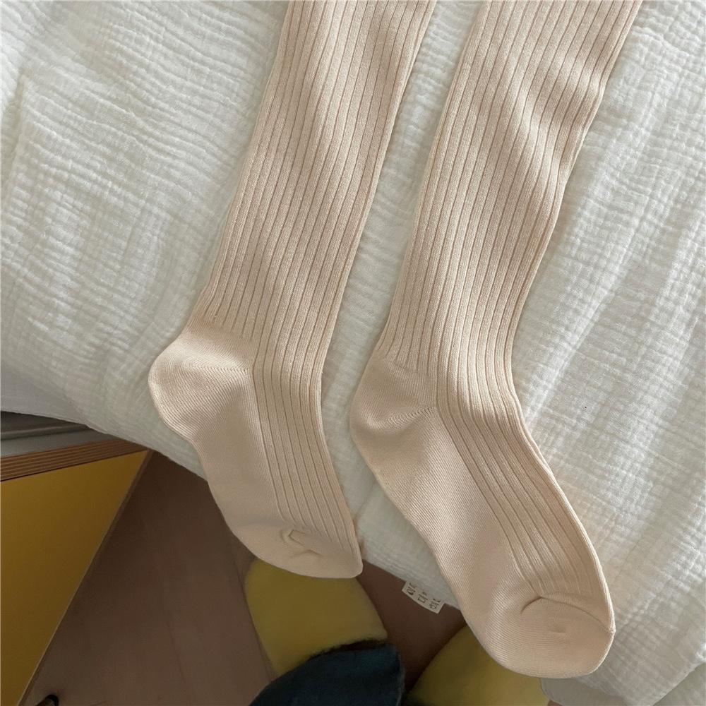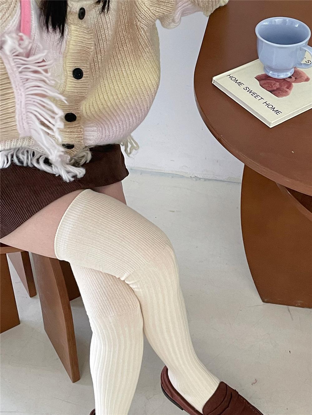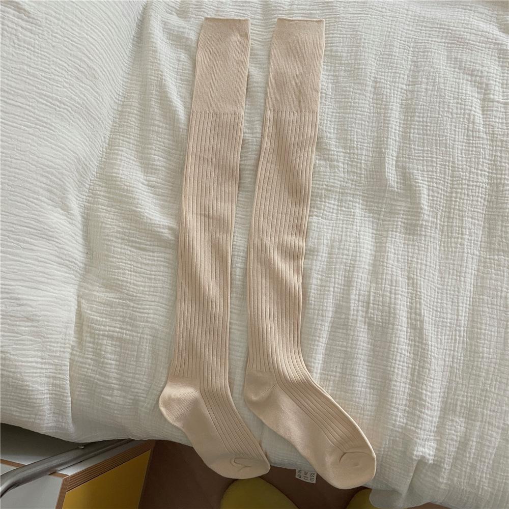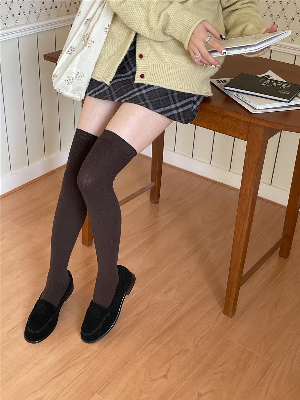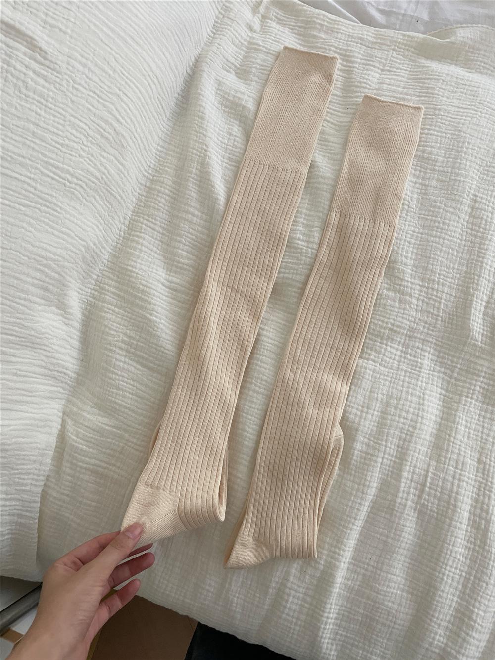 Calcetines por encima de la rodilla con estampado vertical estilo miu de otoño e invierno de IOULOR, nuevos calcetines adelgazantes versátiles de color sólido, calcetines cálidos de algodón