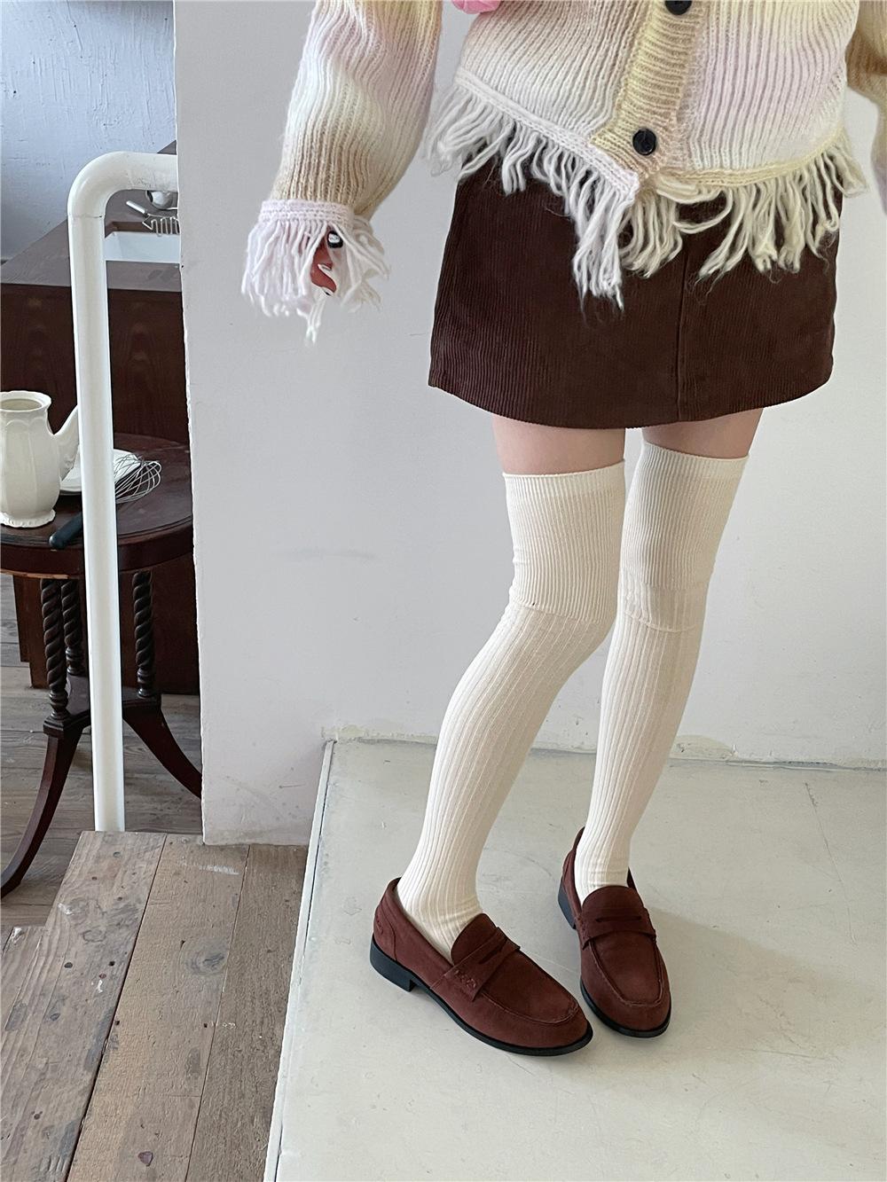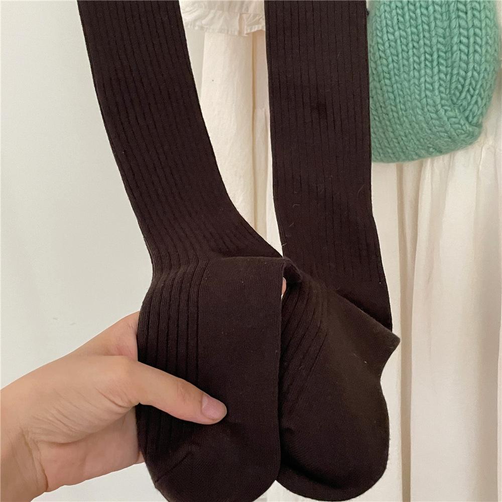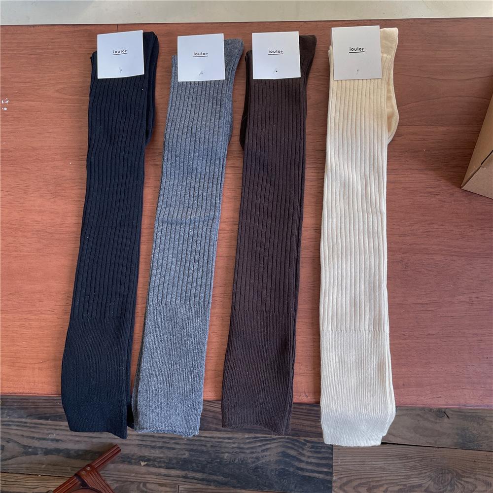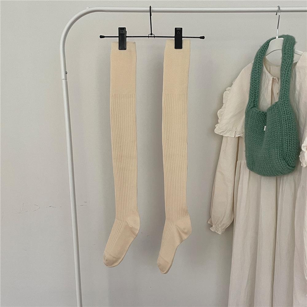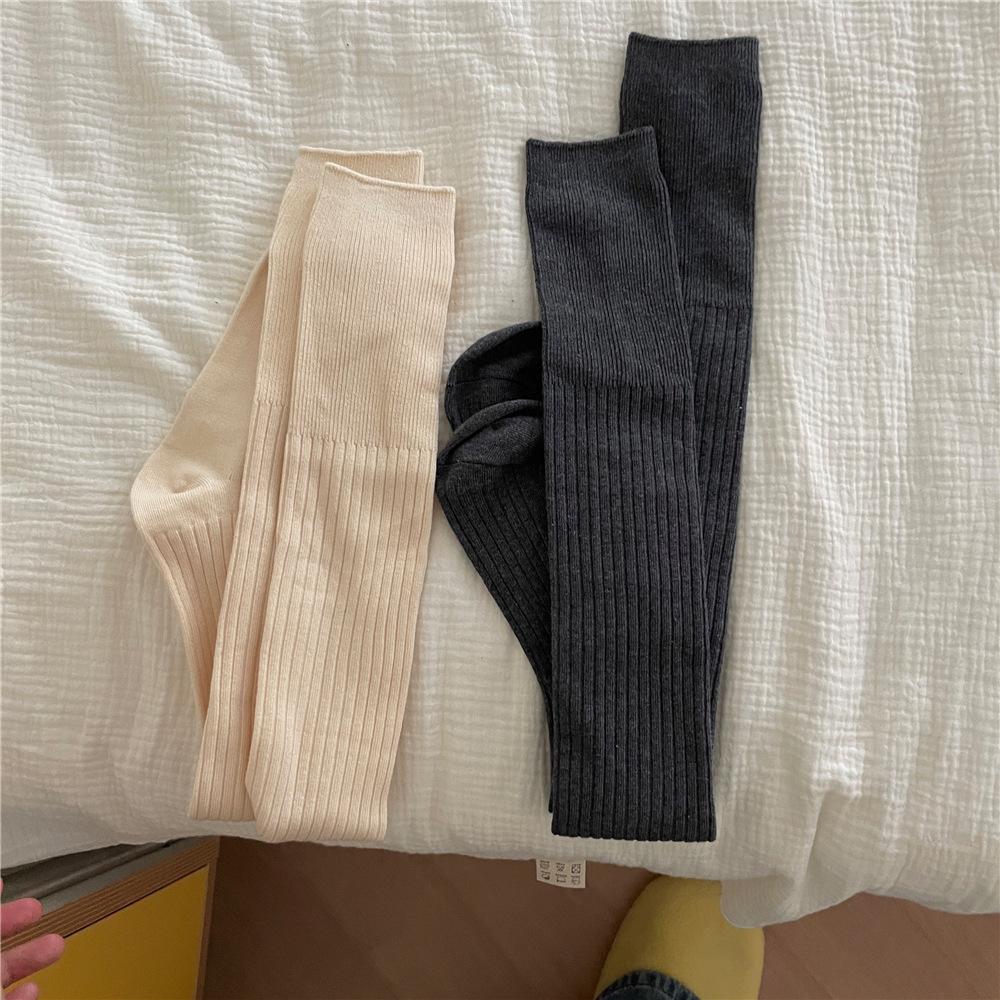Calcetines por encima de la rodilla con estampado vertical estilo miu de otoño e invierno de IOULOR, nuevos calcetines adelgazantes versátiles de color sólido, calcetines cálidos de algodón