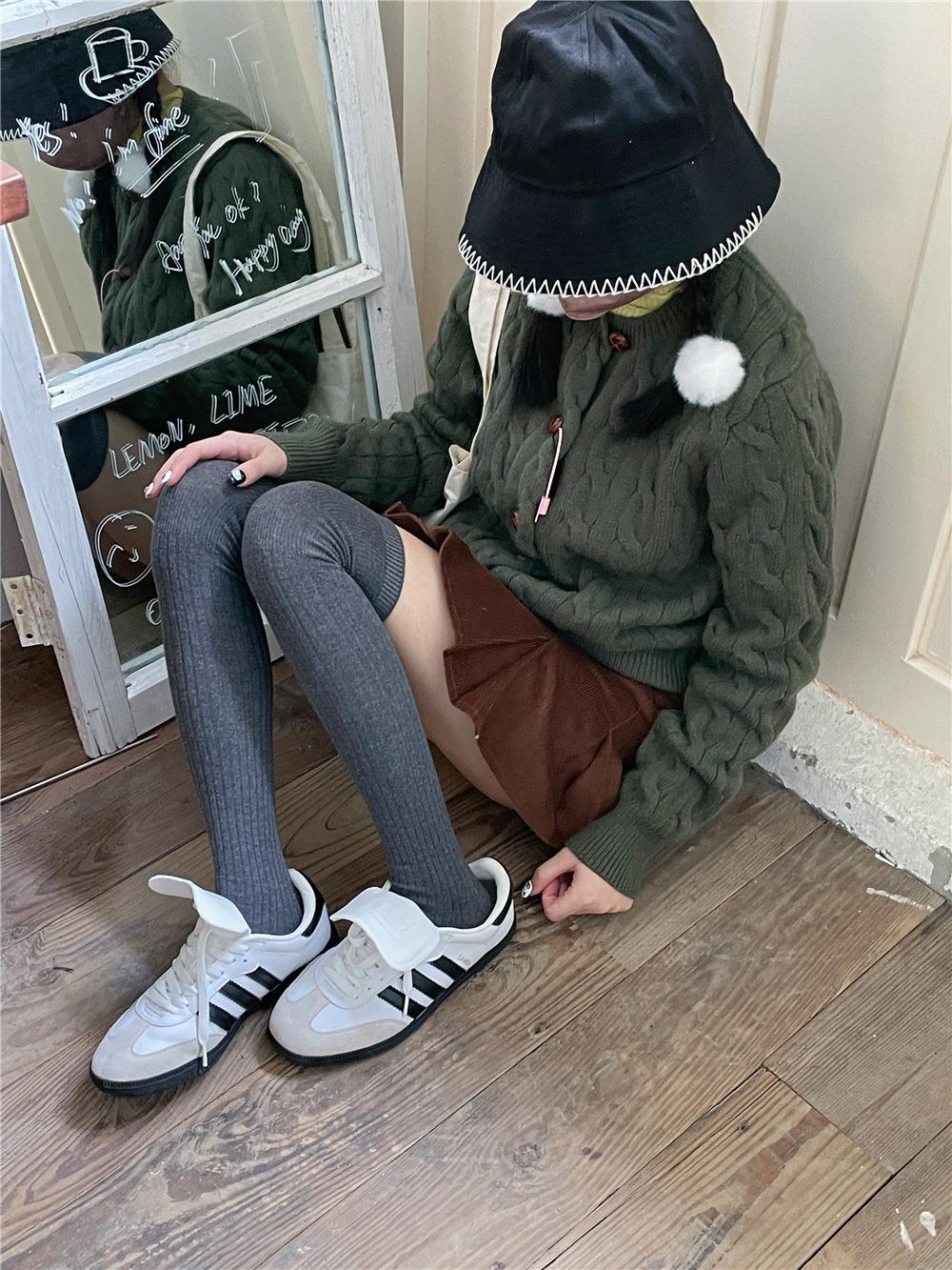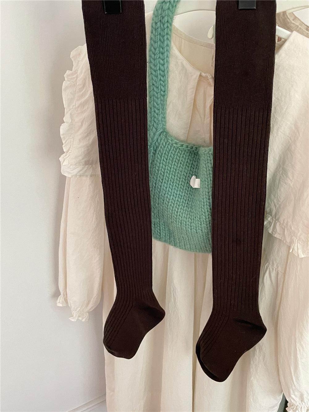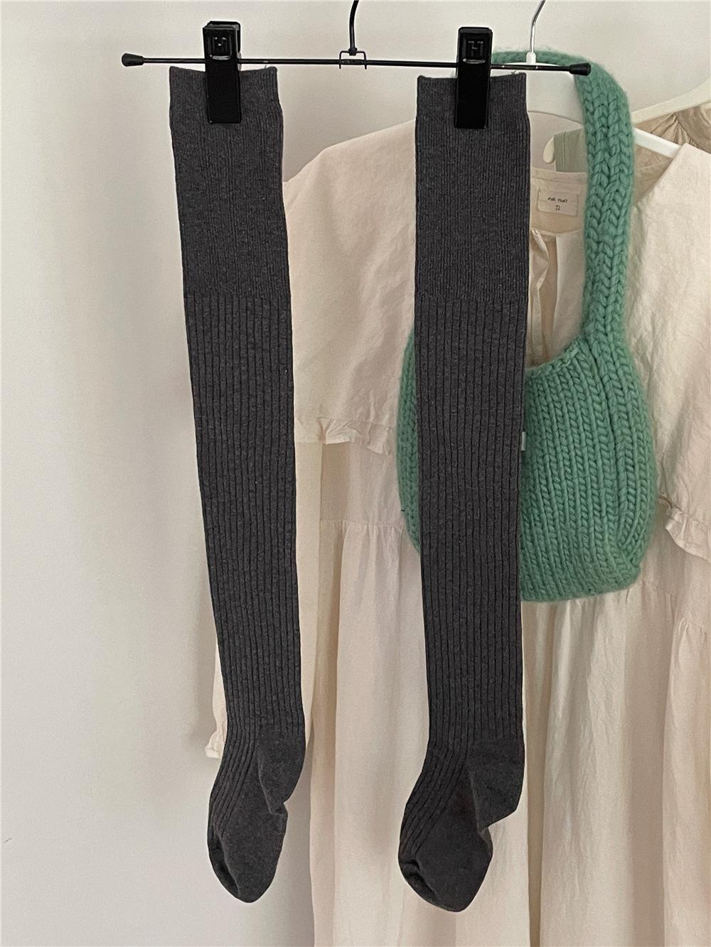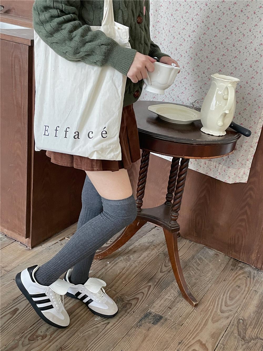 Calcetines por encima de la rodilla con estampado vertical estilo miu de otoño e invierno de IOULOR, nuevos calcetines adelgazantes versátiles de color sólido, calcetines cálidos de algodón