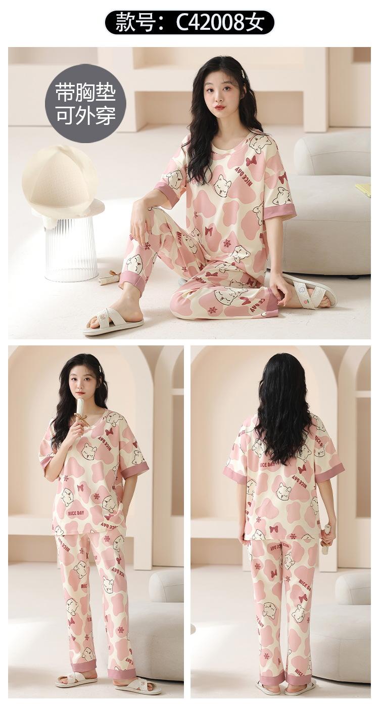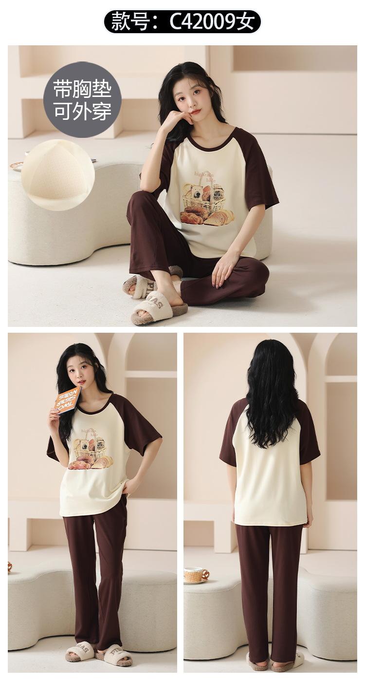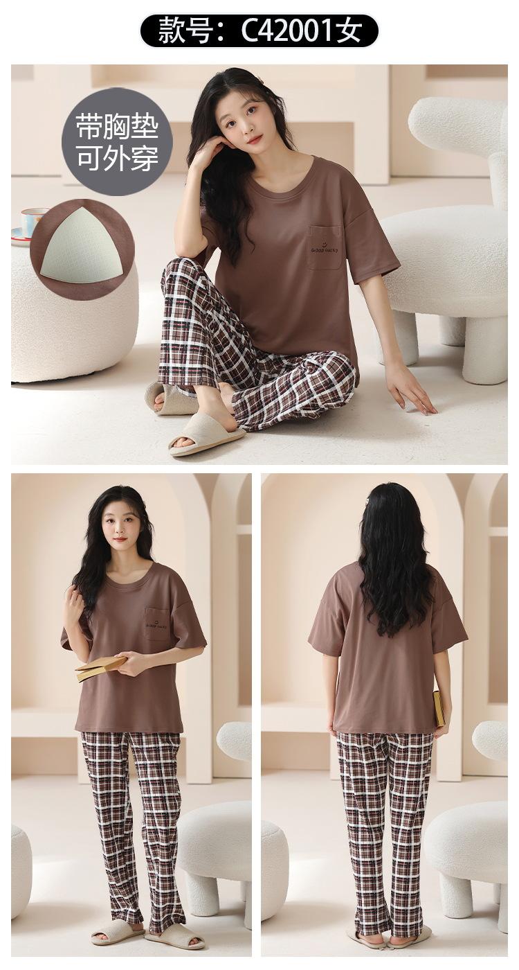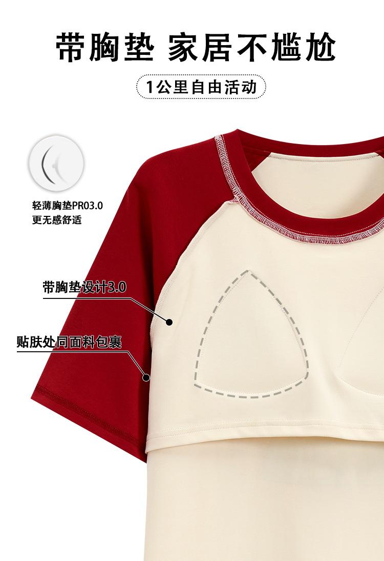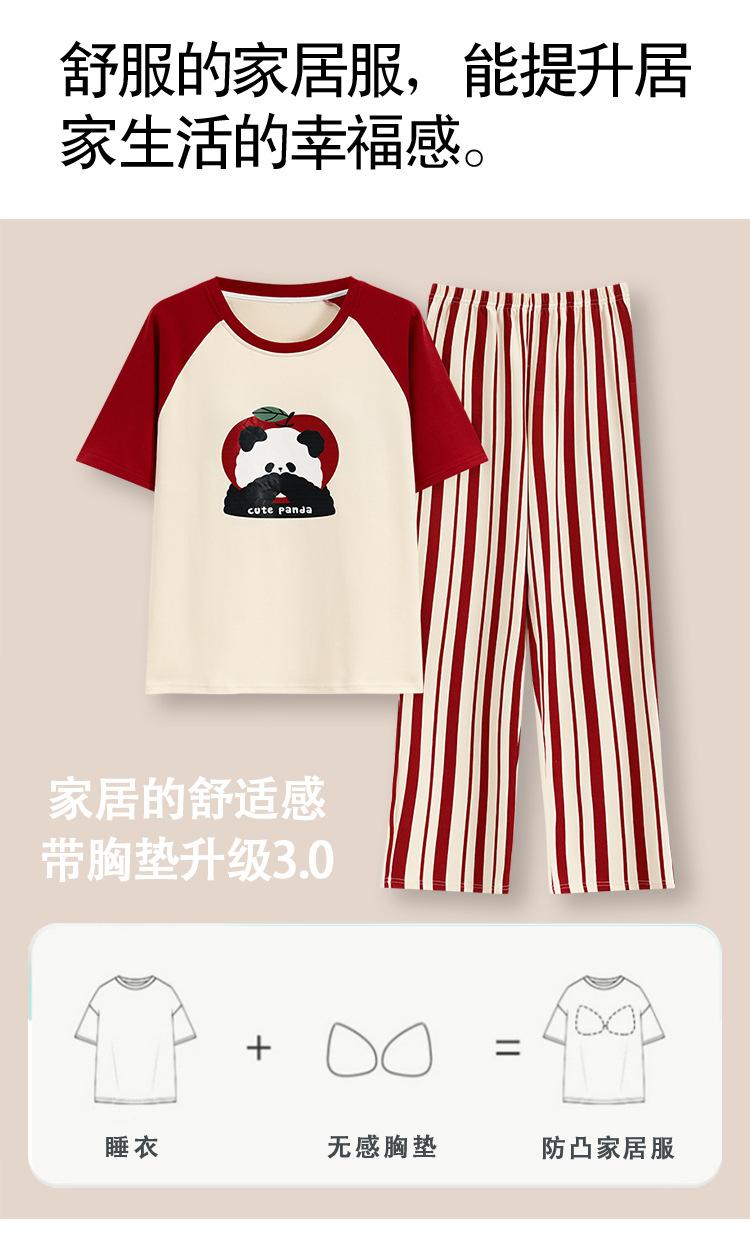 Pijama de verano con almohadilla para el pecho para mujer, de verano, de algodón puro, de manga corta, para mujer, ropa de hogar suave y profesional, primavera y otoño.