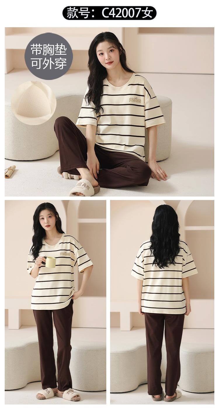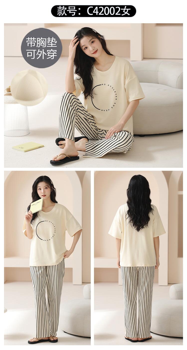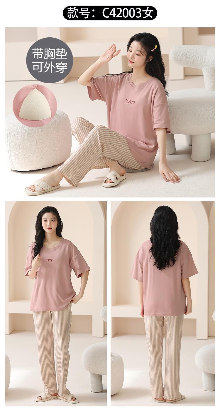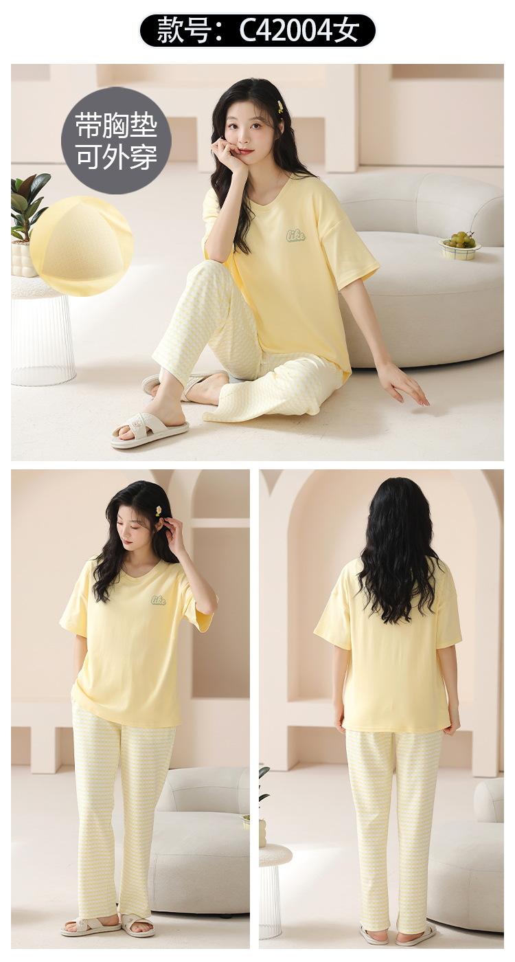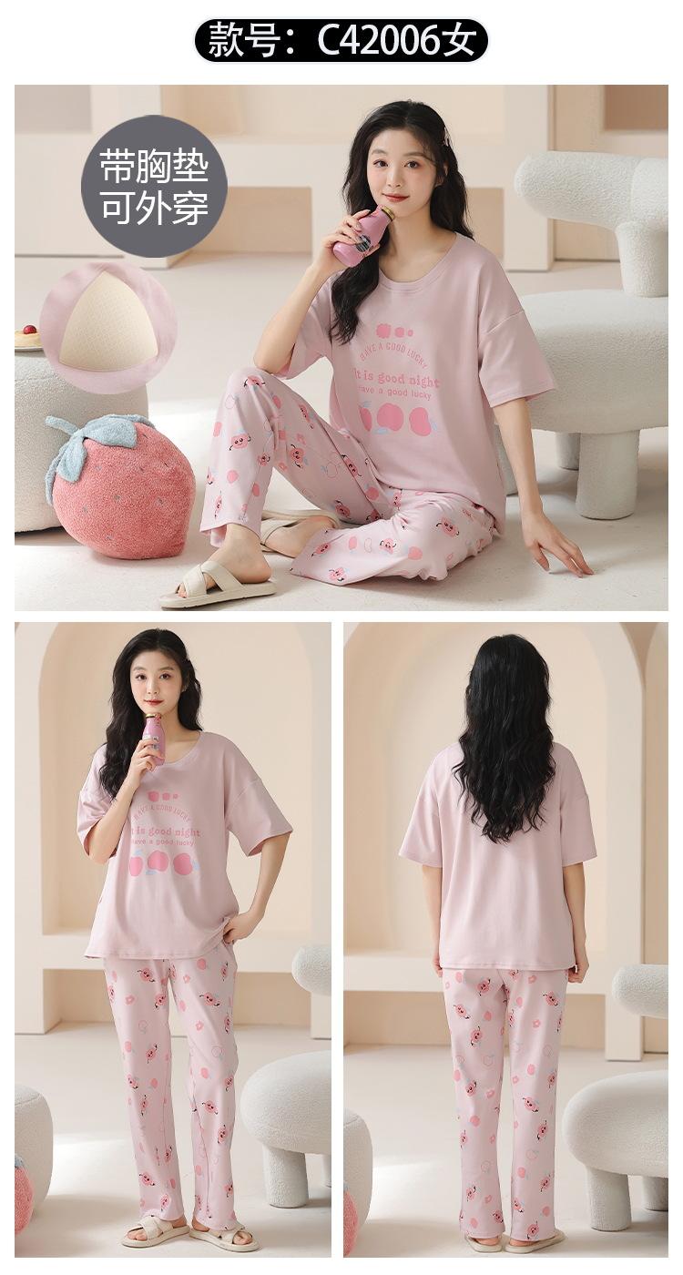 Pijama de verano con almohadilla para el pecho para mujer, de verano, de algodón puro, de manga corta, para mujer, ropa de hogar suave y profesional, primavera y otoño.
